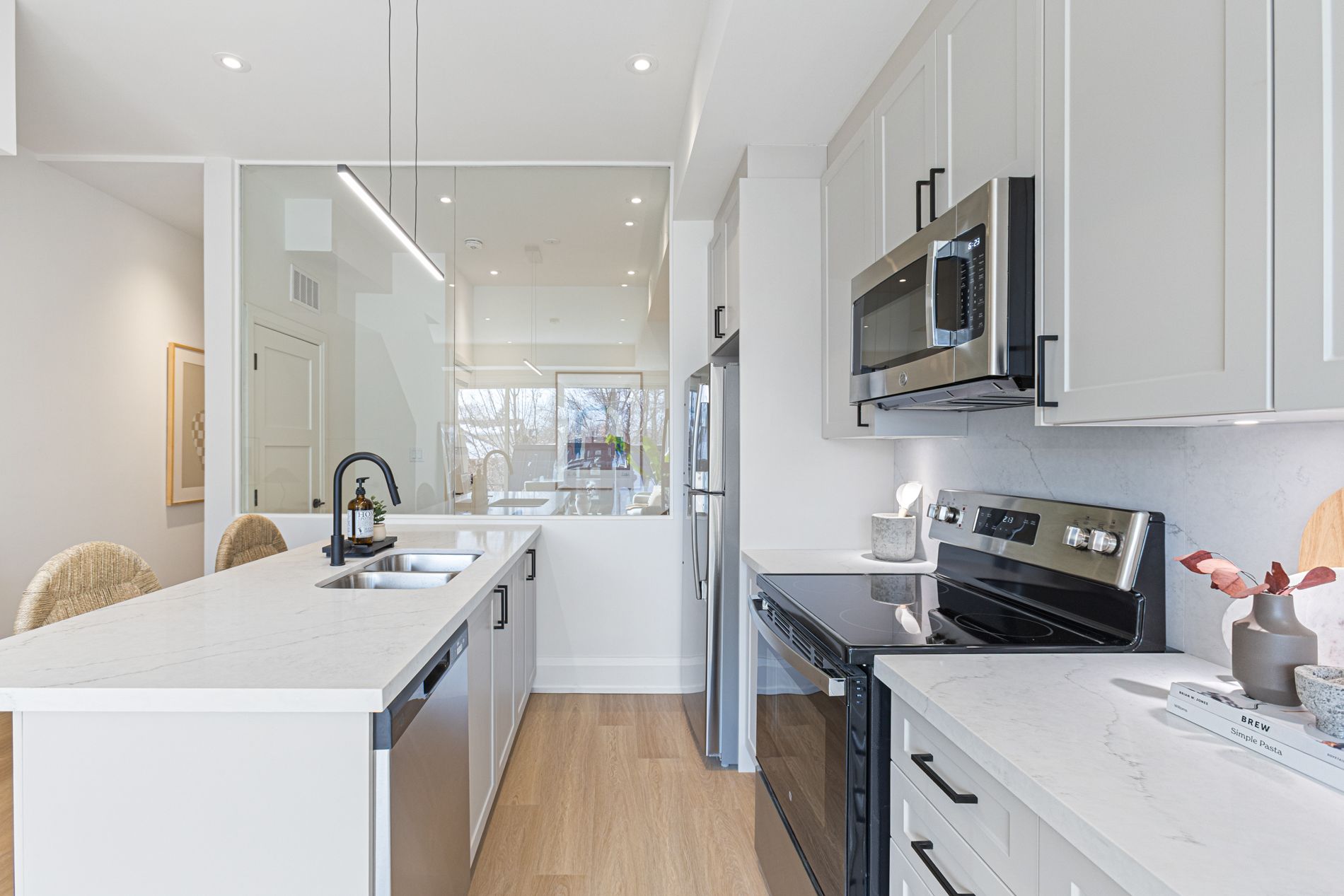 • Chef-inspired kitchen with premium appliances and beautiful stone countertops.