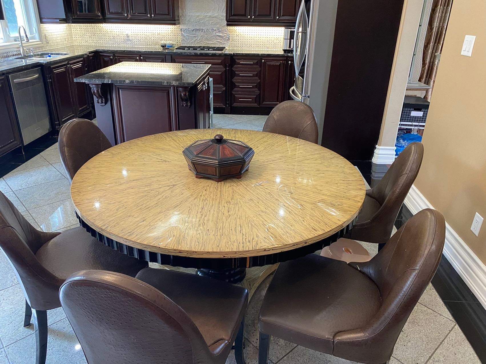 • Well-equipped kitchen with granite countertops and large center island for cooking.