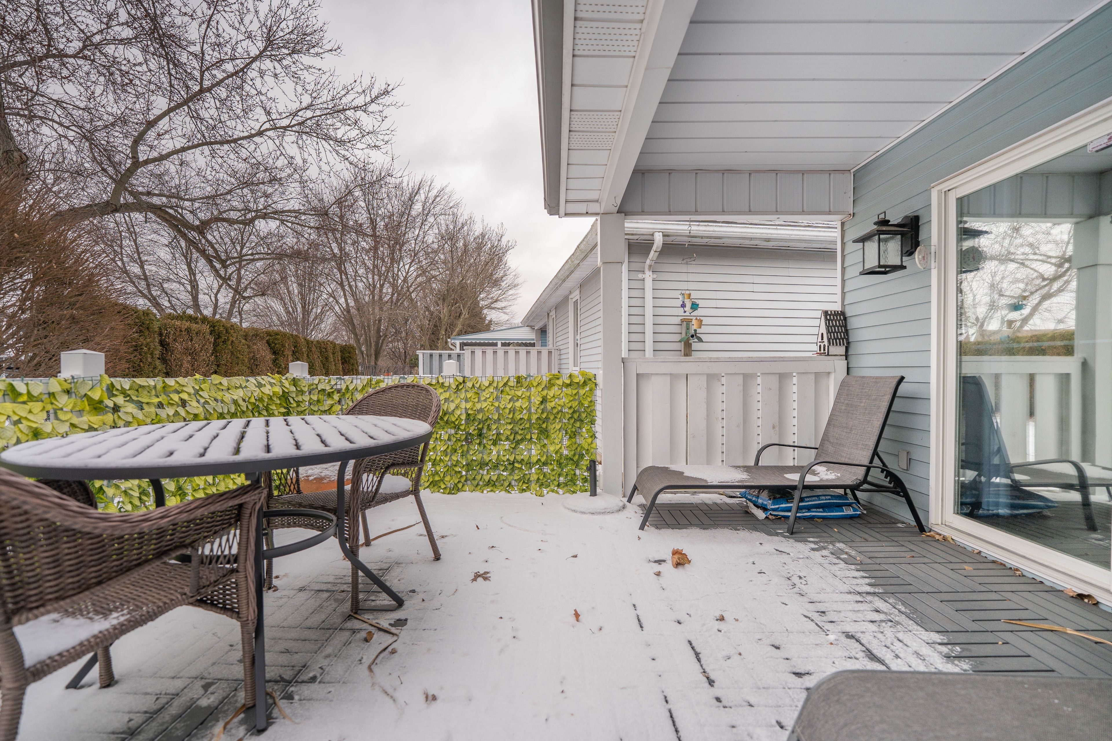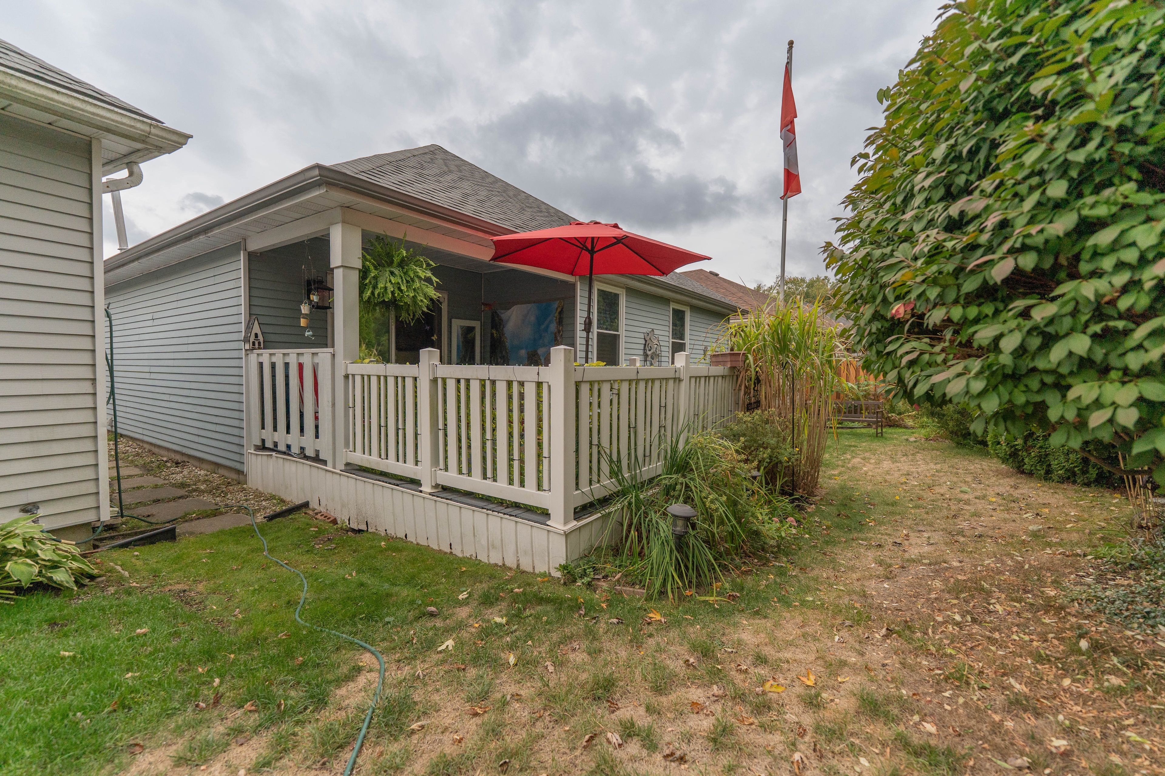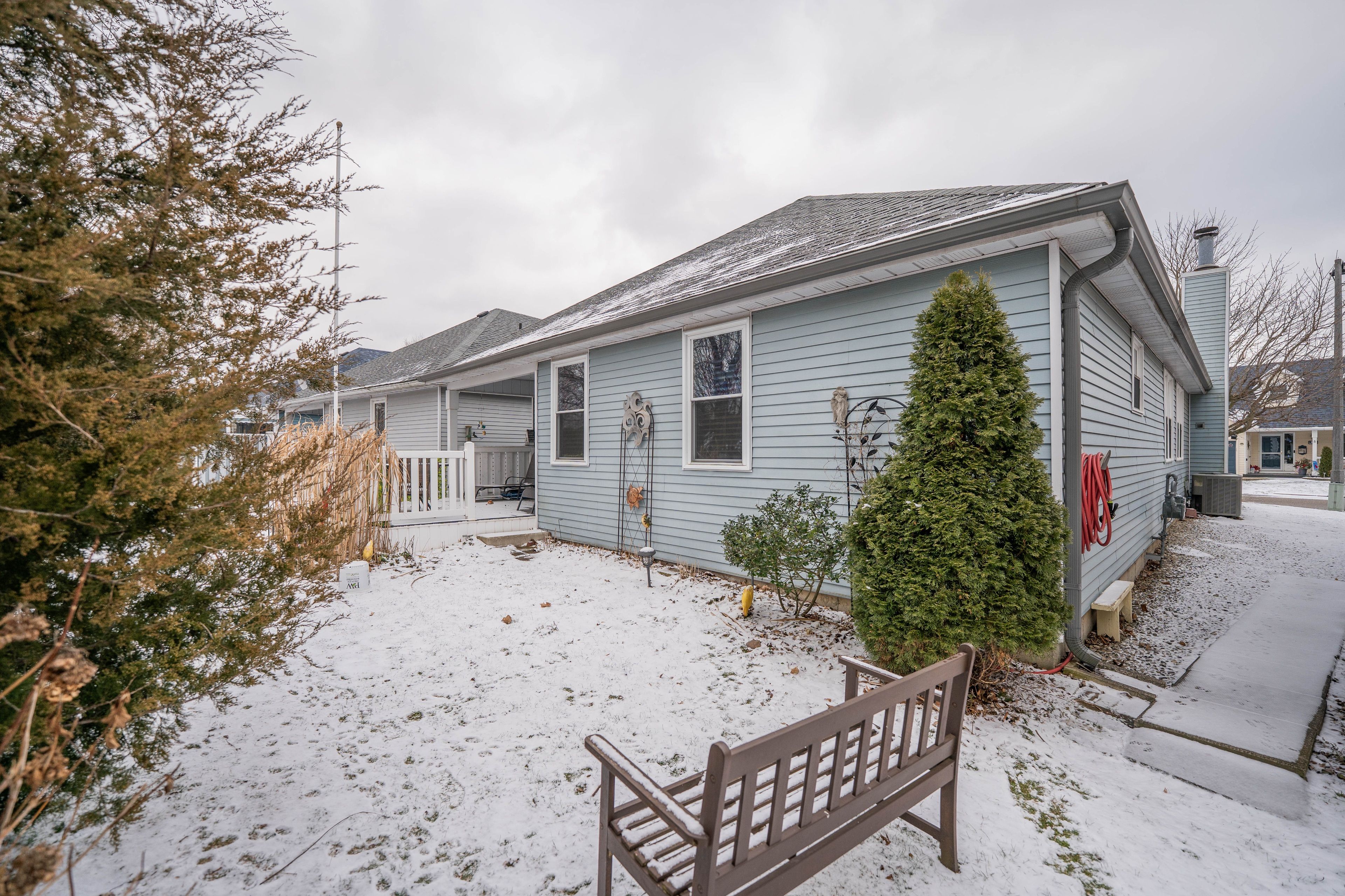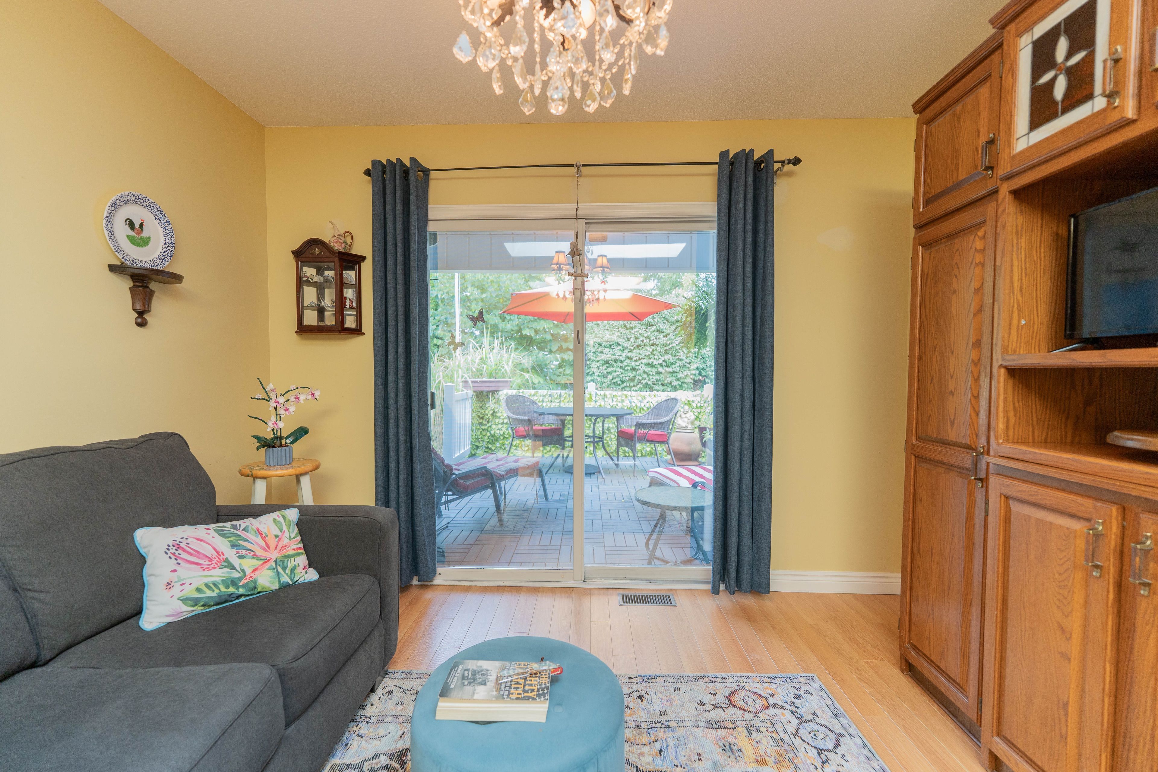 This beautifully updated 2-bedroom, 2-bathroom bungalow blends comfort, style, and community living in one perfect package. The spacious living and dining areas feature modern laminate flooring and a cozy gas fireplace, creating a warm and inviting atmosphere. The bright kitchen impresses with two skylights, abundant cabinetry, a garburator, and a convenient breakfast bar. Just off the kitchen, the den provides a comfortable space to relax or work, opening onto a charming, partially covered deck. With no neighbours directly behind, you'll enjoy peaceful views of a quiet walkway and added privacy. The deck and backyard offer an ideal retreat-perfect for morning coffee, entertaining friends, or simply soaking in the serenity of adult lifestyle living. The roomy primary suite features a walk-in closet and a stylish updated 3-piece ensuite with heated floors, a pedestal sink, and a walk-in shower. A second bedroom and another beautifully updated 4-piece bath with a sunspot window provide comfort for guests or hobbies. Main floor laundry adds convenience, while recent updates include a newer roof, furnace, garage door, sprinkler system, lighting, windows, and fresh exterior carpet. Located in a sought-after adult lifestyle community, residents enjoy access to a recreation centre, outdoor pool, hot tub, and a full calendar of social activities. This is easy living at its best! Buyer to acknowledge a one-time transfer fee of $2,000 and an annual association fee of $655.