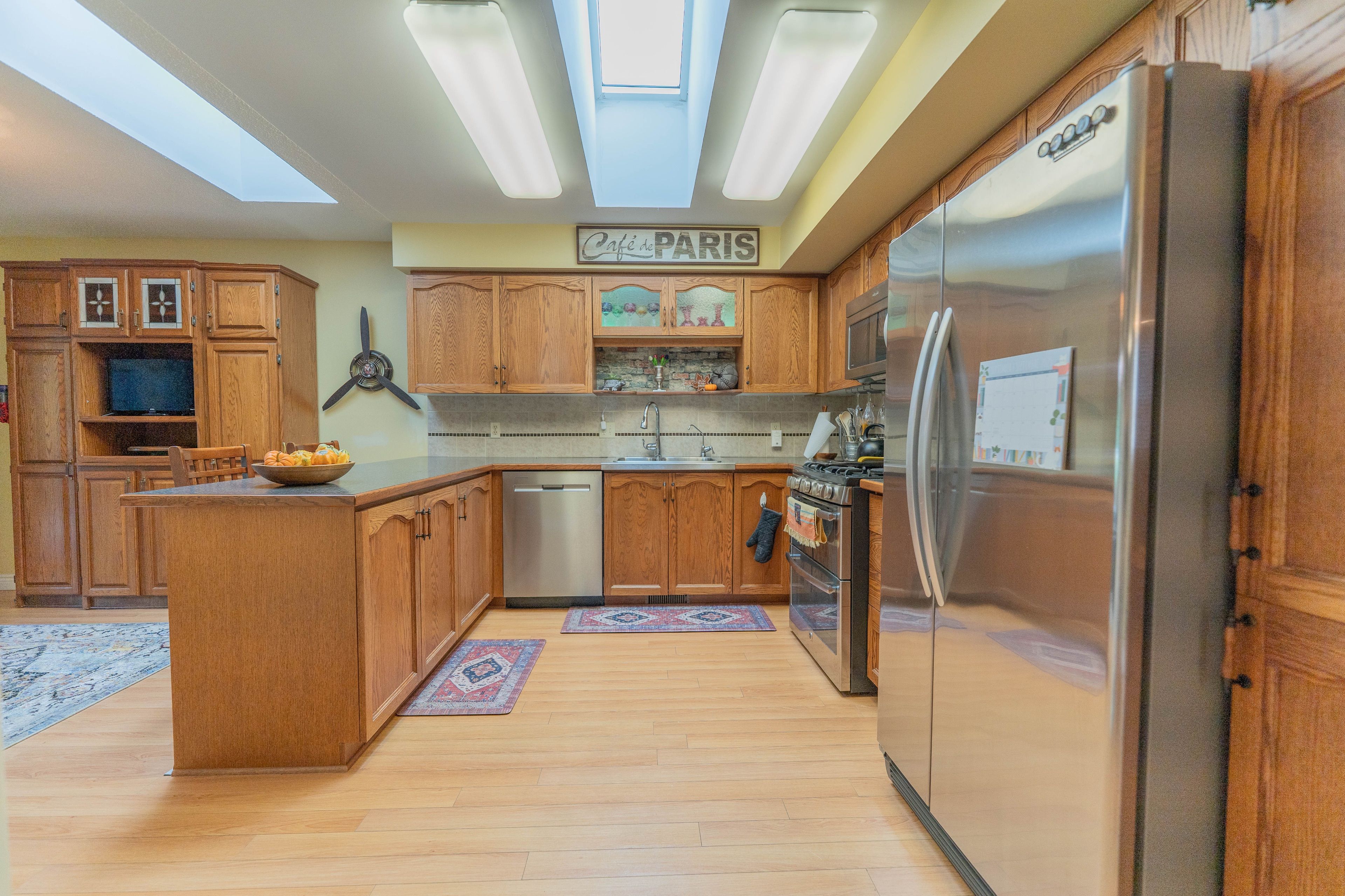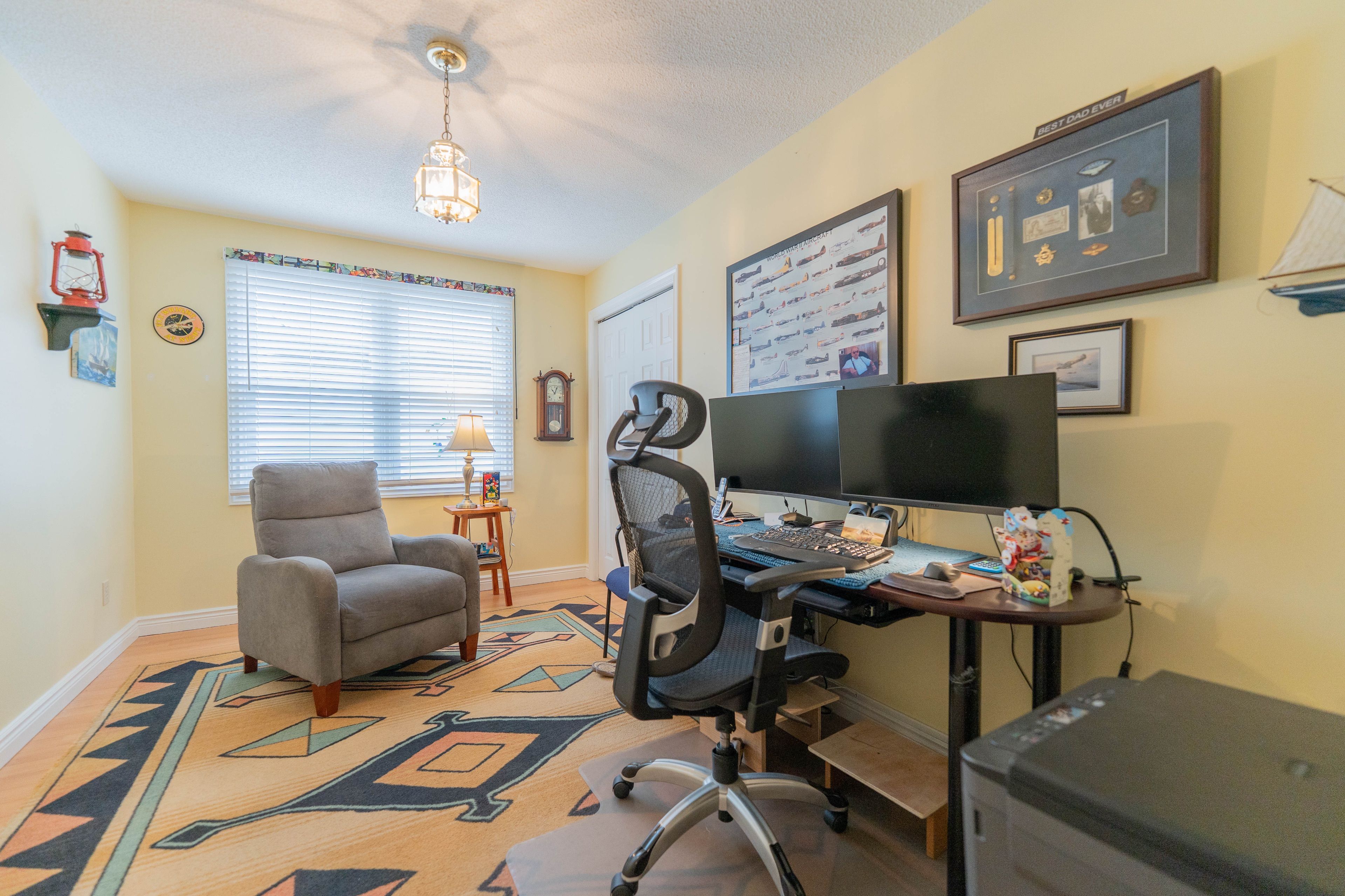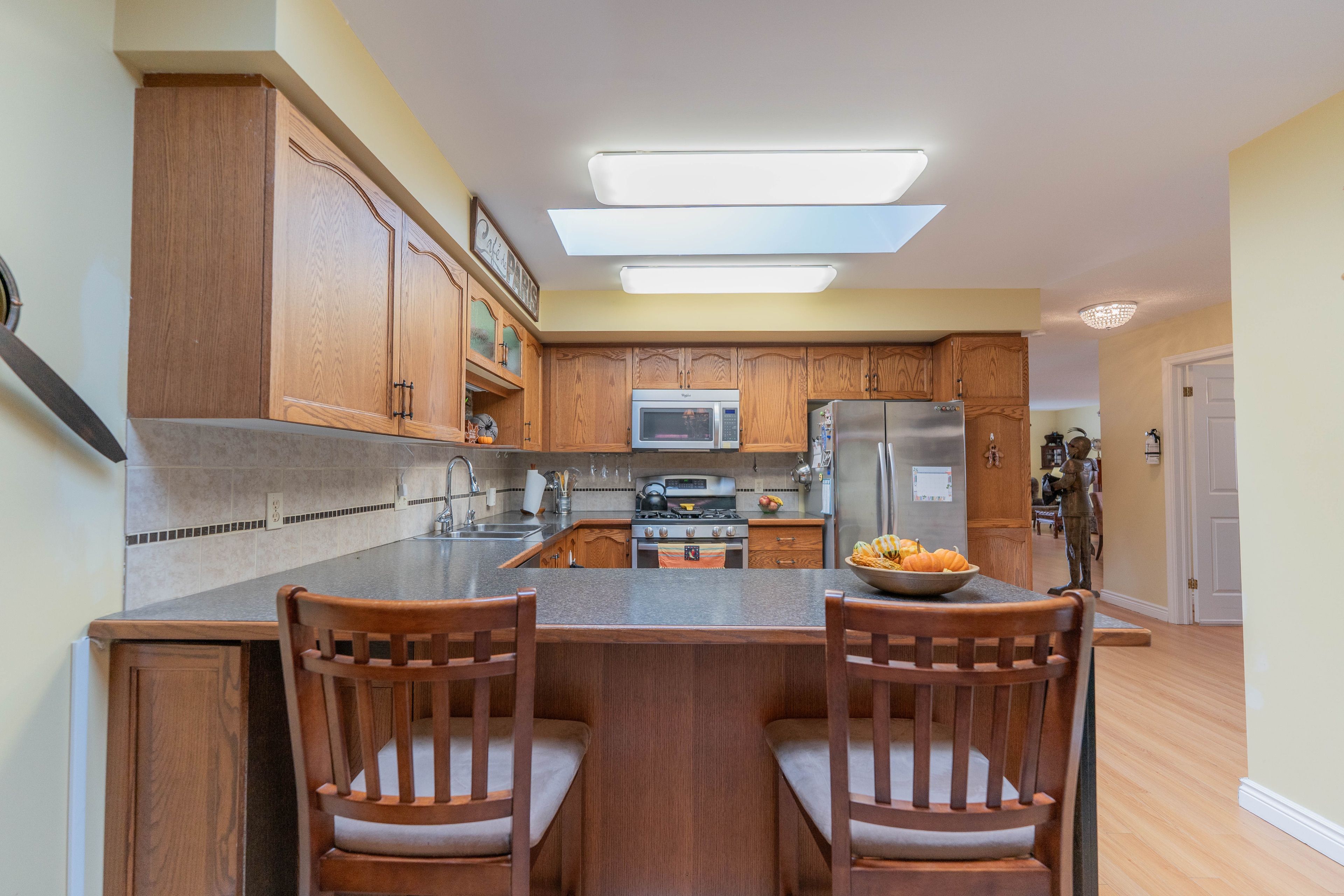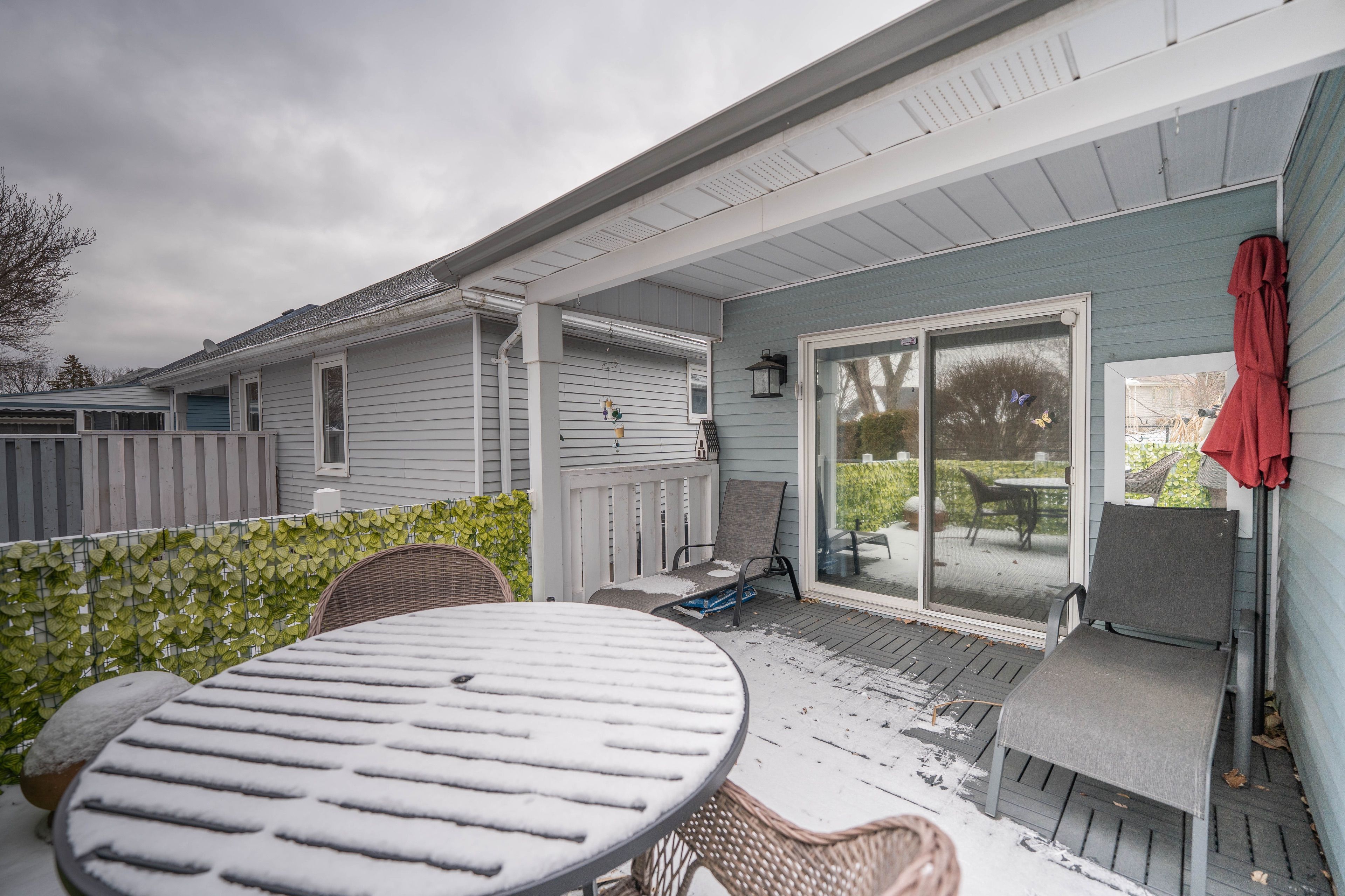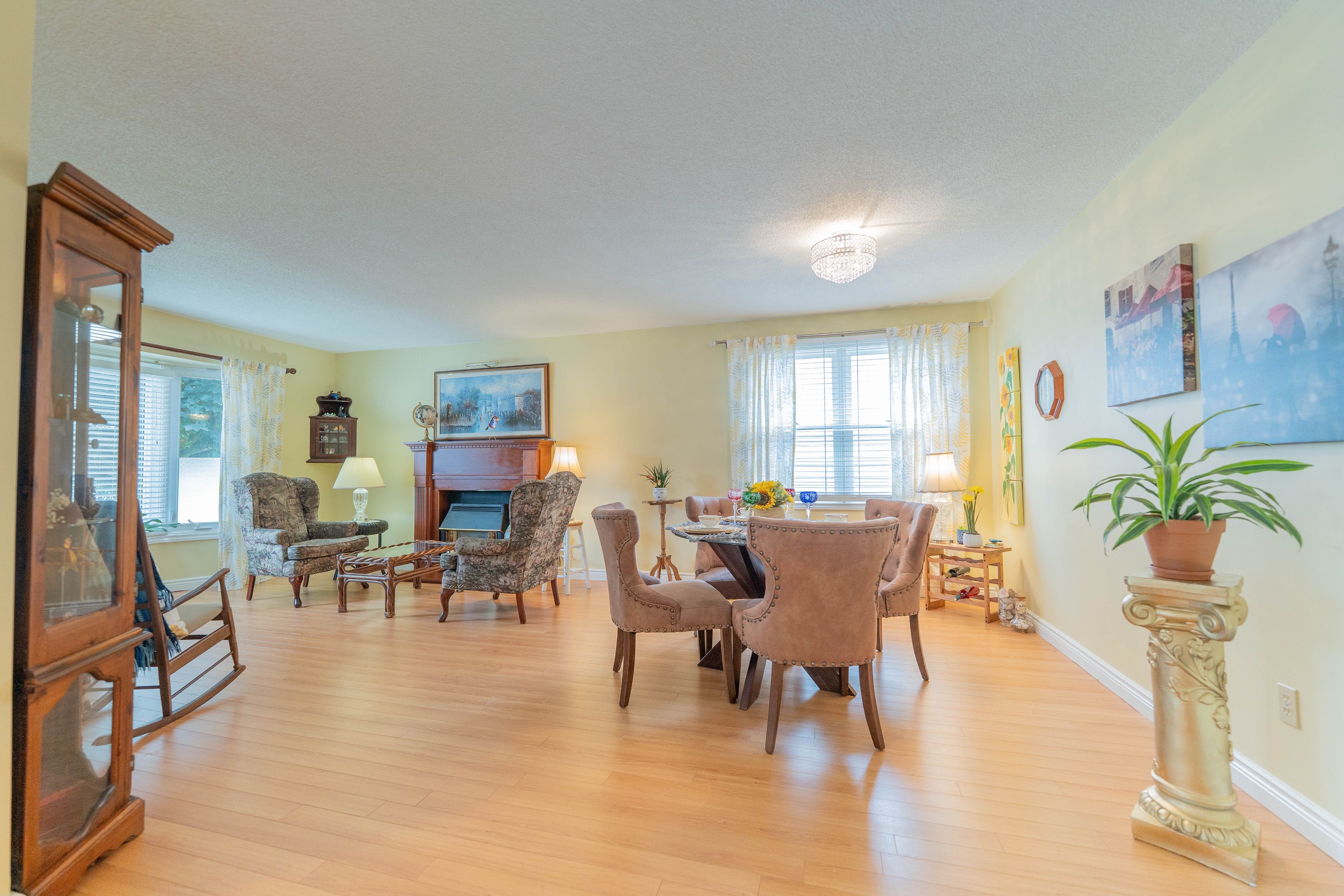 This beautifully updated 2-bedroom, 2-bathroom bungalow blends comfort, style, and community living in one perfect package. The spacious living and dining areas feature modern laminate flooring and a cozy gas fireplace, creating a warm and inviting atmosphere. The bright kitchen impresses with two skylights, abundant cabinetry, a garburator, and a convenient breakfast bar. Just off the kitchen, the den provides a comfortable space to relax or work, opening onto a charming, partially covered deck. With no neighbours directly behind, you'll enjoy peaceful views of a quiet walkway and added privacy. The deck and backyard offer an ideal retreat-perfect for morning coffee, entertaining friends, or simply soaking in the serenity of adult lifestyle living. The roomy primary suite features a walk-in closet and a stylish updated 3-piece ensuite with heated floors, a pedestal sink, and a walk-in shower. A second bedroom and another beautifully updated 4-piece bath with a sunspot window provide comfort for guests or hobbies. Main floor laundry adds convenience, while recent updates include a newer roof, furnace, garage door, sprinkler system, lighting, windows, and fresh exterior carpet. Located in a sought-after adult lifestyle community, residents enjoy access to a recreation centre, outdoor pool, hot tub, and a full calendar of social activities. This is easy living at its best! Buyer to acknowledge a one-time transfer fee of $2,000 and an annual association fee of $655.
