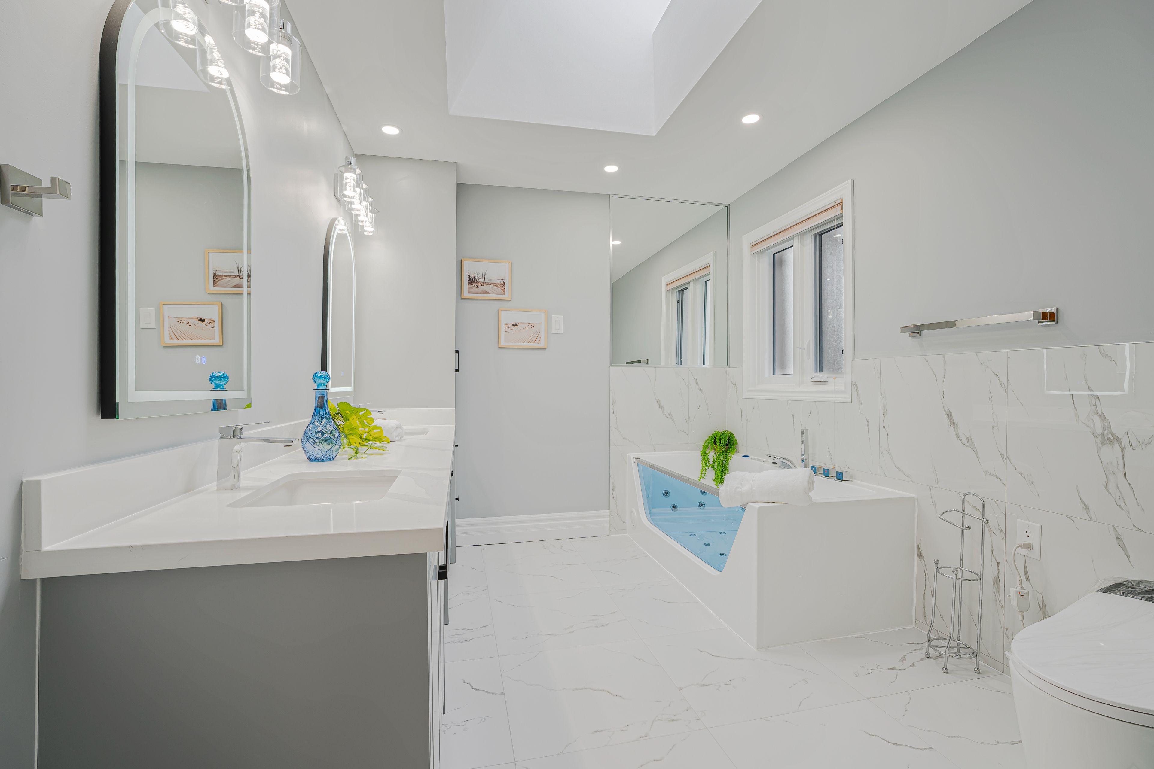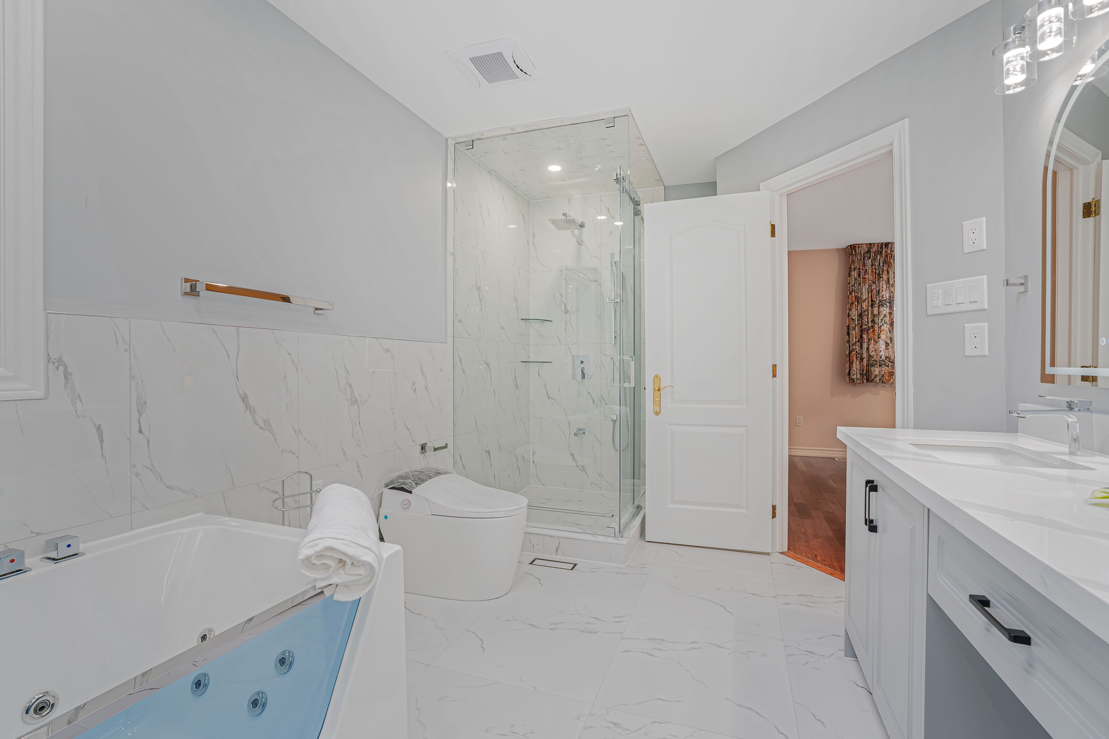 Welcome to this beautiful built home over 3700 sqft! On large 50x160 feet lot! Located in a very prestigious & highly demanded quiet neighborhood! 4+2 bedrooms & bathrooms (5 are brand new). Grand entrance with gorgeous staircase, crystal chandelier, tall ceilings, granite floors. Amazing new kitchen with new high end kitchen appliances, bosch cooktop, bosch built-in-oven, fridge, with screen, quartz countertop & backsplash. Very spacious finished walkout basement. Lot of great features such as: hardwood floors thru-out, potlights thru-out, skylight, 2 gas fireplaces, sauna in basement, bedrooms have walk-in closets, large interlock driveway. Beautiful backyard with outdoor porch area, minutes to hwy 401 & hwy 404. Walking distance to public transit, agincourt mall, walmart, no frills, banks & shopping, schools, park.