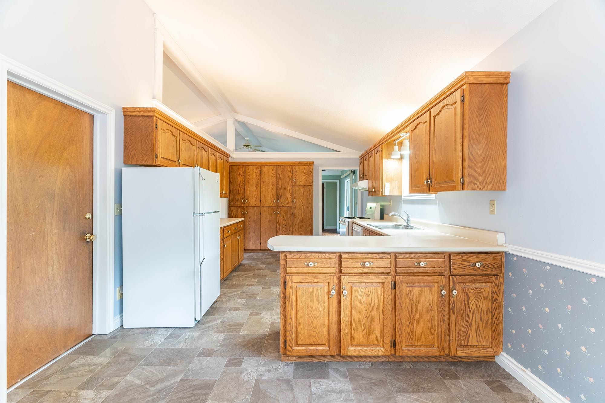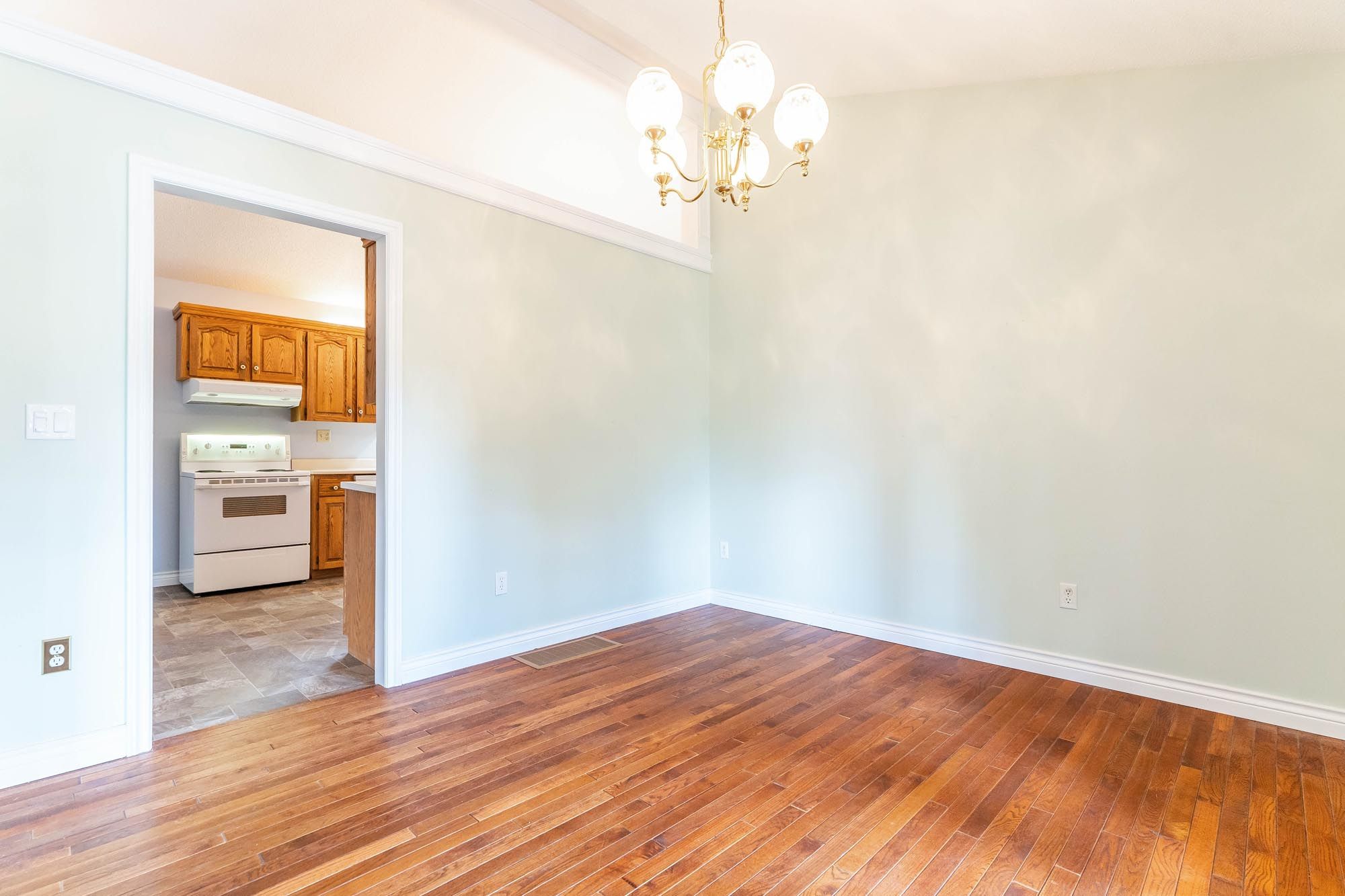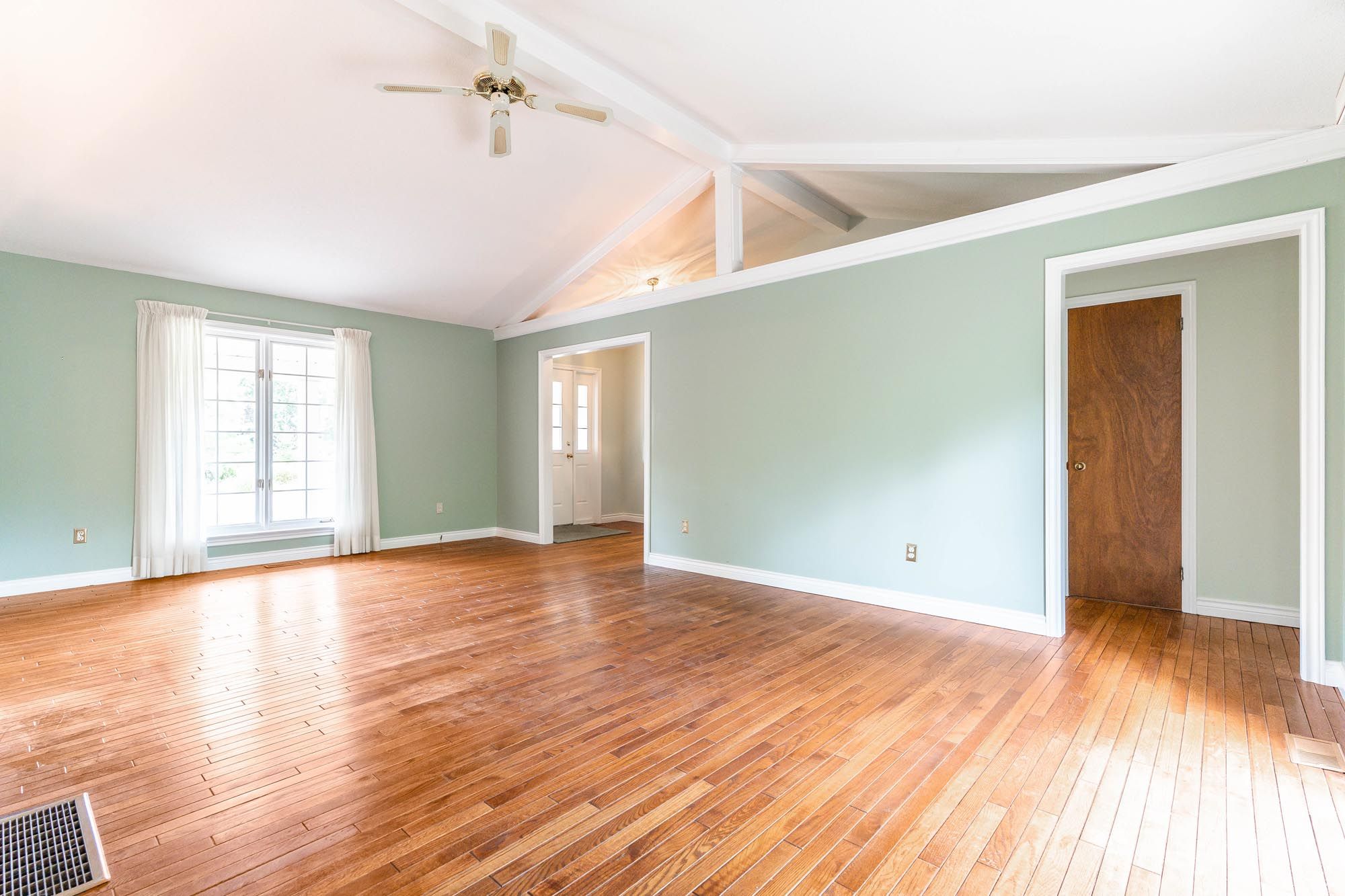 • Original hardwood floors and cathedral ceilings enhance the charm.