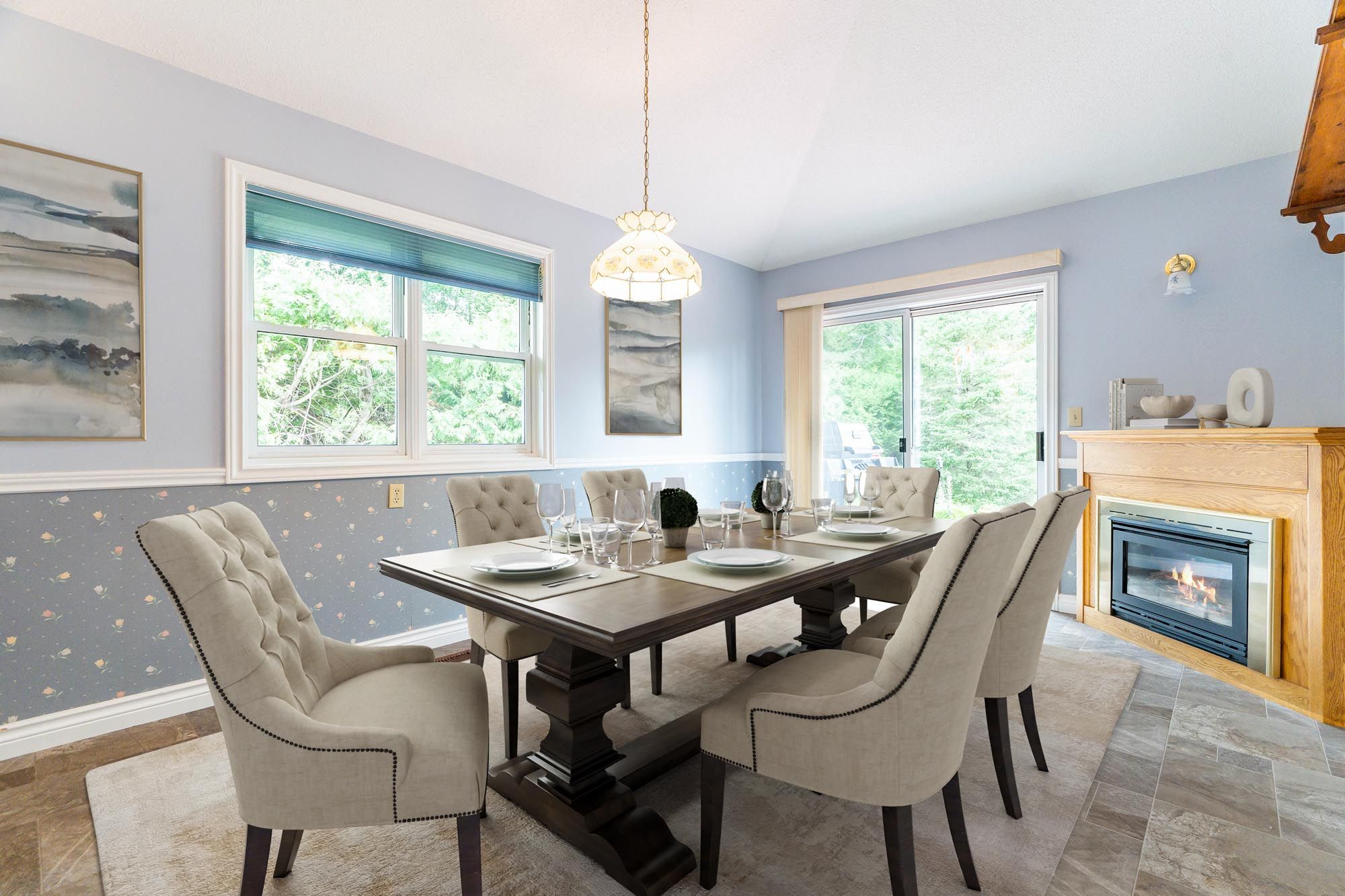 • Bright living room with multiple walkouts to outdoor decks for entertainment.