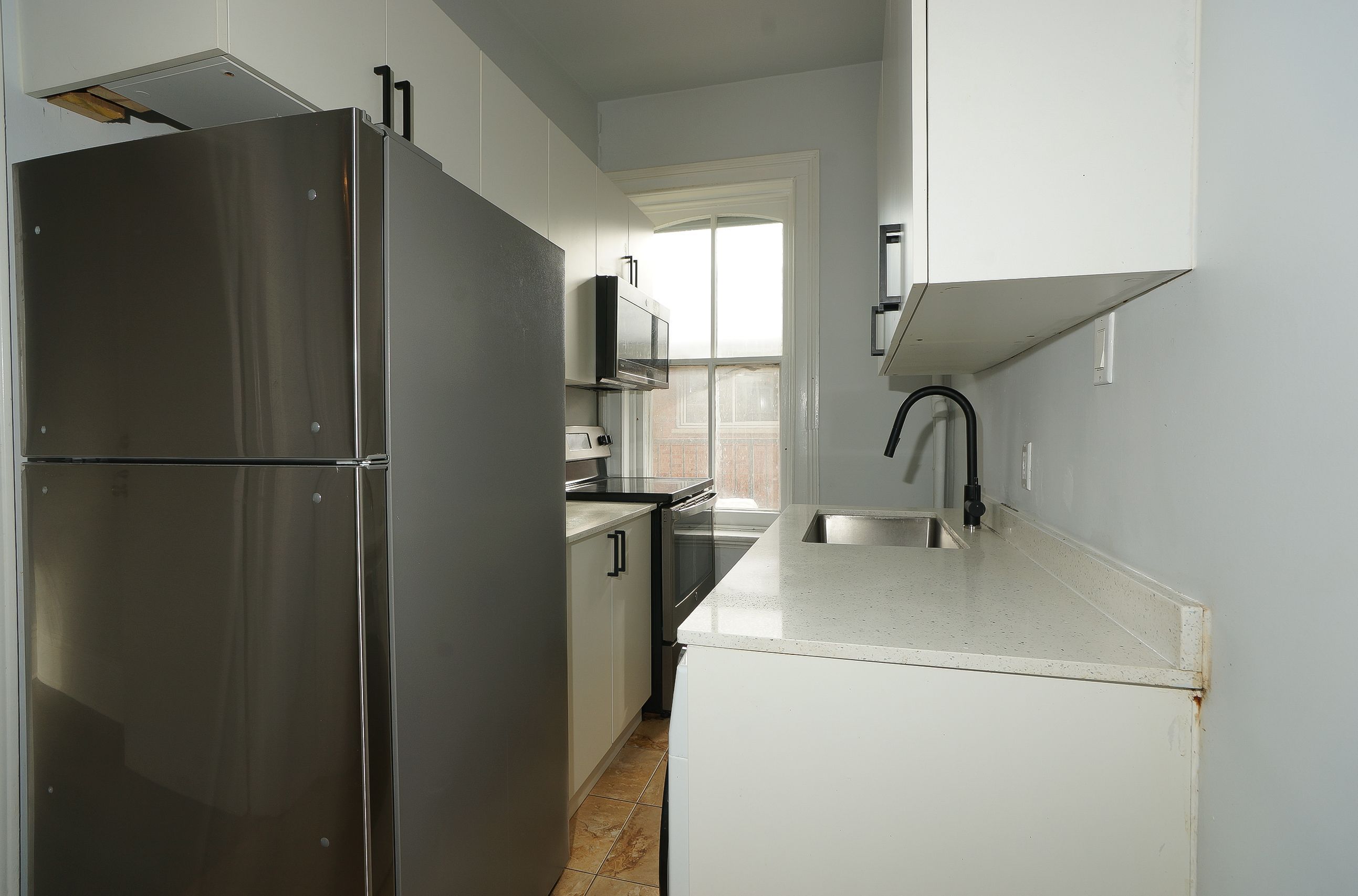 • Bright second-floor unit with three bedrooms plus a den for flexible living.