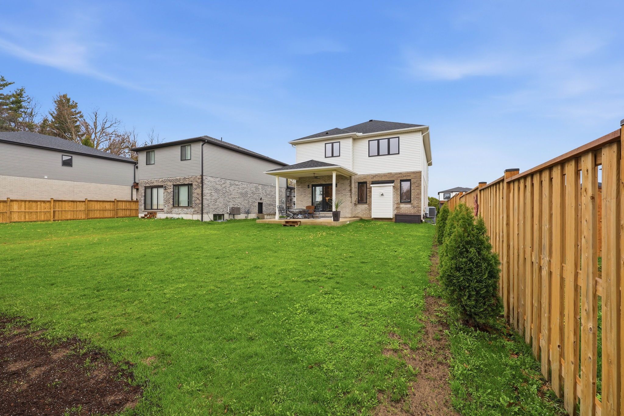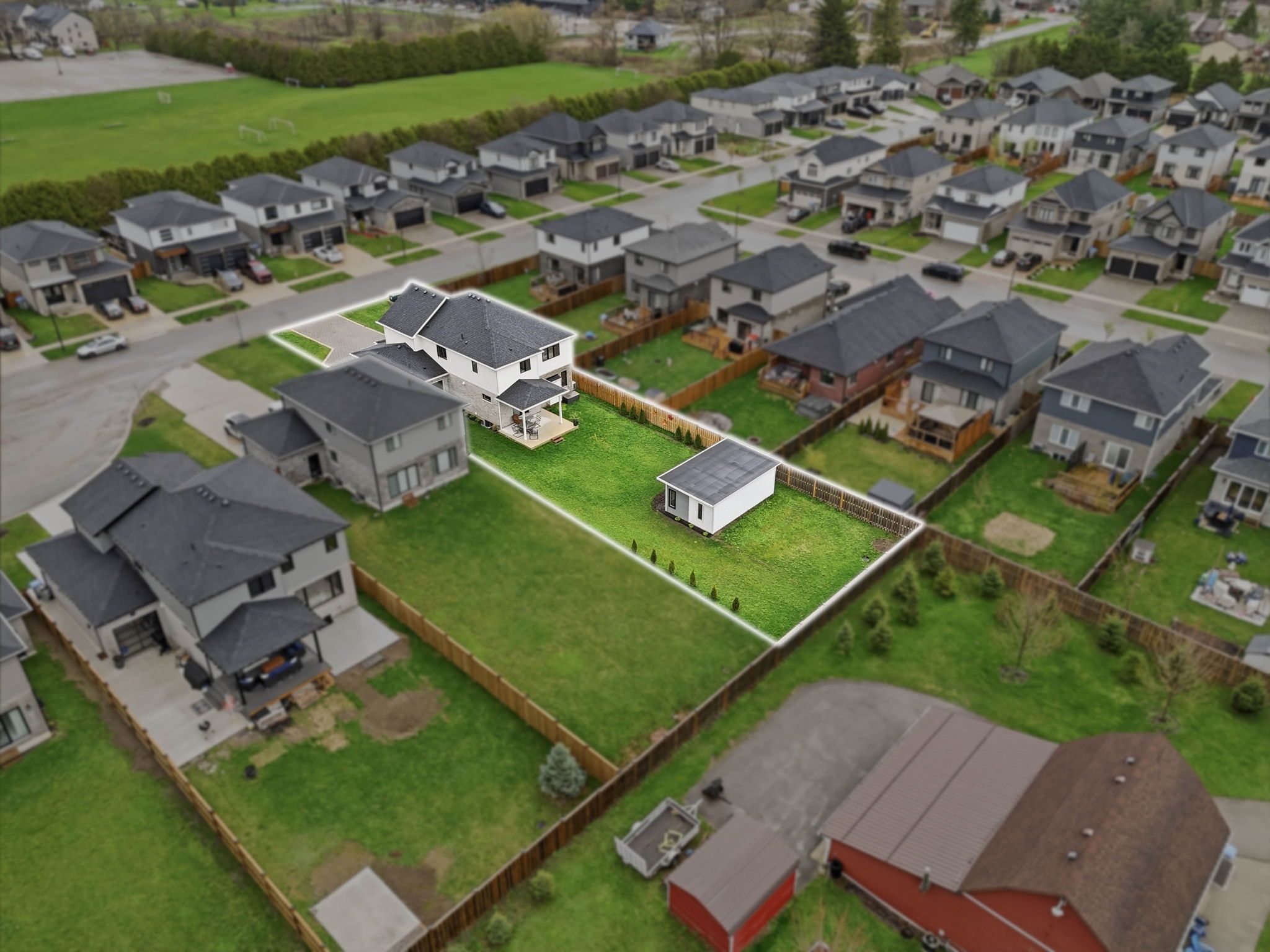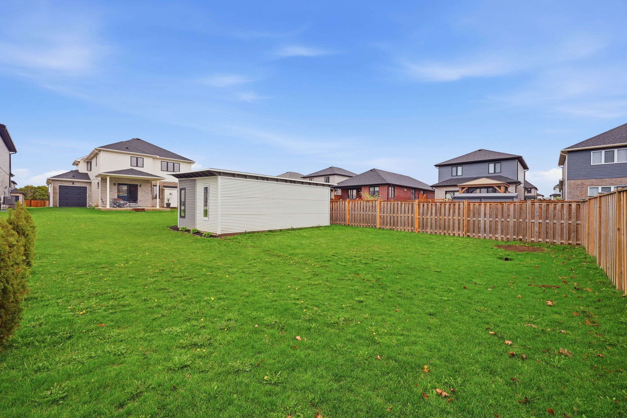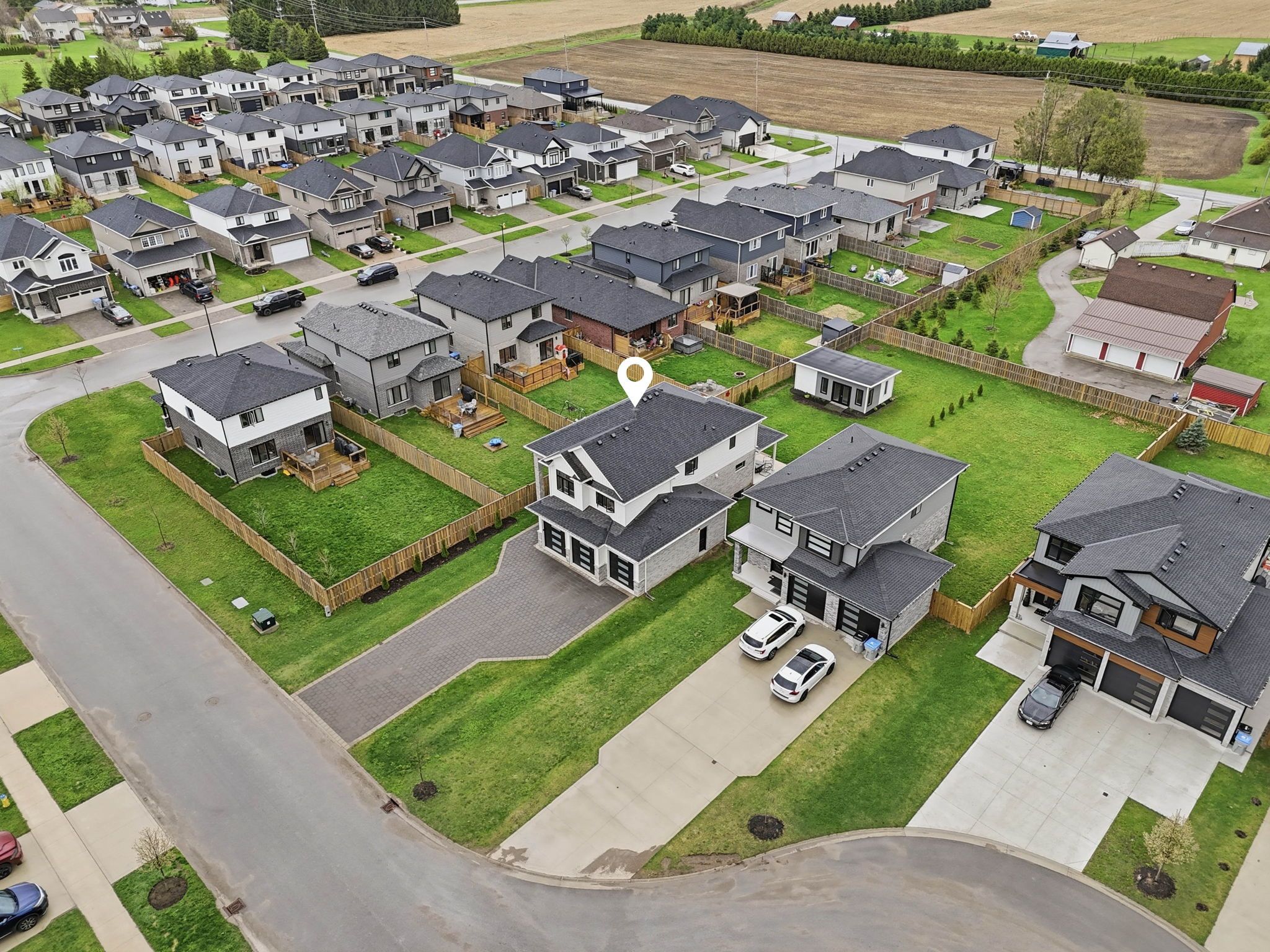 Welcome to 53 mcneil street in mount brydges, a beautifully designed modern home set on a quiet crescent in a growing community. From the moment you arrive, the curb appeal makes an impression with its striking exterior, triple garage doors, gemstone lighting, and an extended driveway offering parking for up to 12 vehicles. Step inside to a bright, welcoming foyer that naturally draws you into the heart of the home. The main floor unfolds into a seamless open concept space where the living room, kitchen, and dining area connect effortlessly. Large windows bring in natural light throughout the day, while the fireplace feature wall adds a warm, inviting focal point. The kitchen is designed to be both functional and impressive, featuring a large centre island, quartz countertops, stainless steel appliances, and an extended walk through pantry with access from both the kitchen and mudroom through a barn door. Hardwood flooring runs throughout, with tile in select areas, and electric blinds throughout the home add comfort and ease. Upstairs, each of the three bedrooms offers its own private retreat with a full ensuite and walk in closet. The primary suite stands out with a double vanity, glass shower, and separate tub, creating a true place to unwind. A bright and spacious second floor laundry room adds everyday convenience exactly where you need it. The unfinished basement offers flexibility for storage or the opportunity to create additional living space over time. Outside, the covered patio invites you to relax or entertain while overlooking the generous yard. A 375 square foot shed provides a versatile space for storage, recreation, or a personal retreat. With direct access from the garage to the backyard, the layout continues to deliver both comfort and practicality. Located between london and strathroy, mount brydges offers a growing community feel with easy access to nearby amenities, making it a place you can truly settle into!