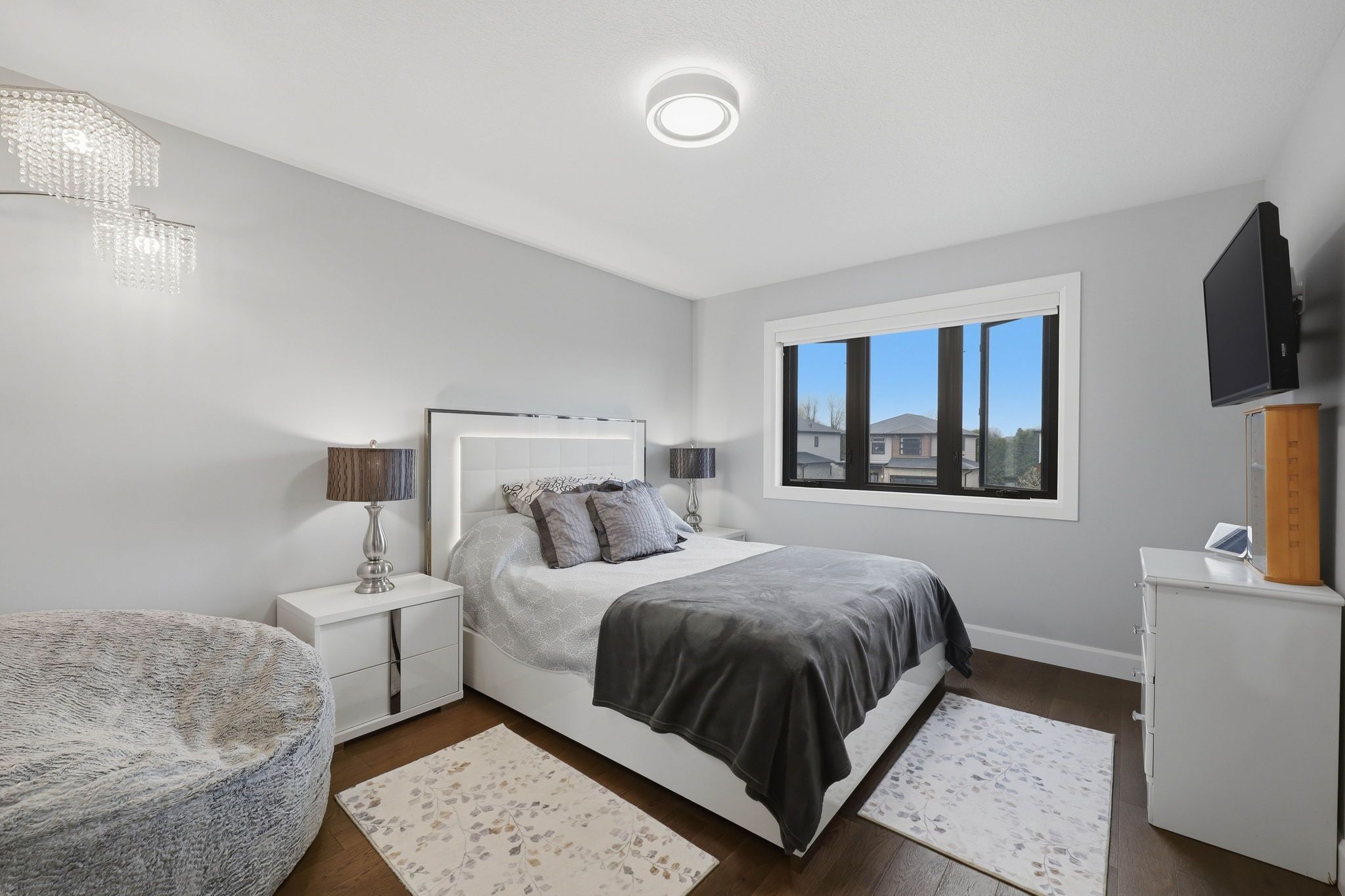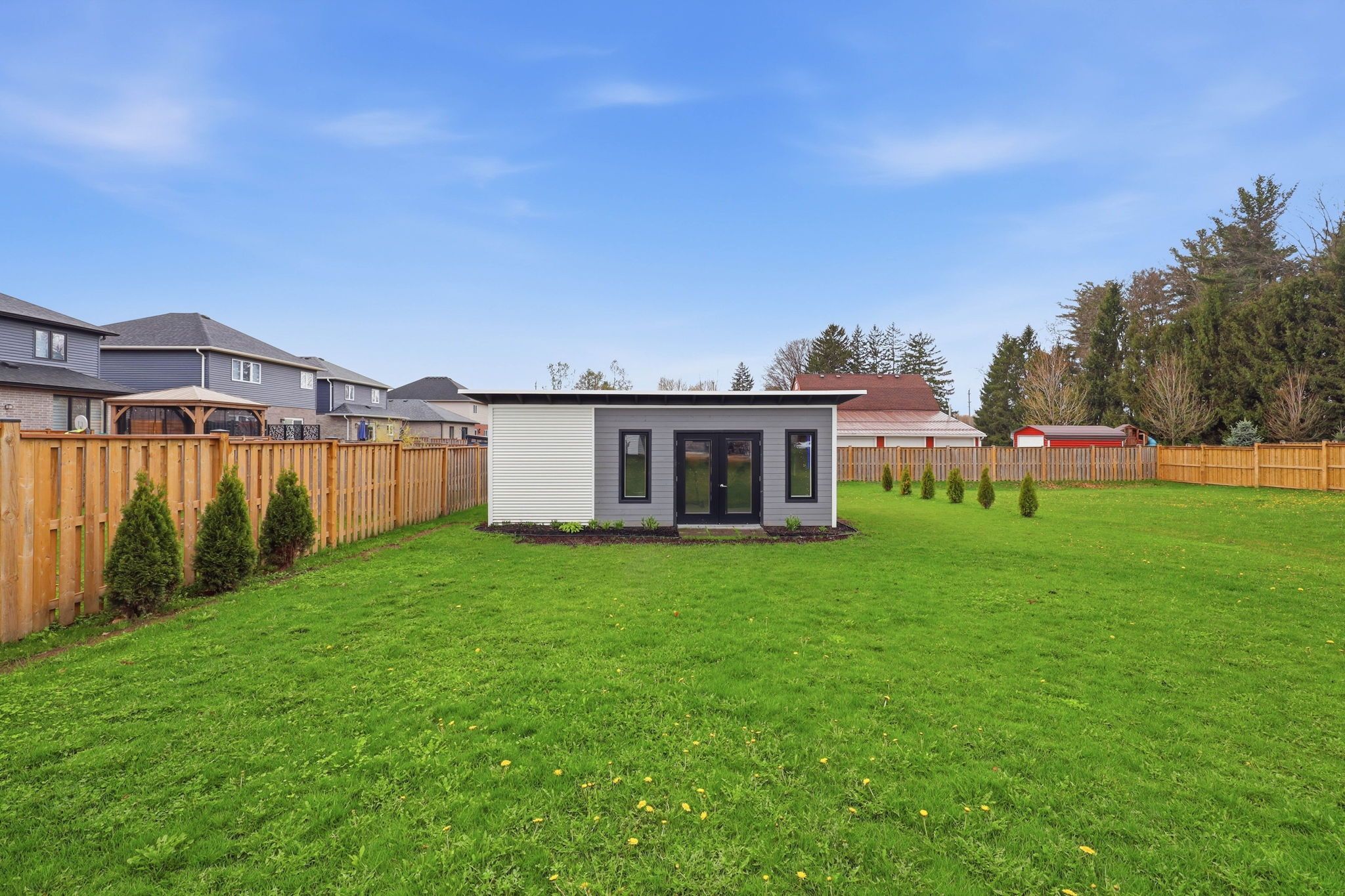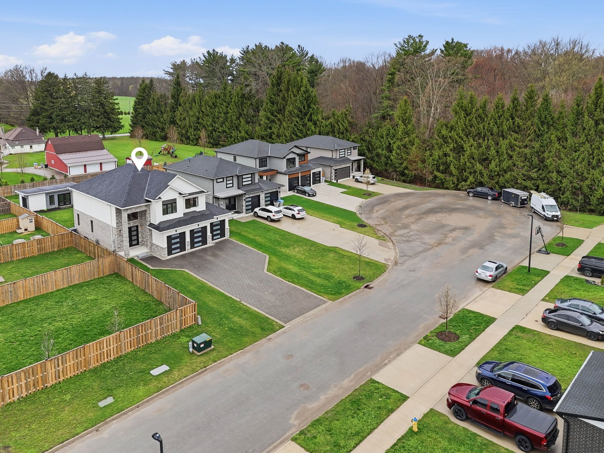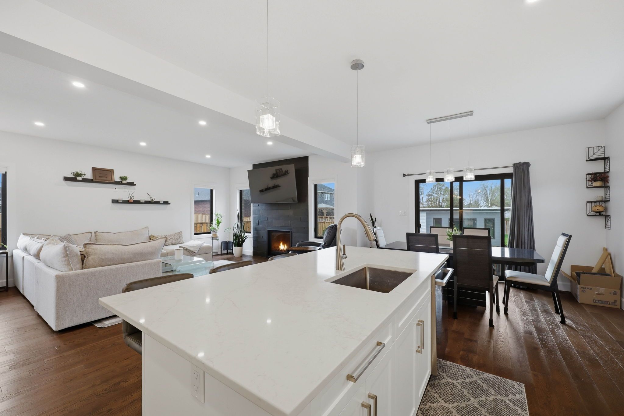 Welcome to 53 mcneil street in mount brydges, a beautifully designed modern home set on a quiet crescent in a growing community. From the moment you arrive, the curb appeal makes an impression with its striking exterior, triple garage doors, gemstone lighting, and an extended driveway offering parking for up to 12 vehicles. Step inside to a bright, welcoming foyer that naturally draws you into the heart of the home. The main floor unfolds into a seamless open concept space where the living room, kitchen, and dining area connect effortlessly. Large windows bring in natural light throughout the day, while the fireplace feature wall adds a warm, inviting focal point. The kitchen is designed to be both functional and impressive, featuring a large centre island, quartz countertops, stainless steel appliances, and an extended walk through pantry with access from both the kitchen and mudroom through a barn door. Hardwood flooring runs throughout, with tile in select areas, and electric blinds throughout the home add comfort and ease. Upstairs, each of the three bedrooms offers its own private retreat with a full ensuite and walk in closet. The primary suite stands out with a double vanity, glass shower, and separate tub, creating a true place to unwind. A bright and spacious second floor laundry room adds everyday convenience exactly where you need it. The unfinished basement offers flexibility for storage or the opportunity to create additional living space over time. Outside, the covered patio invites you to relax or entertain while overlooking the generous yard. A 375 square foot shed provides a versatile space for storage, recreation, or a personal retreat. With direct access from the garage to the backyard, the layout continues to deliver both comfort and practicality. Located between london and strathroy, mount brydges offers a growing community feel with easy access to nearby amenities, making it a place you can truly settle into!