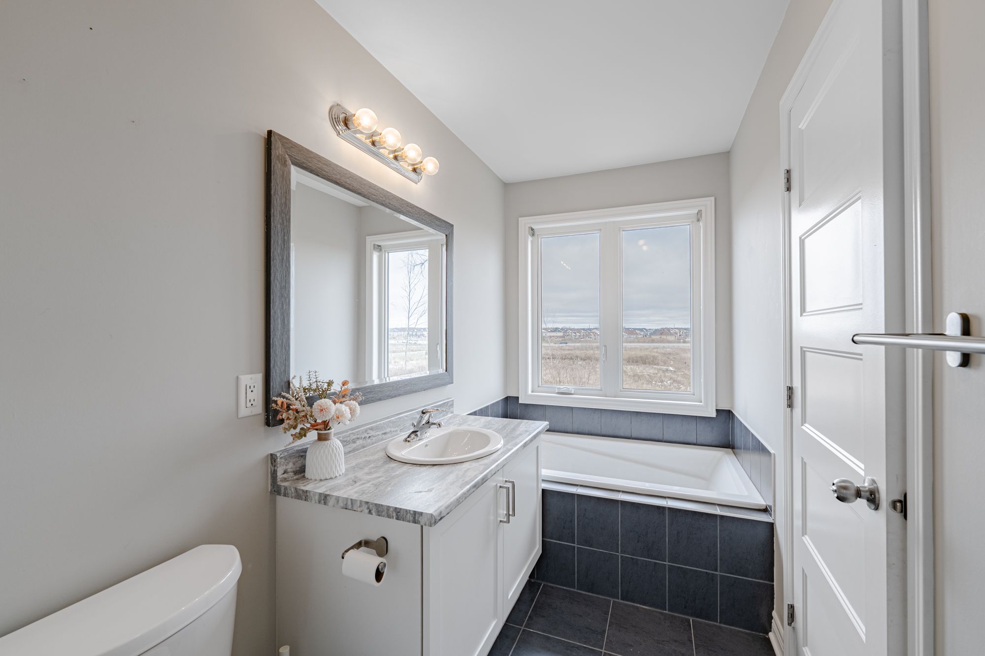 Welcome to this well-maintained 3-bedroom, 2. 5-bath middle-unit townhome located on a quiet street in the growing community of carleton place. Located within walking distance to shops, restaurants, parks, walking trails, and everyday amenities, with quick access to highway 7 and close proximity to the mississippi river. This move-in-ready property offers immediate possession and easy showings. The main floor features a bright, open-concept layout with 9-foot ceilings, hardwood flooring, and large windows that bring in abundant natural light. The upgraded kitchen includes quartz countertops, stainless steel appliances, and a glass tile backsplash, combining both style and functionality. The dining area opens directly to the fenced backyard with no rear neighbors, providing added privacy and an ideal setting for outdoor gatherings. The second level offers a spacious primary bedroom with a walk-in closet and an ensuite featuring a soaker tub and separate shower. Two additional bedrooms, a full bathroom, and the convenience of laundry on the second floor complete this level. The fully finished lower level provides a large family room and additional storage space, offering flexible use for entertainment, an office, gym, or recreation area. Additional upgrades include all interior doors, lighting fixtures, and newly installed blinds throughout the home. A practical and move-in-ready home in a family-friendly neighborhood. Book your showing today.