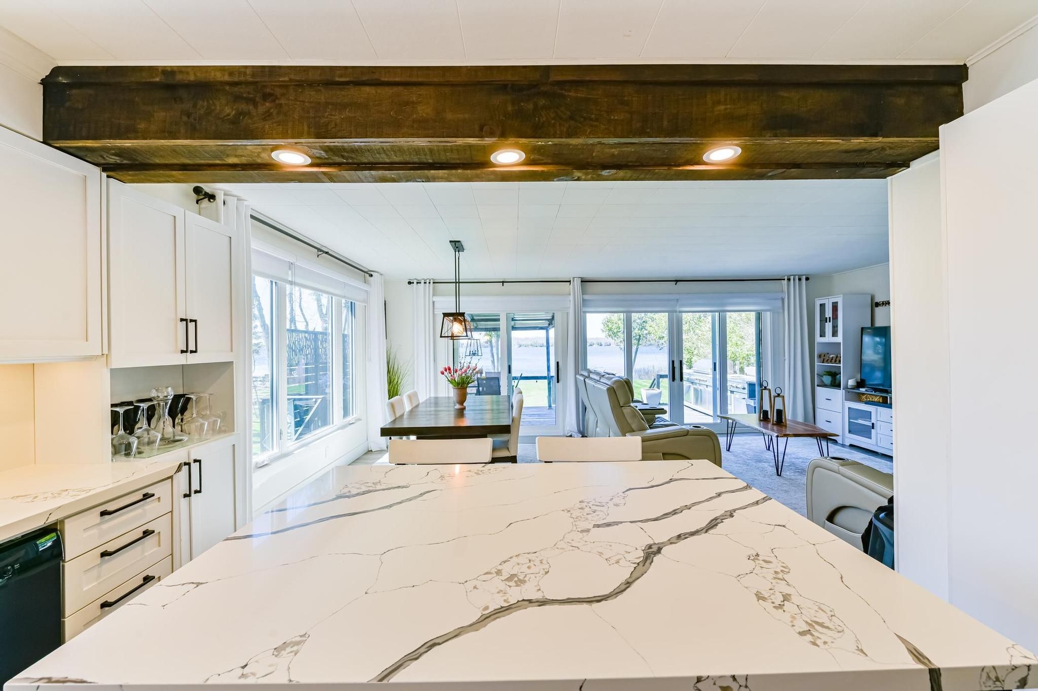 Gorgeous waterfront and wide open lake views of sturgeon! Prime location in premium address with clean, clear hard bottomed waterfront with south, south west exposure and unforgettable sunsets. Everything that the lake house is supposed to be. Modern 3 bedroom,2 bathroom lake house situated on just under 1/2 an acre with premium waterfront, with tons of upgrades: new kitchen with quartz countertops, custom cabinets, all new windows, new heated water supply, new ac, new entry gate, new garage doors, new entry door, new wood stove, newer roof (2022),irrigation system, propane furnace.... Beautiful deck ,designer outdoor kitchen and great rec room with new wood fireplace. The large dock at the water's edge will be your gathering place to suntan, fish, swim and enjoy this awesome property as a cottage or a full time residence. Enjoy country life on the lake and all the amenities that historic and beautiful village of bobcaygeon (5 minutes away)has to offer. Numerous boutique stores,16 restaurants and bars, lcbo, butcher, farmers market... Only 1hr 45 minutes away from gta and a world away! Come and live your best life in one of the nicest and safest areas that ontario has to offer.