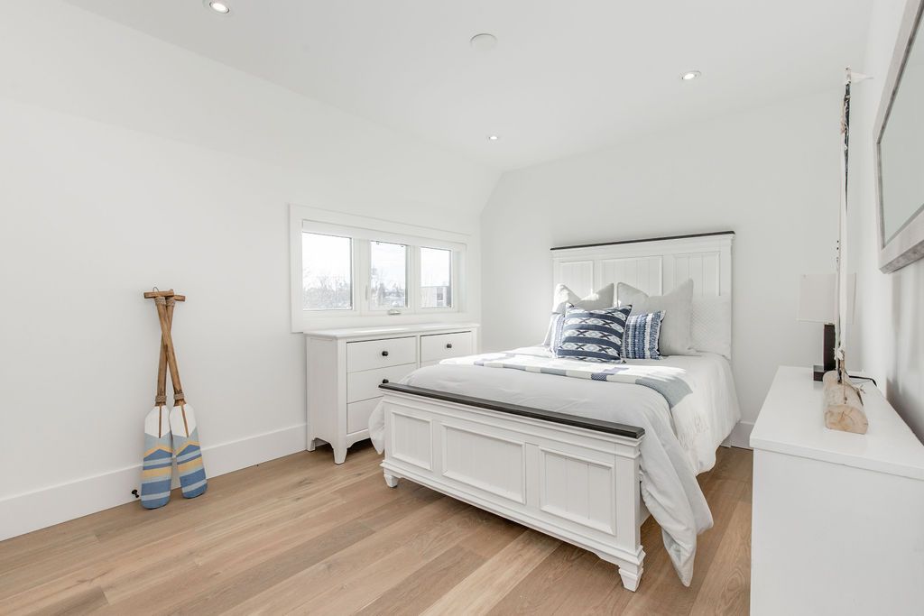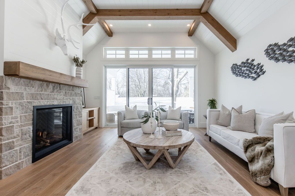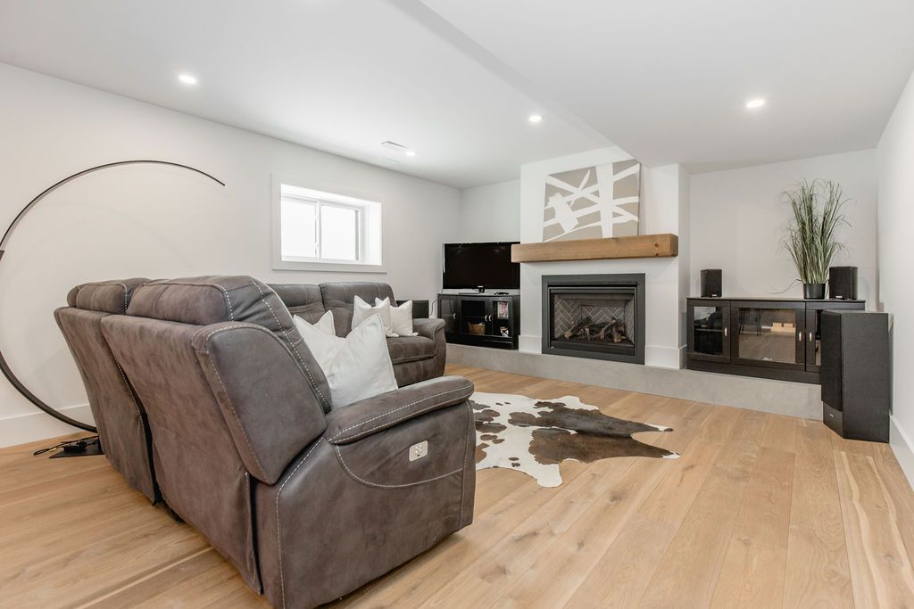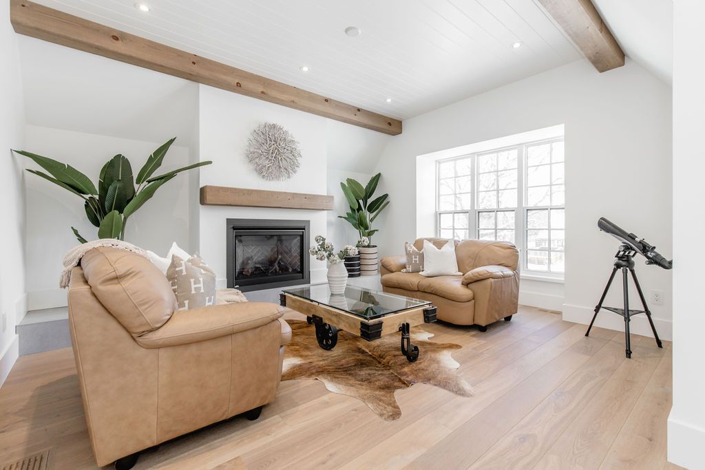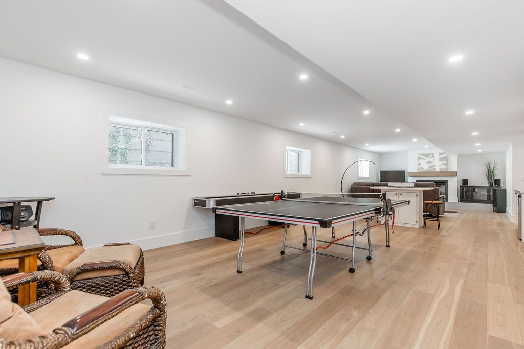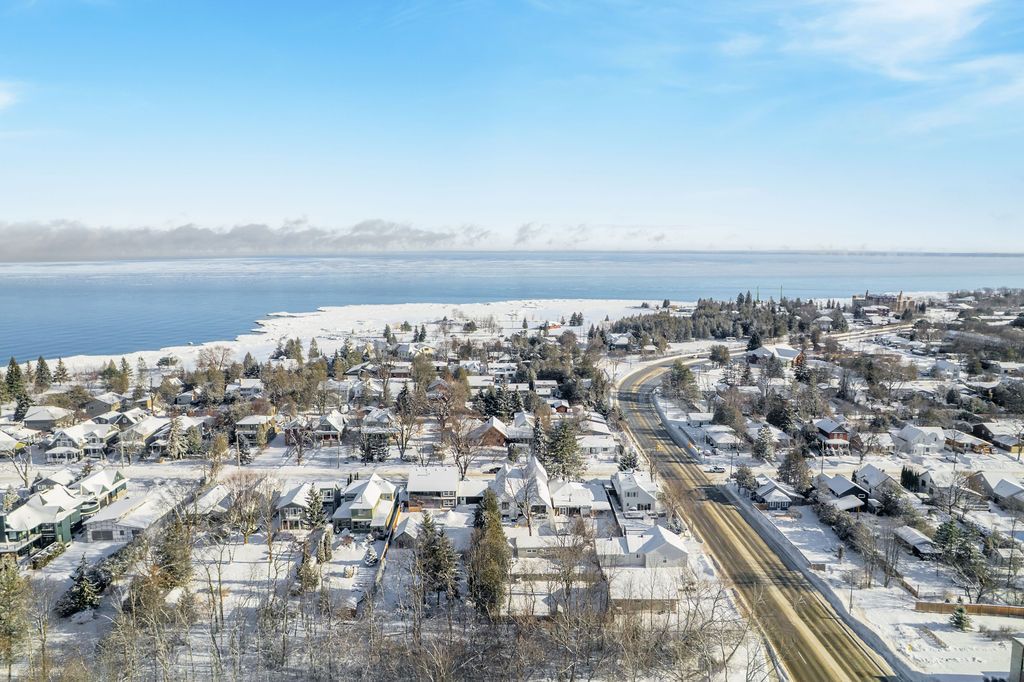 Fall in love with this spectacular custom-built vandermeer home just steps from georgian bay at sunset point, one of the area's most sought-after waterfront neighbourhoods. Offering over 3,700 sq ft of luxury living space, this 3+2 bedroom, 4 bathroom residence blends timeless craftsmanship with elevated modern finishes. Designed with 9-ft interior doors, upgraded hardware, wide-plank white oak hardwood flooring, and soaring 12-ft beamed cathedral ceilings with shiplap and pot lights, the home delivers an airy, open-concept layout ideal for both everyday living and entertaining. The gourmet designer kitchen features a statement centre island, stainless steel appliances, and a wet bar, seamlessly flowing into the dining and family rooms. The main-floor primary suite is a true retreat with a spa-inspired 5-piece ensuite, floating soaker tub, glass shower, heated floors, double quartz vanity, and walk-in closet. A second main-floor bedroom or office adds flexibility for guests or remote work. The upper loft family room and finished lower-level recreation room, both with gas fireplaces, offer multiple living spaces for families or multigenerational living. The basement includes two additional bedrooms, a wet bar, and rough-in for heated floors, making it ideal for guests or extended family. Enjoy summer evenings on the covered back deck, a fenced yard, and direct access from the mudroom/ski locker with inside garage entry, perfect for four-season living near the bay. With three gas fireplaces, central air, central vacuum, and premium finishes throughout, this home offers luxury, comfort, and location in equal measure.