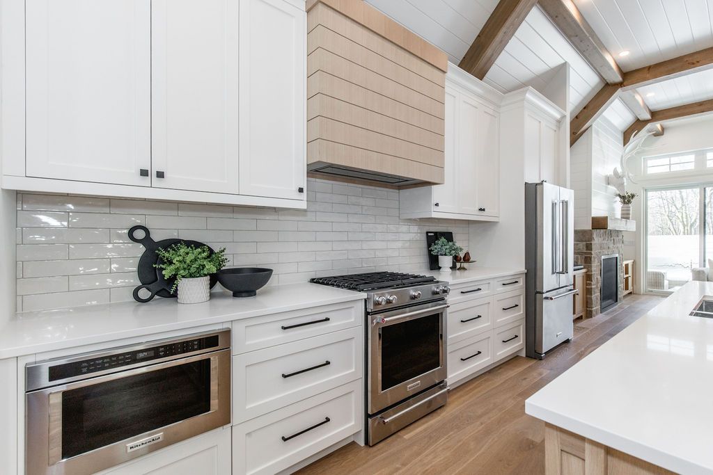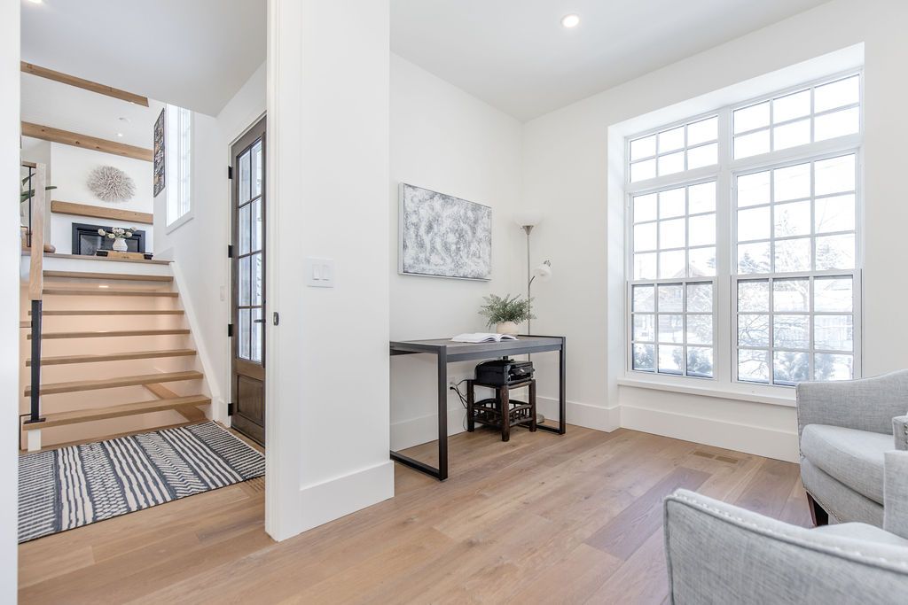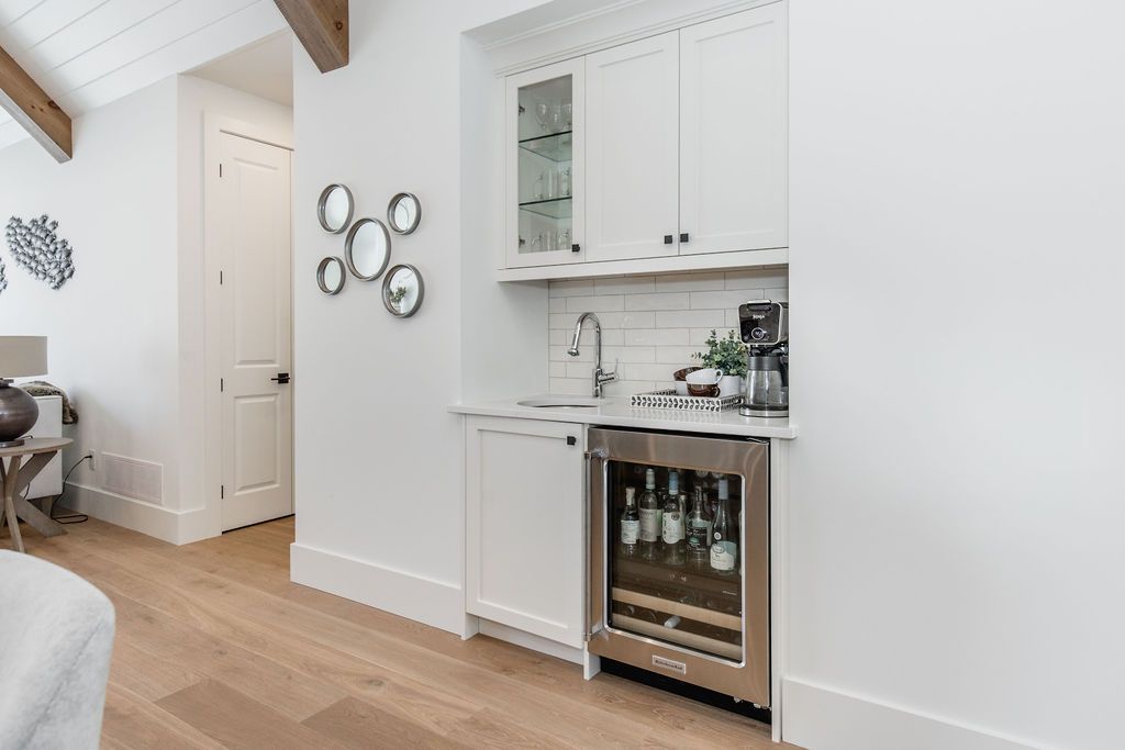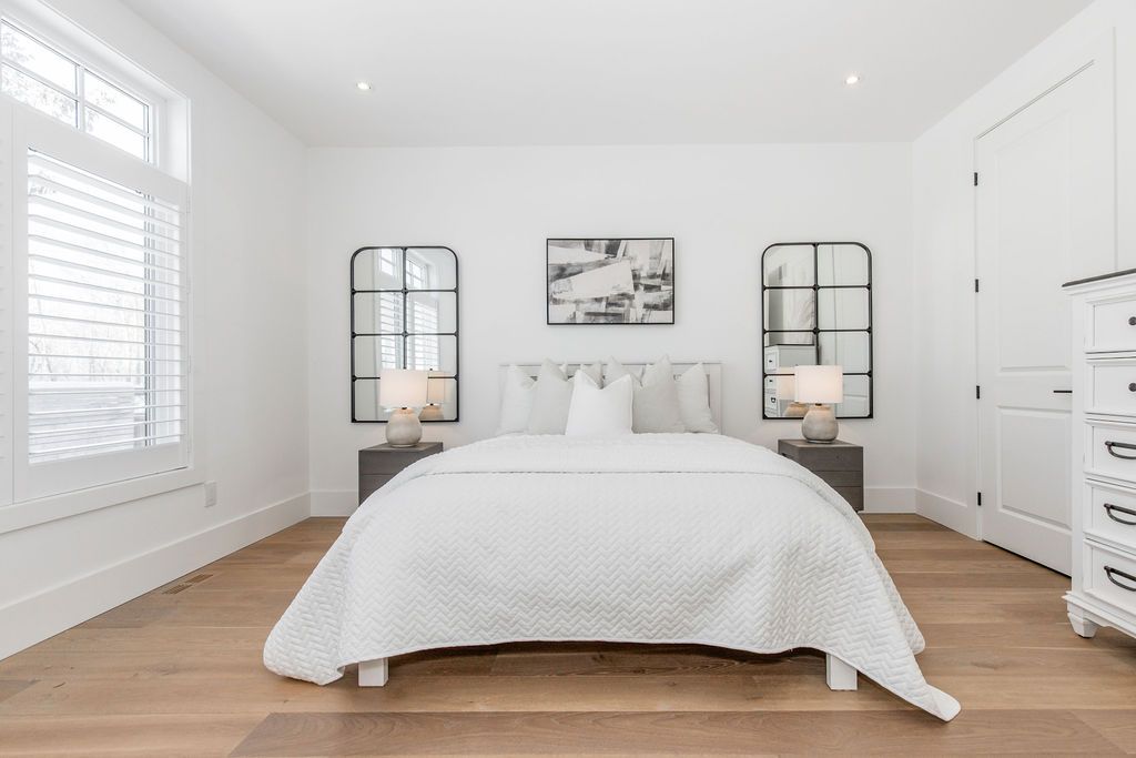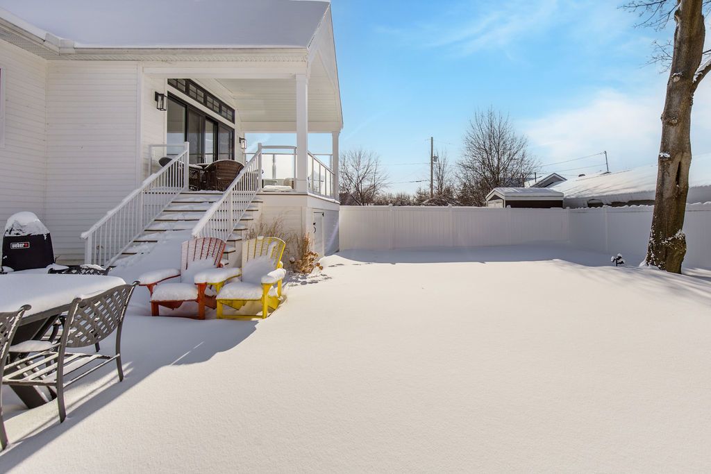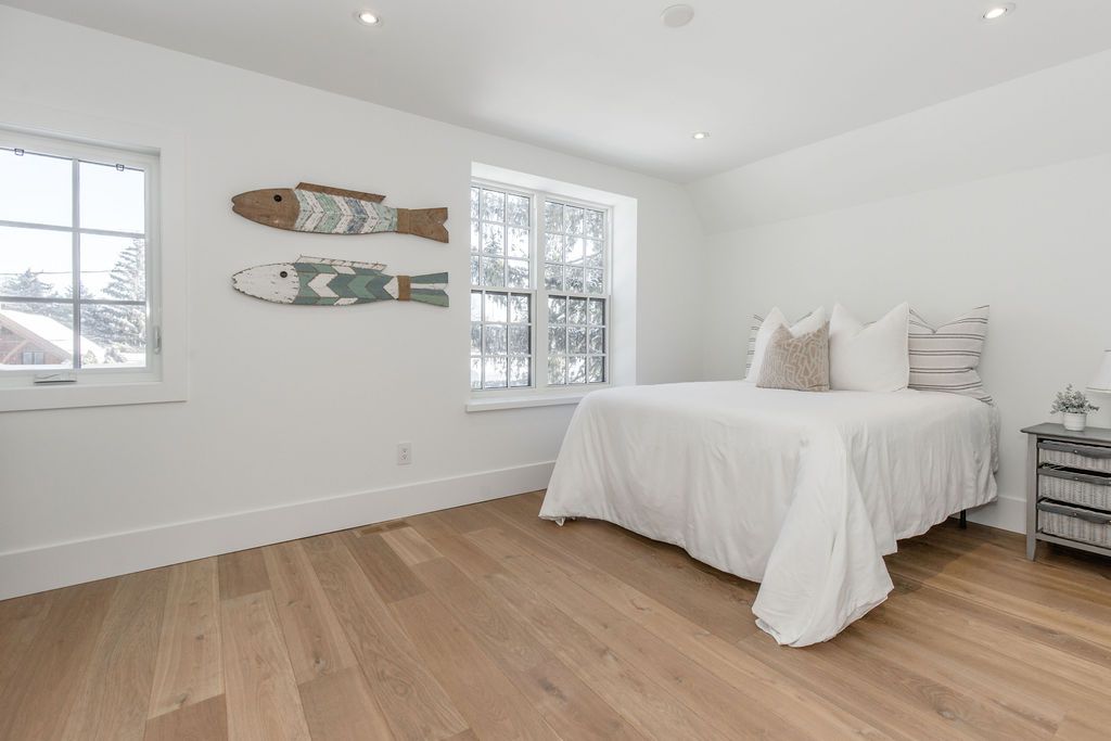 Fall in love with this spectacular custom-built vandermeer home just steps from georgian bay at sunset point, one of the area's most sought-after waterfront neighbourhoods. Offering over 3,700 sq ft of luxury living space, this 3+2 bedroom, 4 bathroom residence blends timeless craftsmanship with elevated modern finishes. Designed with 9-ft interior doors, upgraded hardware, wide-plank white oak hardwood flooring, and soaring 12-ft beamed cathedral ceilings with shiplap and pot lights, the home delivers an airy, open-concept layout ideal for both everyday living and entertaining. The gourmet designer kitchen features a statement centre island, stainless steel appliances, and a wet bar, seamlessly flowing into the dining and family rooms. The main-floor primary suite is a true retreat with a spa-inspired 5-piece ensuite, floating soaker tub, glass shower, heated floors, double quartz vanity, and walk-in closet. A second main-floor bedroom or office adds flexibility for guests or remote work. The upper loft family room and finished lower-level recreation room, both with gas fireplaces, offer multiple living spaces for families or multigenerational living. The basement includes two additional bedrooms, a wet bar, and rough-in for heated floors, making it ideal for guests or extended family. Enjoy summer evenings on the covered back deck, a fenced yard, and direct access from the mudroom/ski locker with inside garage entry, perfect for four-season living near the bay. With three gas fireplaces, central air, central vacuum, and premium finishes throughout, this home offers luxury, comfort, and location in equal measure.