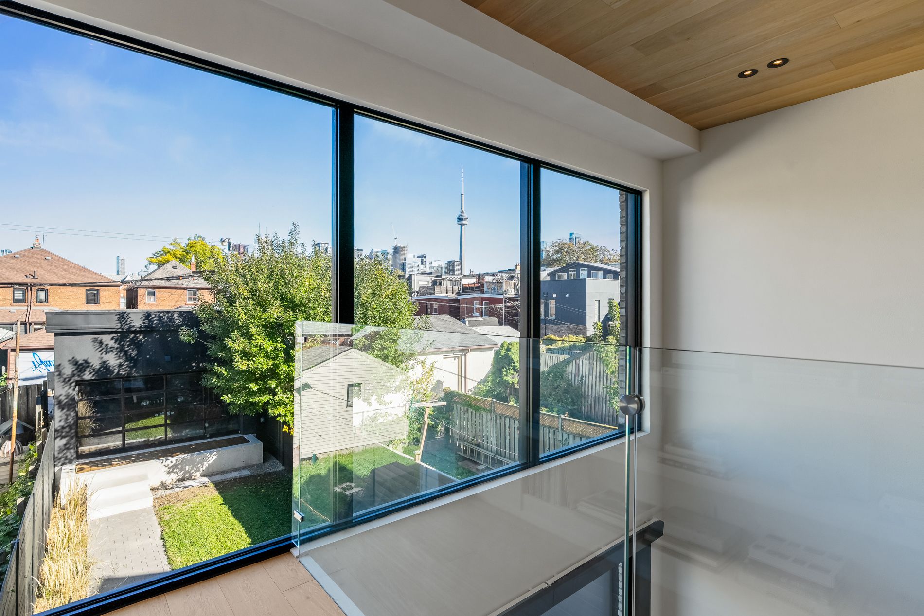 Discover an extraordinary architectural residence on palmerston avenue, one of trinity bellwoods' most sought-after streets. With history dating back to the 1860s, the home has gone through an extensive transformation, including a remarkable custom addition crafted by whitaker construction, a firm widely regarded as one of the city's leading builders, elevating it into a true design landmark. Featured earlier this year in the toronto star in an article titled "is this the coolest living room in toronto?" the answer is, yes. The main living space showcases striking 20-foot ceilings anchored by a sprawling sunken lounge, designed with a clean aesthetic that blends warmth with modern design. With east and west exposure, the combination of floor-to-ceiling glass and two large skylights allows natural light to pour through the entire home. The property features meticulous millwork in natural oak, micro-cement walls, heated concrete floors, and recessed lighting that together create a sense of calm sophistication. A beautifully designed mezzanine level, part of the custom addition overlooks the main living space and features a serene library with arched custom shelving, creating an inspiring, light-filled vantage point with views of the city skyline. This thoughtfully planned 3-bedroom residence includes an entire third level dedicated to the primary retreat, featuring a spa-like ensuite that extends to an expansive private rooftop terrace, partially covered and perfectly positioned for toronto skyline and cn tower views. An oversized double-sided 1. 5 car garage provides exceptional functionality, accommodating two smaller vehicles or offering ample additional space. The lower level includes a washroom and a dedicated area ideal for storage. Celebrating craftsmanship and innovation at every turn, every element has been curated with exceptional intention, resulting in a home that is both artful and livable, an inspired piece of architecture rarely found in the city.