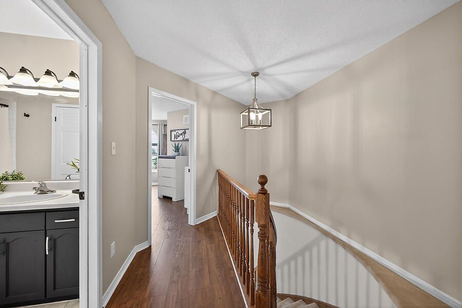 Beautifully maintained 2-storey freehold townhouse-offering the perfect blend of style, comfort, and convenience with no condo fees! This spacious home features 3 bedrooms and 2. 5 bathrooms, including a generous primary retreat complete with a private ensuite and relaxing soaker tub-your own personal escape at the end of the day. The heart of the home is the stunning custom kitchen, thoughtfully designed with both functionality and style in mind-perfect for everyday living and entertaining alike. The fully finished lower level adds valuable living space, featuring a versatile rec room and dedicated gym area to suit your lifestyle needs. Enjoy the convenience of an attached garage with inside entry and automatic door opener, making daily living that much easier. Ideally located in a sought-after, family-friendly neighbourhood directly across from a park, and just minutes to great schools, shopping, public transit, and easy highway access-this home truly has it all. With an updated furnace and air conditioning, you can move in with confidence and enjoy year-round comfort. A fantastic opportunity-don't miss your chance to call this beautiful home your own!