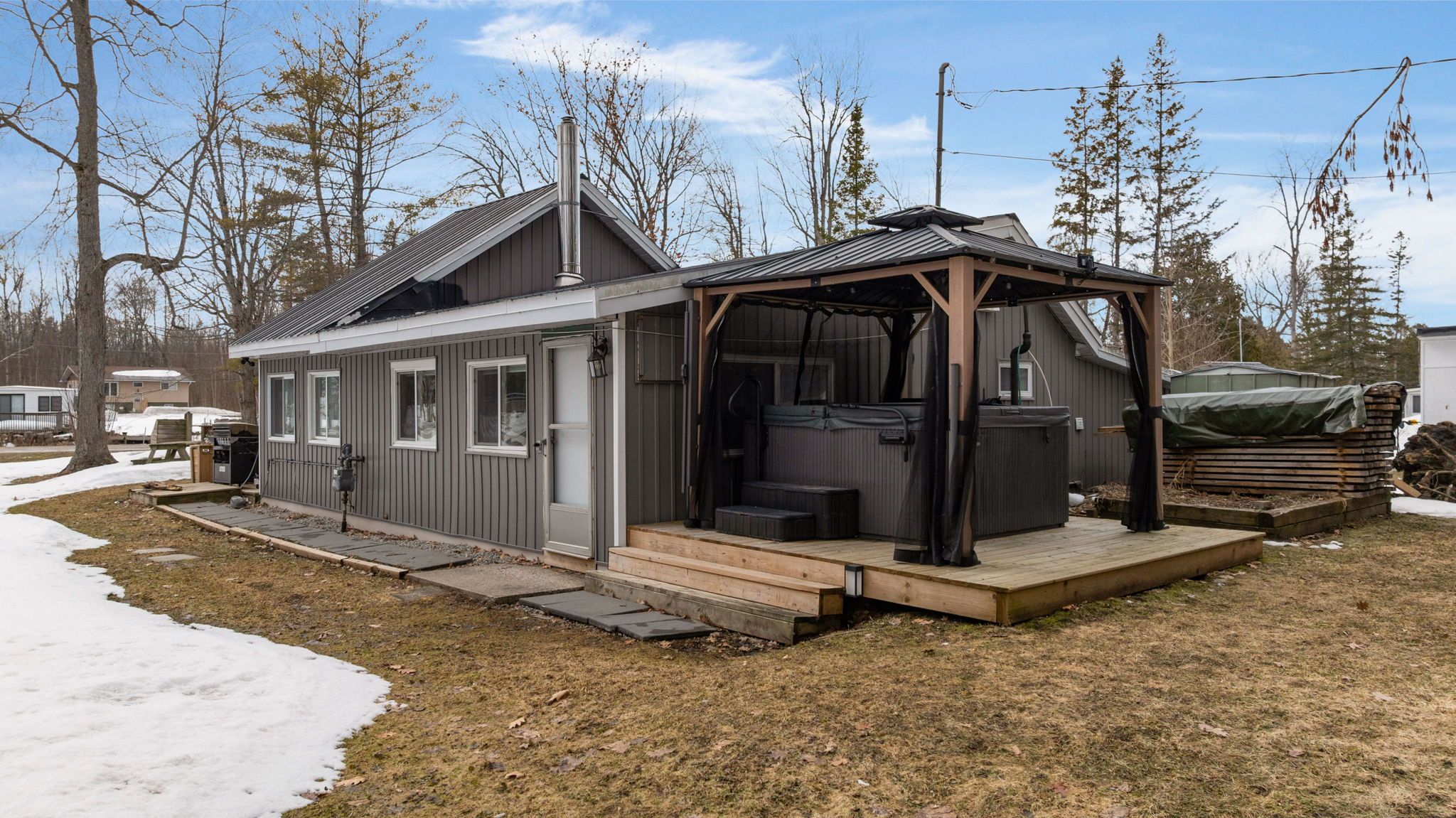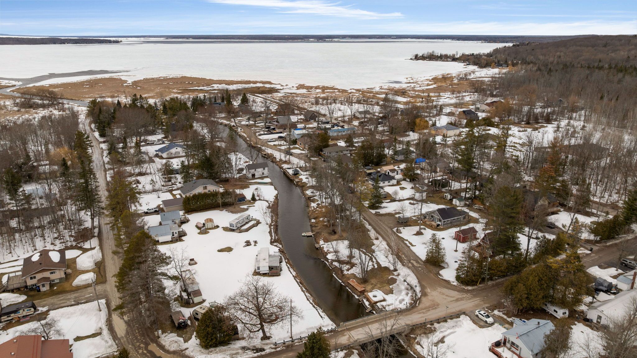 Welcome to 53 playfair drive, a charming and affordable detached bungalow offering 3 bedrooms, perfect as a cottage getaway or year round residence with riverfront access leading out to sturgeon bay. Located in the welcoming community of sturgeon beach along the shores of beautiful georgian bay, this is a wonderful opportunity to enjoy an affordable waterfront lifestyle. Inside, the bright and open living area features a cozy gas fireplace and flows into the eat in kitchen, complemented by three comfortable bedrooms, a full 4 piece bathroom featuring a clawfoot soaker tub, convenient in-suite stackable laundry, and a separate shower room adding extra convenience for family and guests. Spend your days fishing, kayaking, canoeing, paddle boating on the river, or heading out by small boat to explore the bay right from your own private dock. After a day on the water, unwind in the hot tub under the gazebo while taking in the peaceful setting or enjoy the beautiful evening sunsets on the west facing front deck or by the river. Move in with ease as this fully furnished and well equipped property comes with everything you need to start enjoying right away, whether as a family retreat, year round getaway, or investment opportunity. In recent years, the property has seen updates including newer decks, kitchen improvements, updated vinyl flooring, and the addition of natural gas service. The nearby 18+ km tay shore trail offers a fantastic setting for walking, cycling, snow shoeing, and enjoying the outdoors in every season. Enjoy quick access to highway 400 for easy travel to the gta, approximately 90 minutes away, and convenient proximity to midland for shopping, dining, and everyday amenities. Whether you are searching for a four season recreational escape, cottage getaway, commuter friendly retreat, or an affordable way to get onto the water, this property offers the perfect blend of charm, comfort, and lifestyle.