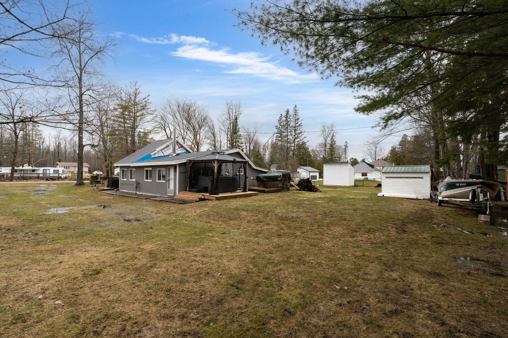 • Hot tub under gazebo perfect for relaxing after a day on the water.