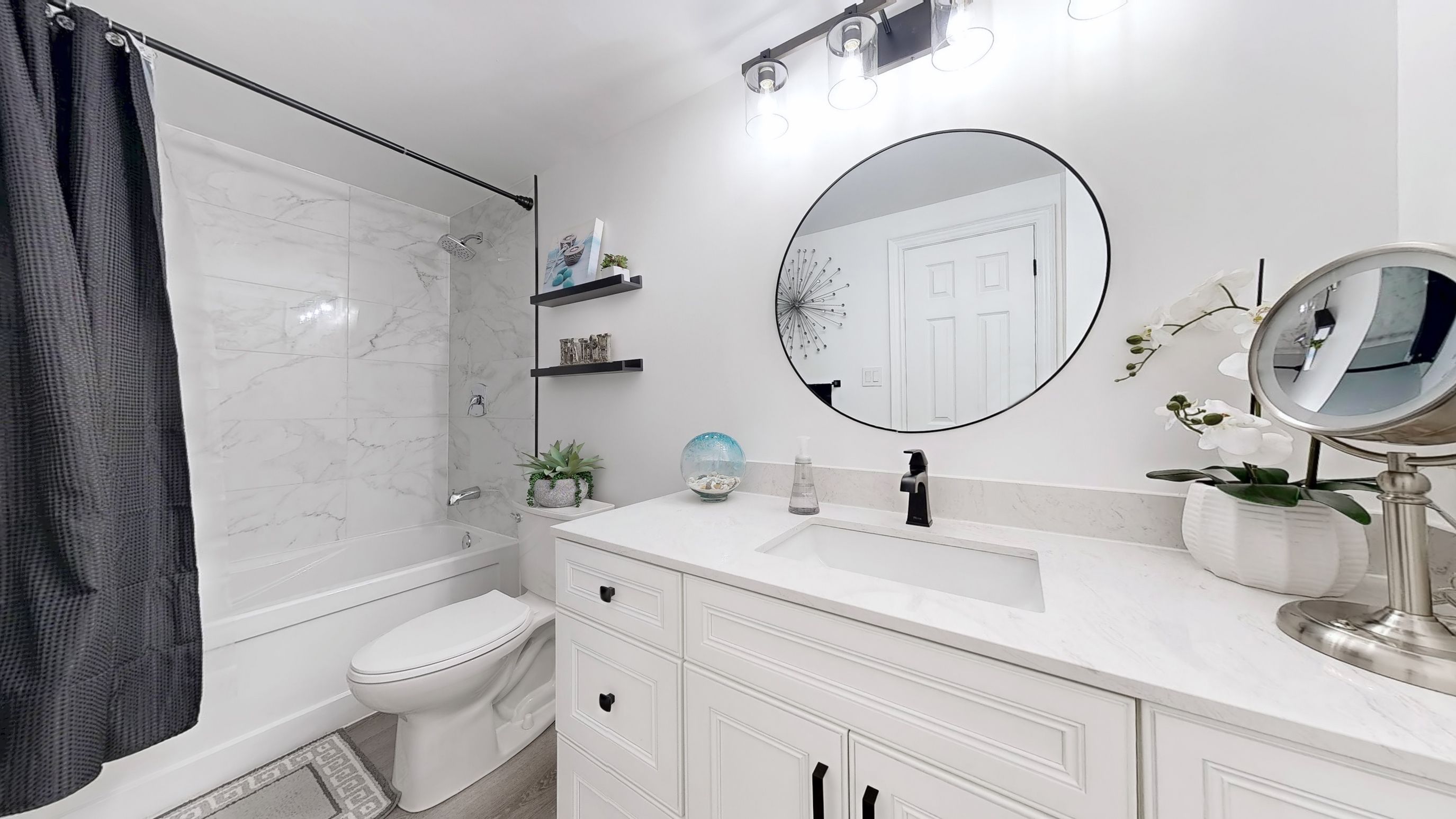 • Modern kitchen with new cabinets and granite countertops.
