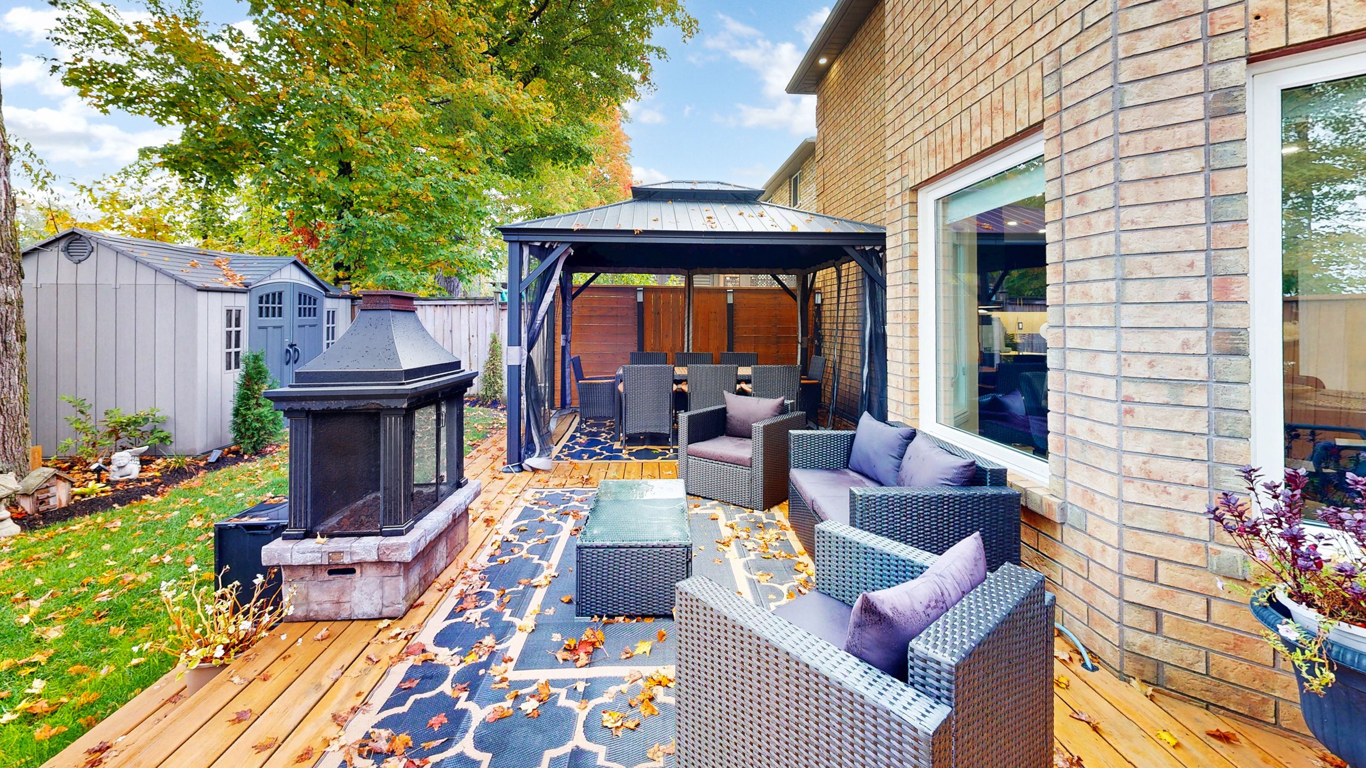 • Private backyard oasis featuring gazebo and gas fireplace.