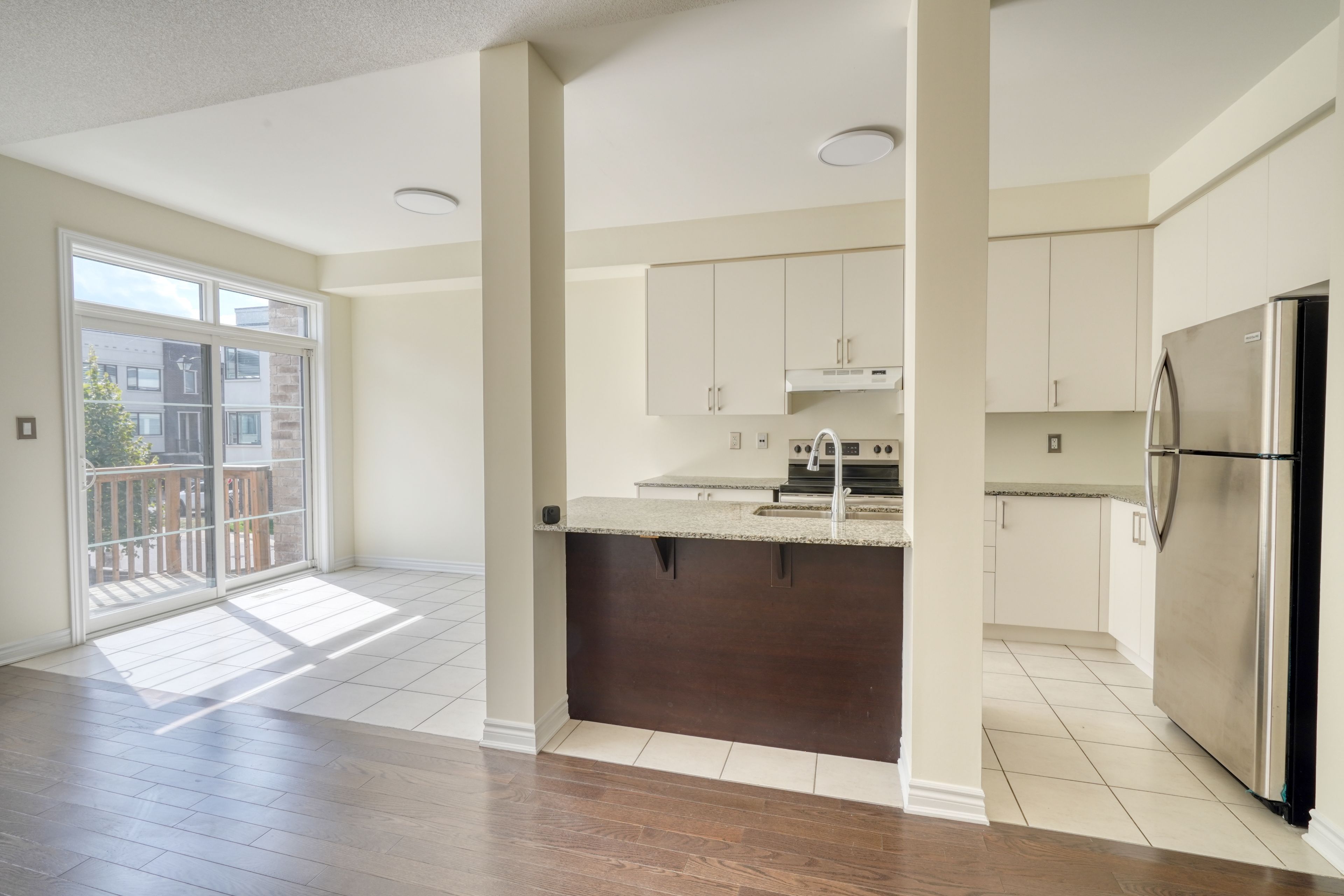 • Bright living area features 9-foot ceilings and upgraded kitchen with granite countertops.