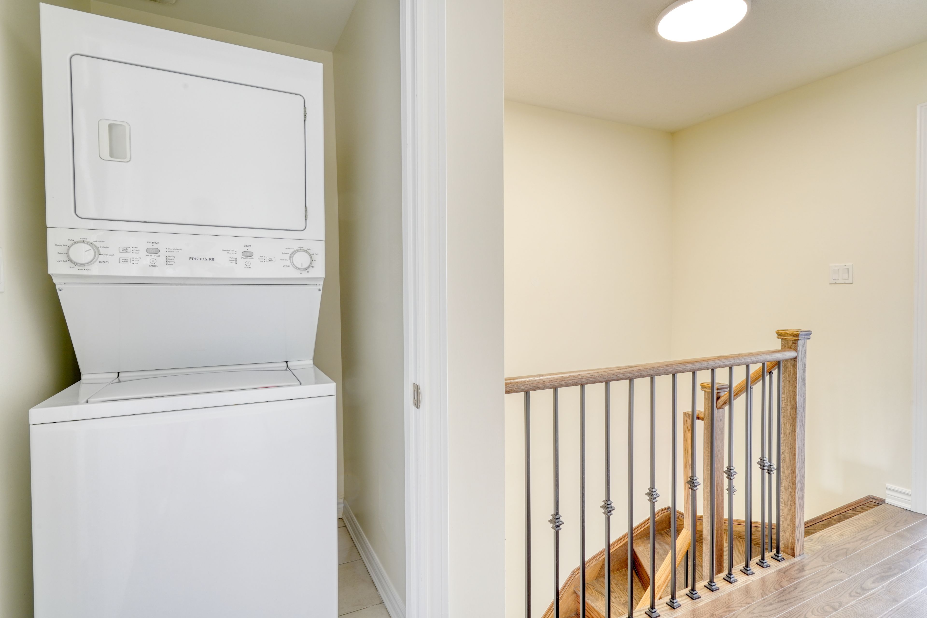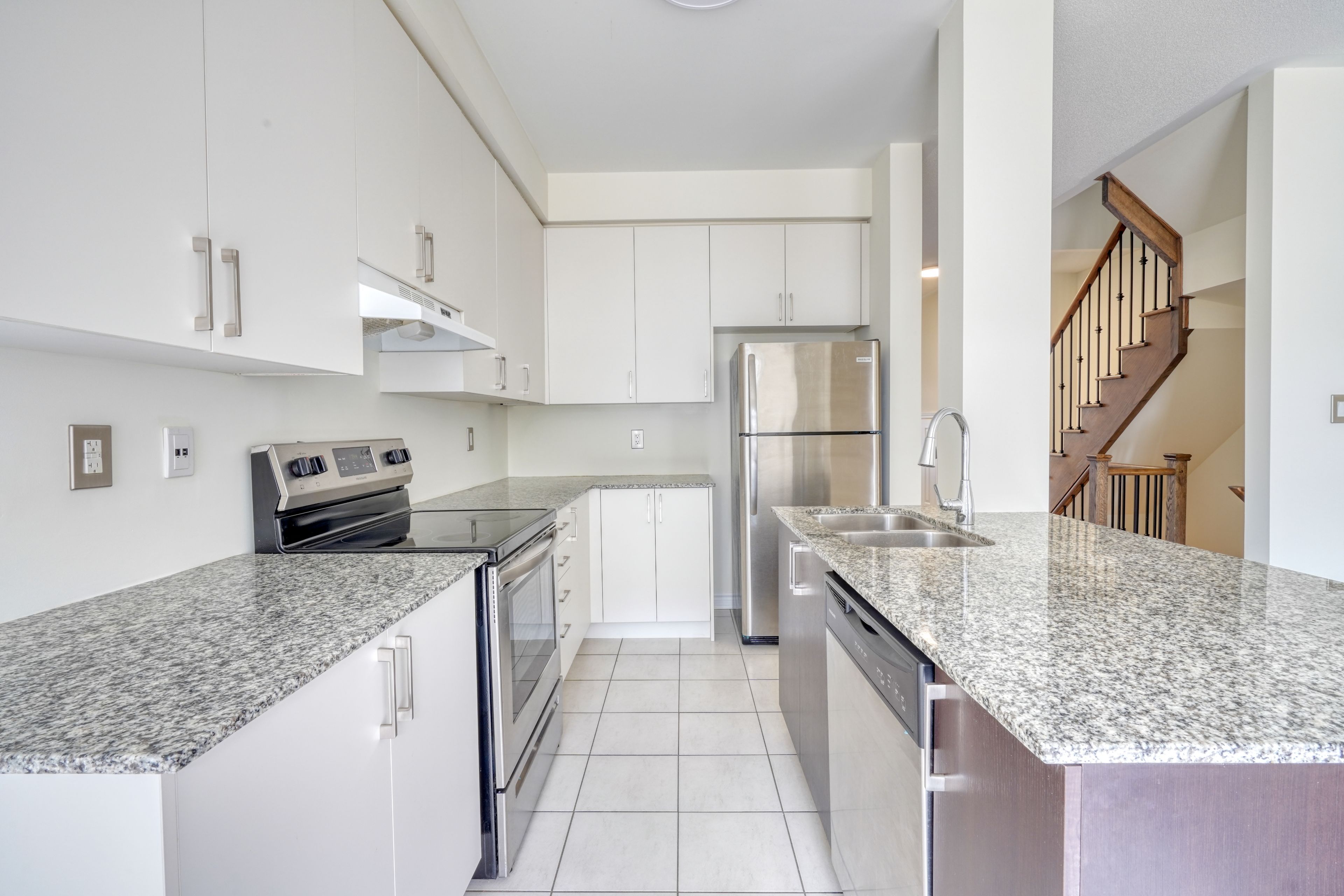 Presenting a stunning, one-of-a-kind 4-bedroom, 4-bathroom freehold townhome in the highly sought-after vellore village with no maintenance fees. This bright and spacious home offers approximately 2,000 sq. Ft of beautifully upgraded living space, featuring 9-foot ceilings on the main floor and an updated kitchen complete with granite countertops, a breakfast bar, and a large eat-in area. The open-concept layout seamlessly connects the kitchen and family room, with a walkout to the deck perfect for relaxing or entertaining. The home has been freshly painted throughout, and includes a solid wood staircase with elegant wrought iron pickets. The primary bedroom is generously sized and includes a walk-in closet, while the upper-level laundry adds everyday convenience. The fully finished walkout basement includes a 4th bedroom with a private 3-piece ensuite, ideal for leasing out, guests or extended family. There's also extra space for an additional laundry setup in the utility room. Ideally located just minutes from excellent schools, parks, shopping, the new cortellucci vaughan hospital, and highway 400, this home offers unmatched convenience in a prime location. Truly move-in ready, this is a rare opportunity you won't want to miss. New air conditioner (2025)