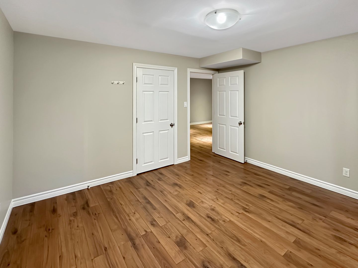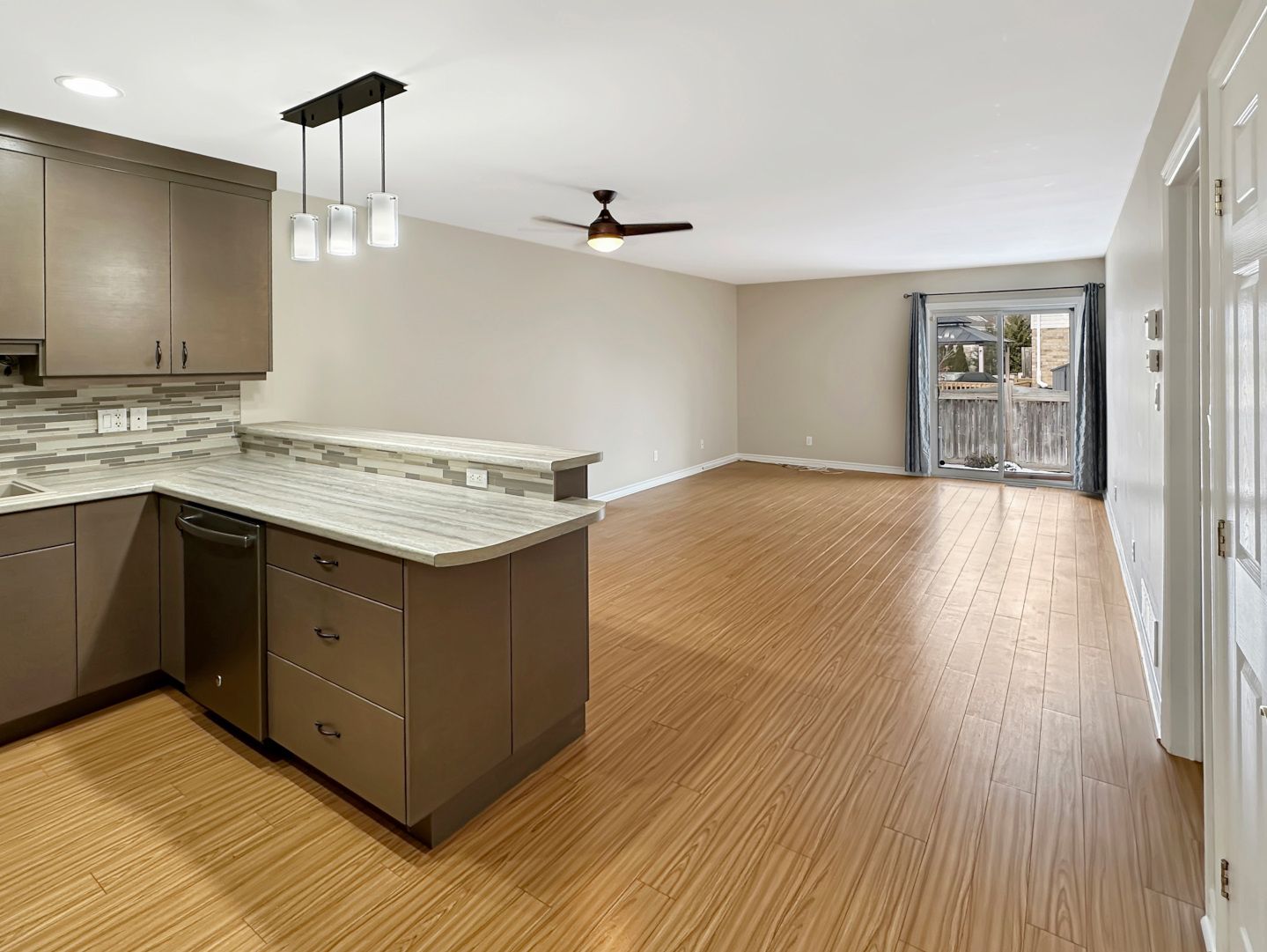 Welcome to this charming townhouse bungalow offering low-maintenance living in a comfortable and well-designed layout. With an attached single-car garage and thoughtful updates throughout, this home is ideal for anyone seeking convenience and modern comfort. Step inside to a bright front bedroom, perfect for a guest room, home office, or cozy retreat. The main level continues with an open-concept kitchen, living, and dining area, ideal for both everyday living and entertaining. The updated kitchen features modern appliances and ample workspace, while the living room offers direct access to the rear yard for easy outdoor enjoyment. The spacious primary bedroom includes a walk-in closet and a cheater ensuite door to the well-appointed 4-piece main bathroom. Main floor laundry adds practicality and ease to daily routines. The fully finished lower level provides exceptional versatility with a generous recreation room, a second full bathroom, and a large third bedroom. An additional office/flex room offers the potential for a fourth bedroom or hobby space. A sizeable utility room and convenient under-stair storage ensure plenty of room for organization.