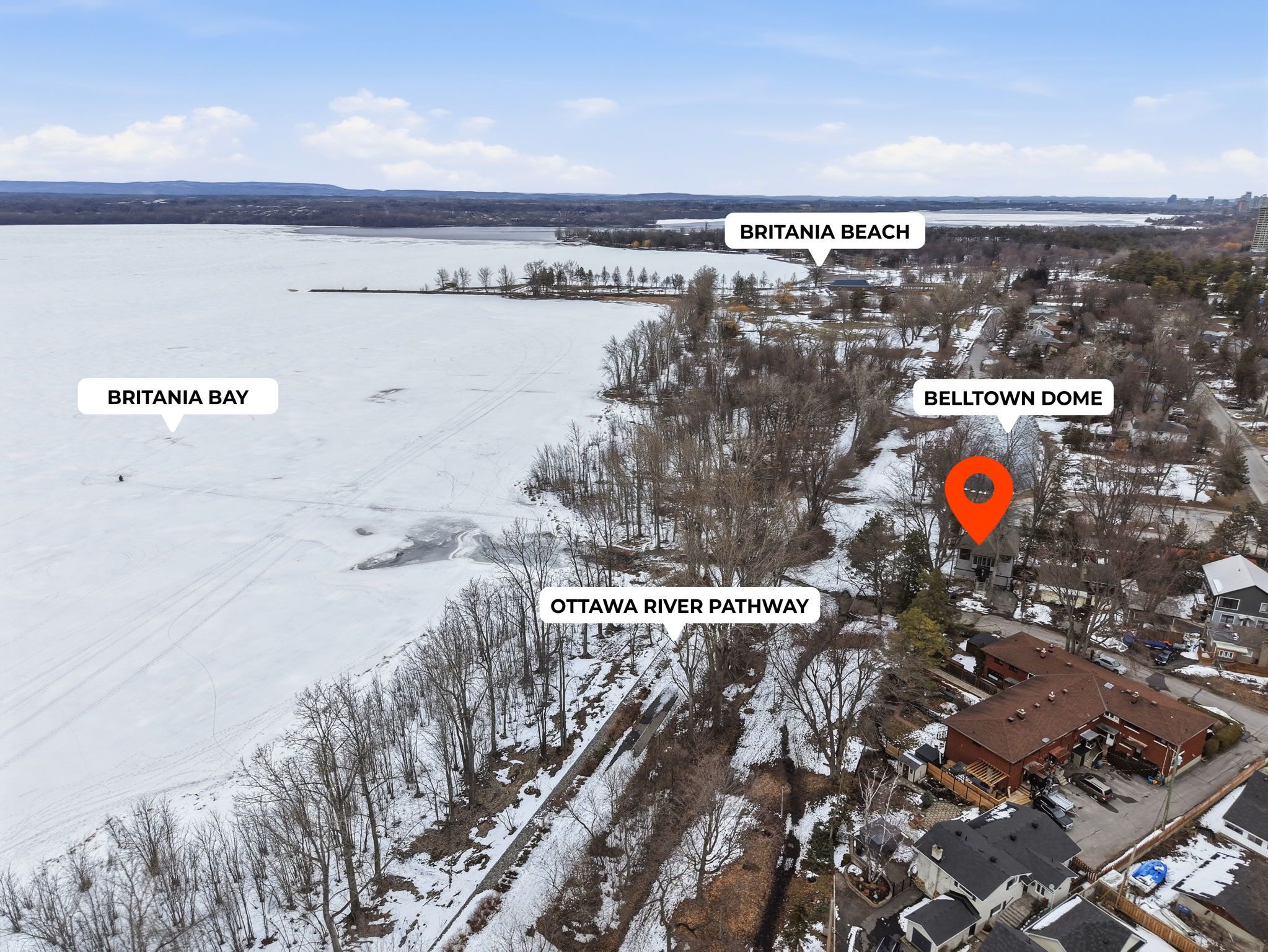 One of the most unique homes in the city, offering spectacular views of britannia bay (aka lac deschenes) and the ottawa river, with breathtaking sunsets enjoyed year-round. The open concept design is built around architectural elements, including cast iron panels and oak doors, bannisters and newel posts originally from st. Andrew's church. Lovingly maintained by long-term owners, this exceptional residence blends modern comfort with timeless architectural character across four expansive levels designed for both everyday living and entertaining. The main level features well-appointed sleeping quarters including a spacious primary suite complete with a private ensuite and two walk-in closets, an additional bedroom, and a beautifully renovated full bathroom. The true highlight of the home is the open-concept second floor; an extraordinary space with 9+ ft ceilings, crown moldings, and stunning hardwood floors. Nearly floor-to-ceiling cedar-framed wraparound windows capture west, north, and east exposures, filling the home with natural light and showcasing the surrounding views. The custom-built kitchen offers quartz countertops, maple cabinetry, a diner-style bar, and stainless-steel appliances. A sitting area with a cast iron fireplace, versatile den or third bedroom, and powder room complete this level, while historic cast iron panels wrap around the stairwell, adding architectural charm. The third level library with rotunda provides a special retreat; ideal as a reading room, studio, or workspace. The fully finished basement includes a spacious recreation room, 3-piece bathroom, additional den, and laundry room, offering flexible living space for family or guests. An oversized garage with loft storage completes this remarkable home. Step outside to enjoy year-round recreation - run, hike, ski, or kitesurf - and walk to nearby amenities. A rare opportunity to own a one-of-a-kind property in an unbeatable waterfront setting. Offers march 31. 6 hours irrevocable.