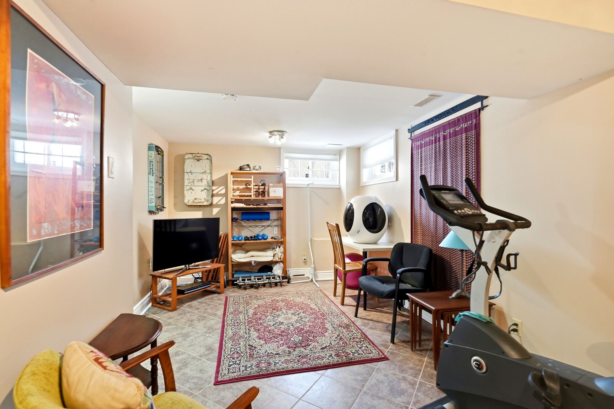 • Finished basement offers flexible living space and oversized garage for storage.