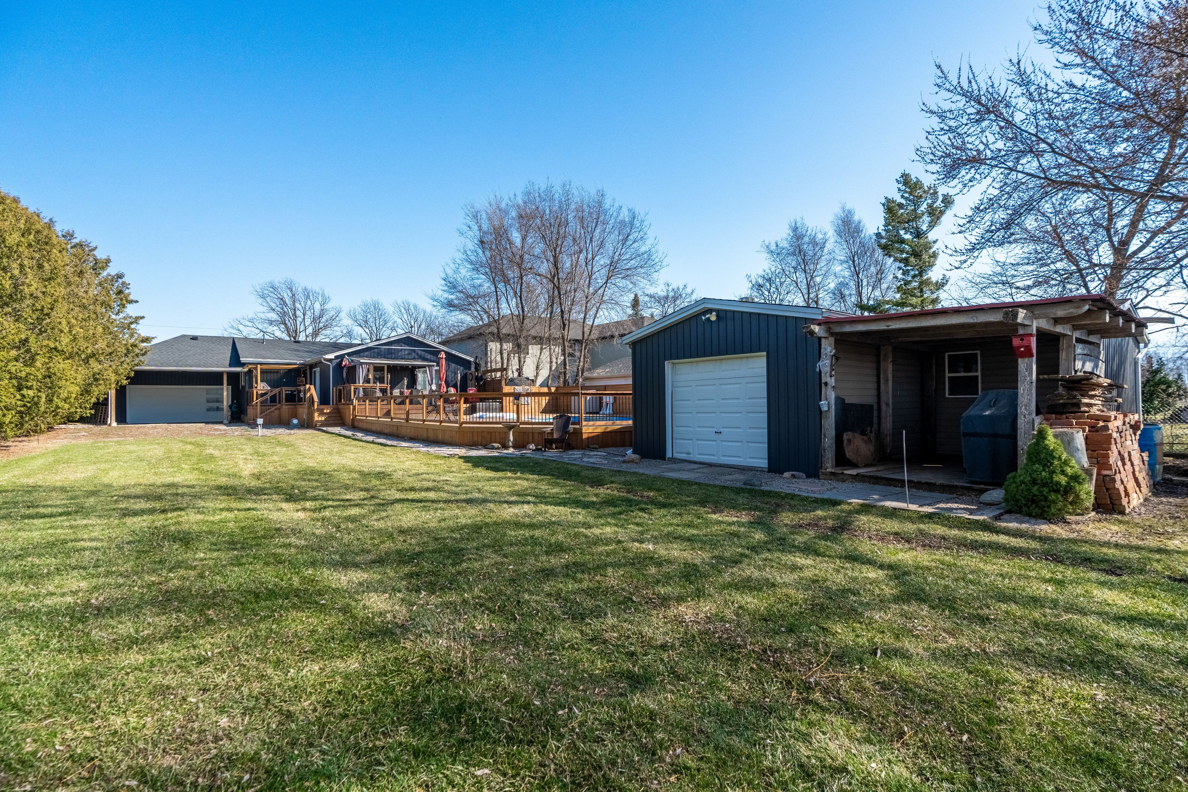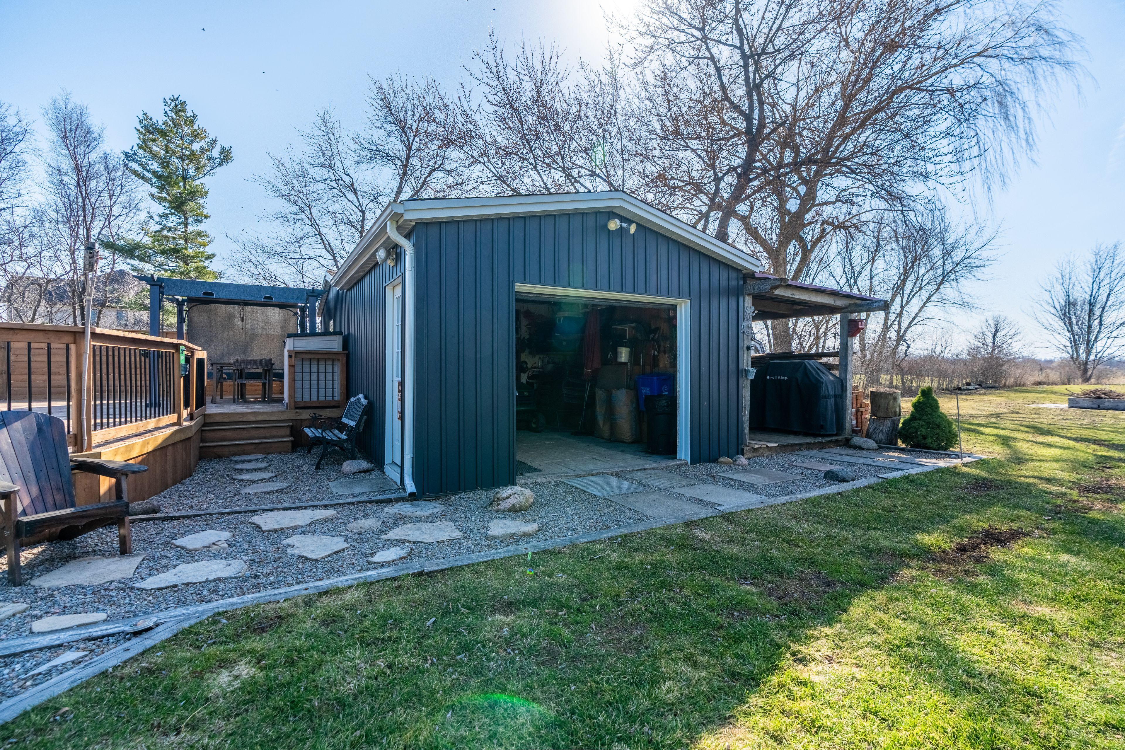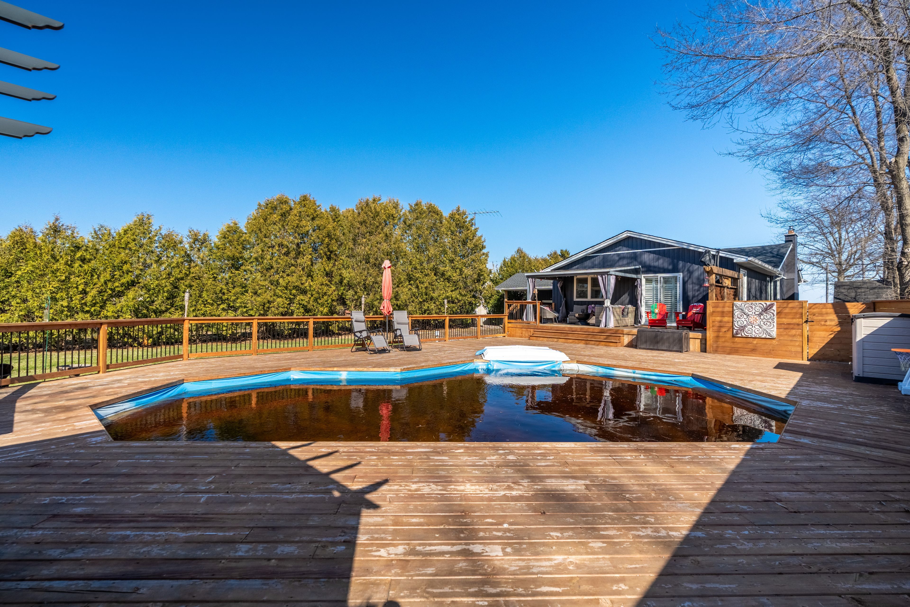 This property is all about the lifestyle. Set on a full acre, the backyard is the real showstopper. A massive deck flows out to a heated saltwater pool, surrounded by space, privacy, and endless potential. Whether you are entertaining, relaxing, or planning long term with multi-generational use or additional structures, this lot gives you options. Inside, the main floor has been refreshed with brand new laminate flooring (2026) and offers a bright, functional layout. The primary bedroom walks directly out to the deck, creating an easy connection to the outdoor space. The basement was fully refinished in 2022 and includes updated weeping tile and water protection, giving you additional living space with peace of mind. The heavy lifting has already been done. A double car garage was added along with major exterior upgrades completed in 2023, including the roof, siding, eavestroughs, deck, pool, grading, and landscaping. The asphalt driveway was upgraded in 2024, along with plumbing updates and sump system improvements. Septic and cistern have also been recently serviced. The 500 sq ft detached rear garage adds even more flexibility, complete with its own electrical panel, making it ideal for hobbyists, workshop use, or additional storage. An invisible fence was also added for your dogs protection. Enjoy the space and privacy of country living while still being just minutes from city amenities, offering the perfect balance of both worlds.