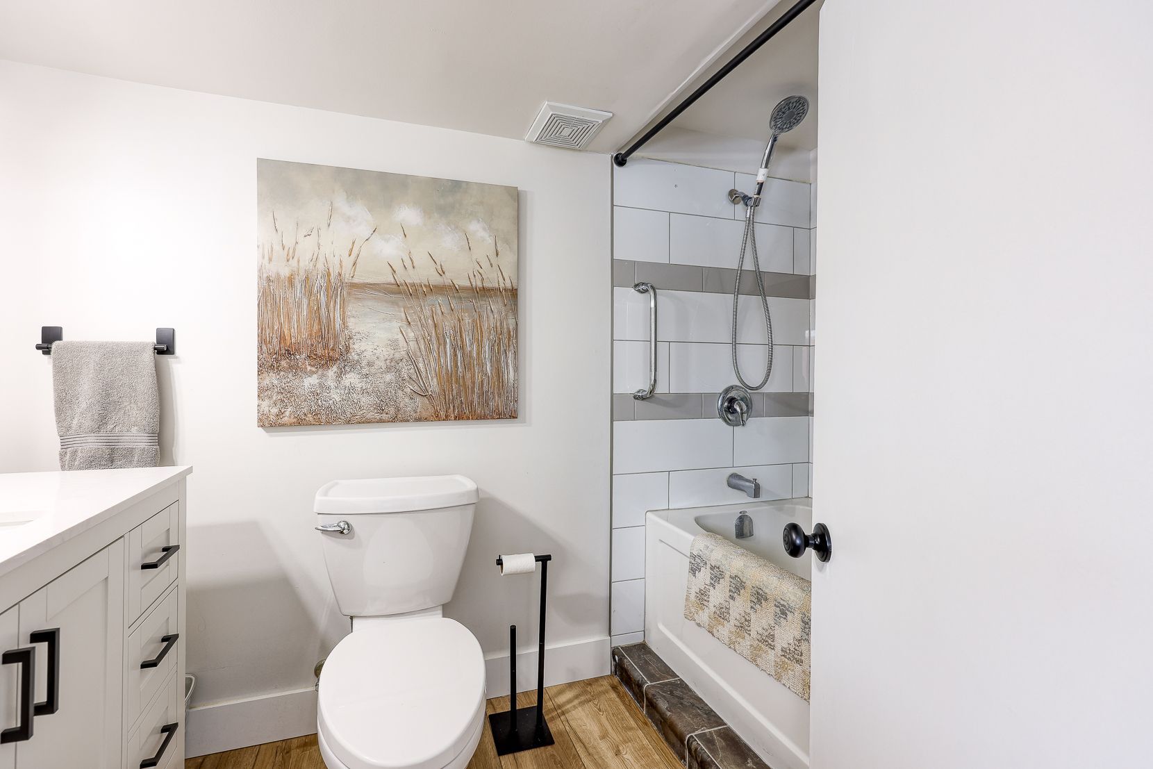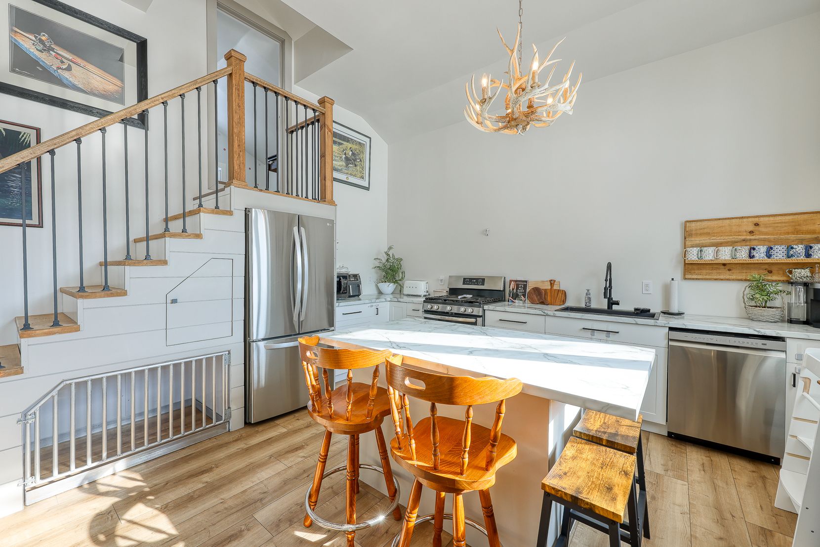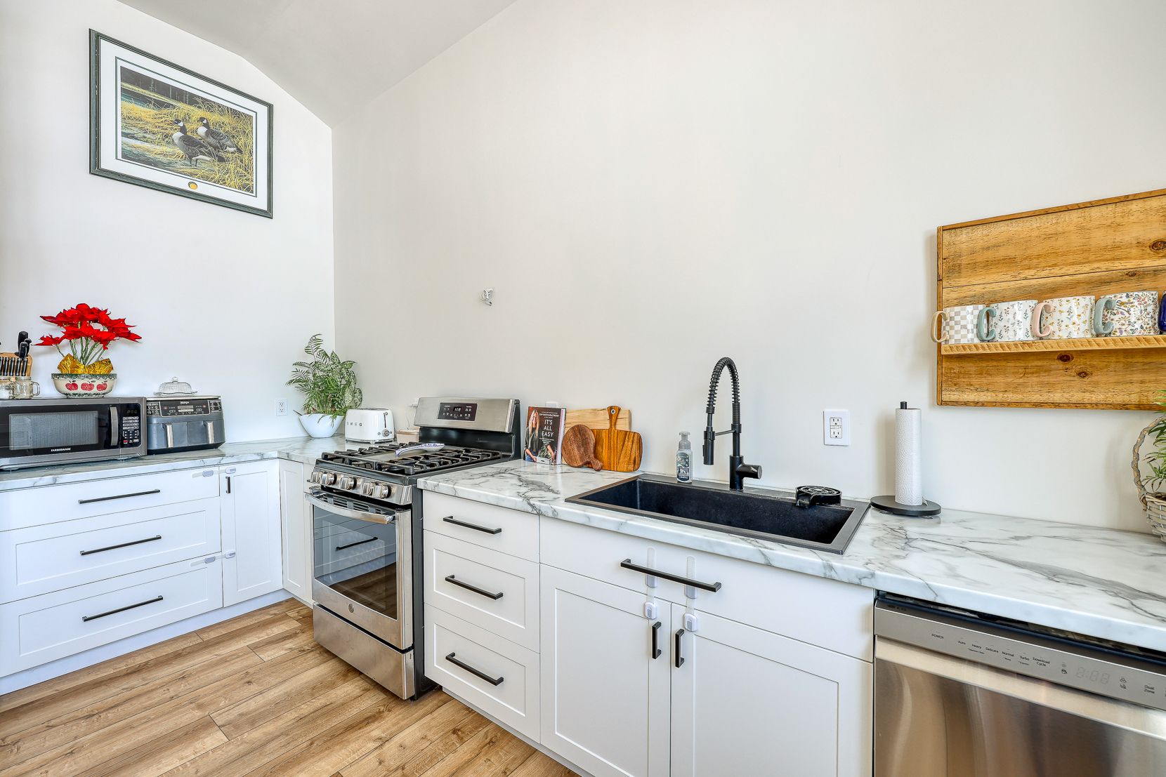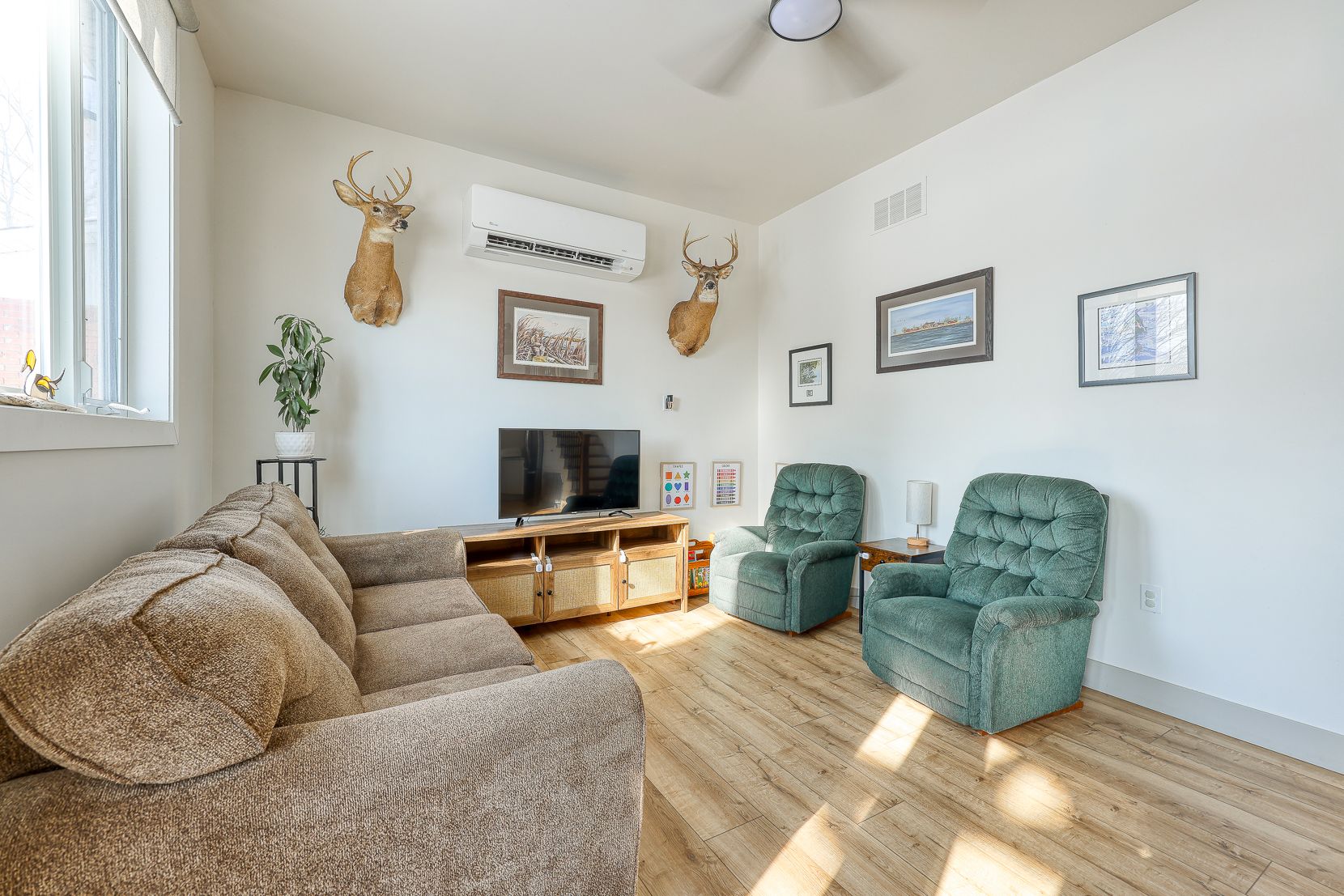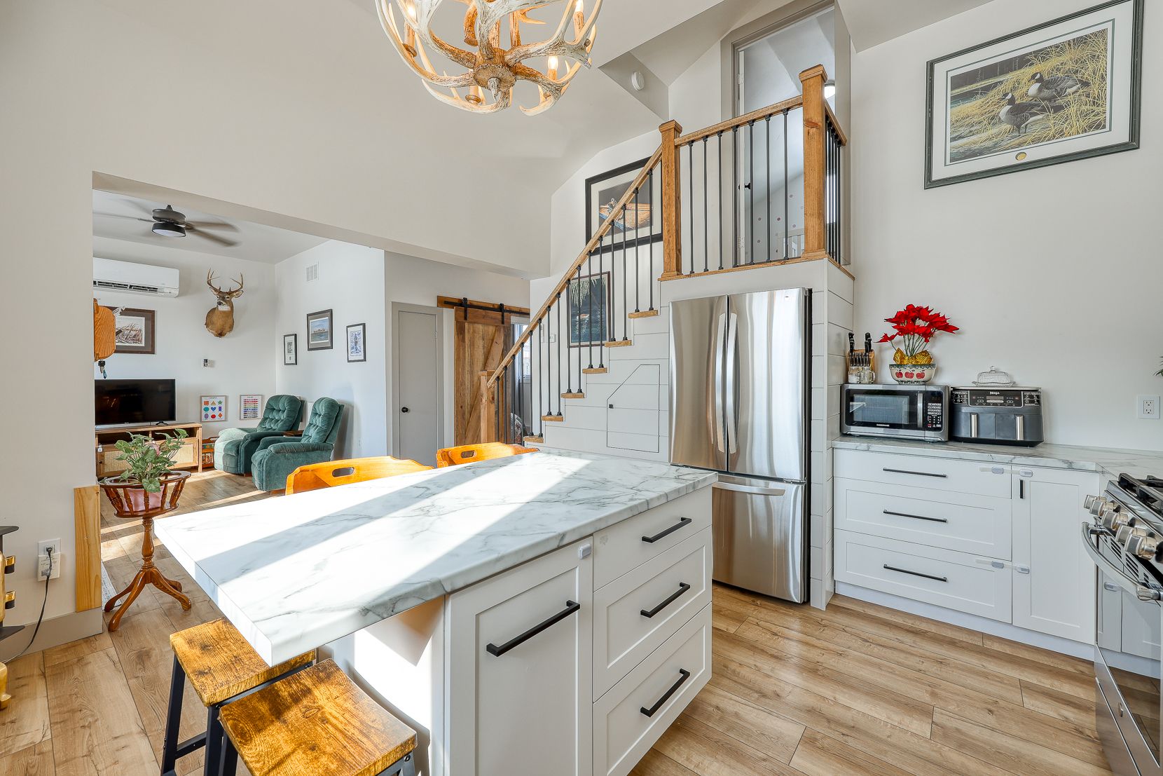 • Bright living space with modern kitchen and bathroom renovations.