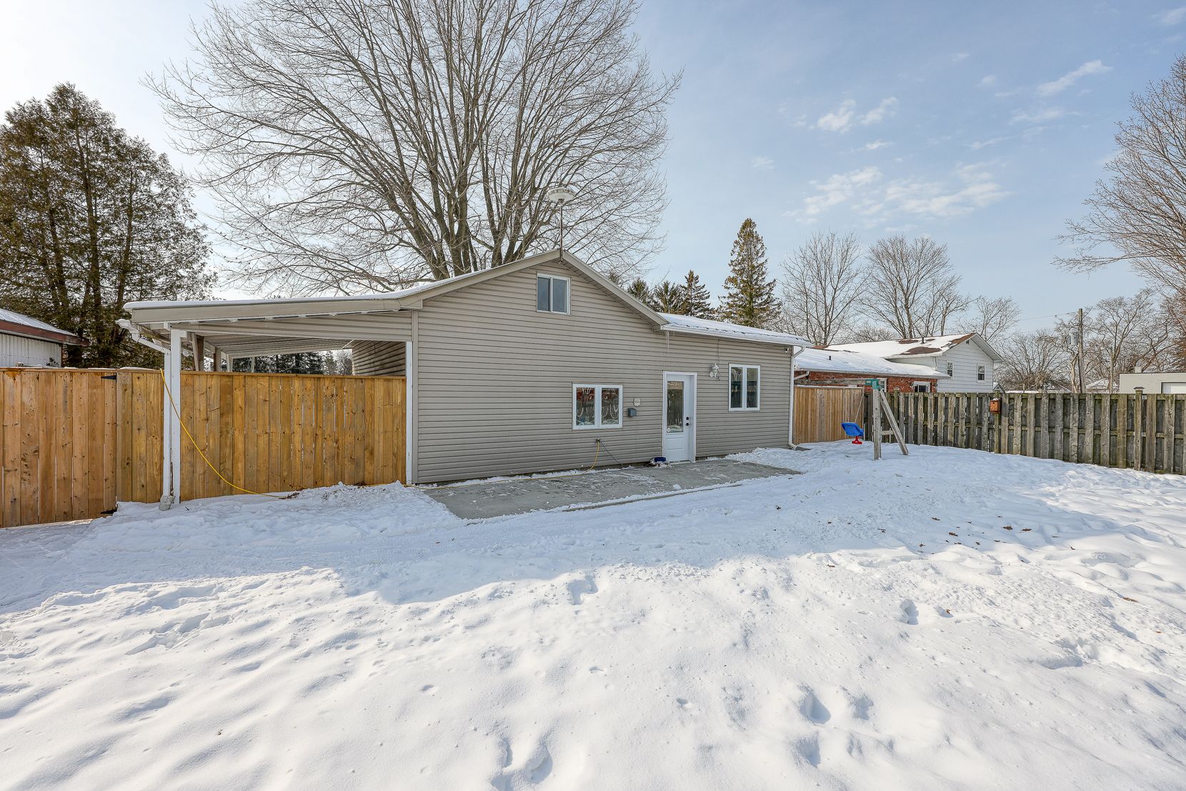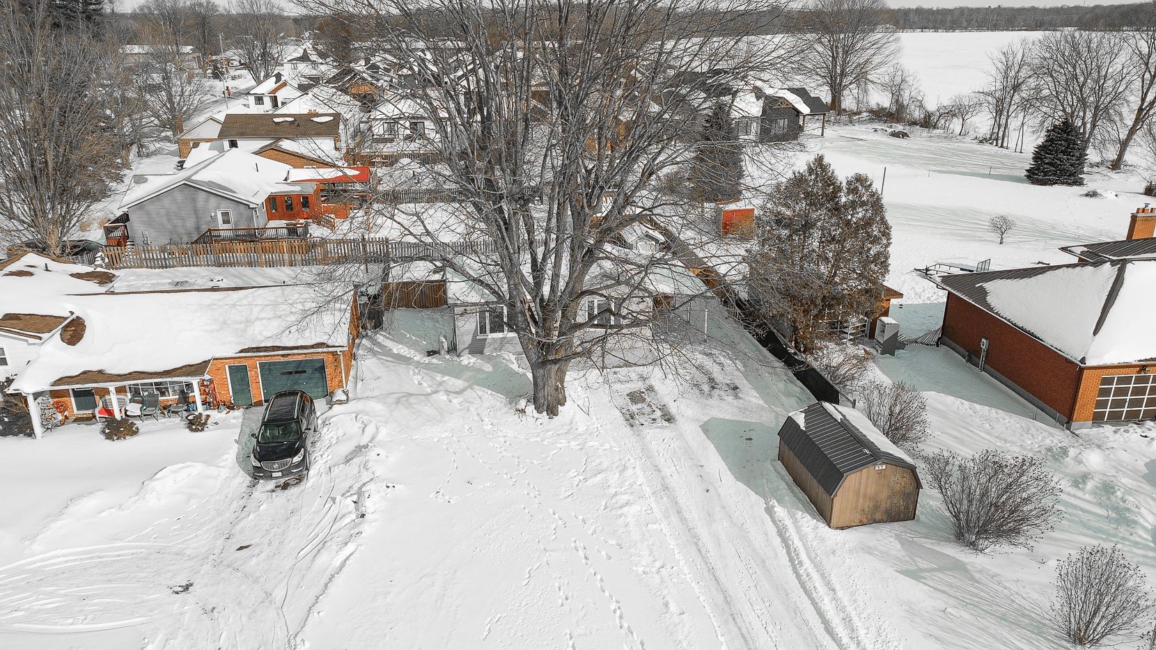 Beautifully updated and perfectly located within walking distance to the beach, this charming 2-bedroom, 1-bath home offers 972 sq ft of bright above-grade living space - ideal for first-time buyers, someone looking to downsize, or anyone looking to enjoy relaxed lakeside living. Recent updates include a modern new kitchen and bathroom, fresh paint and flooring throughout that create a clean, move-in-ready feel. The home also features a worry-free, low-maintenance metal roof for added peace of mind. Step outside to a fully fenced backyard with a storage shed plus an additional shed beside the driveway, a single-car carport, and plenty of driveway parking for guests. You can even hear the lake from the property - a constant reminder of the lifestyle this location offers. Spend your summers strolling to the beach or grabbing ice cream just down the road. A fantastic opportunity to own an affordable home near the water - you truly can't go wrong with lakeside living.