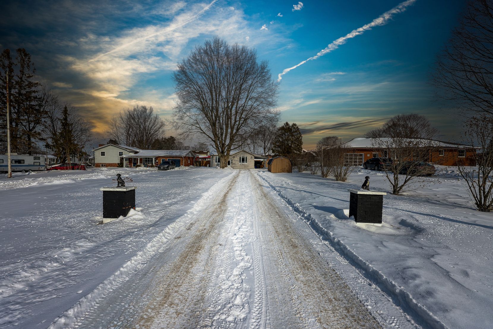 • Fully fenced backyard with storage sheds and carport.