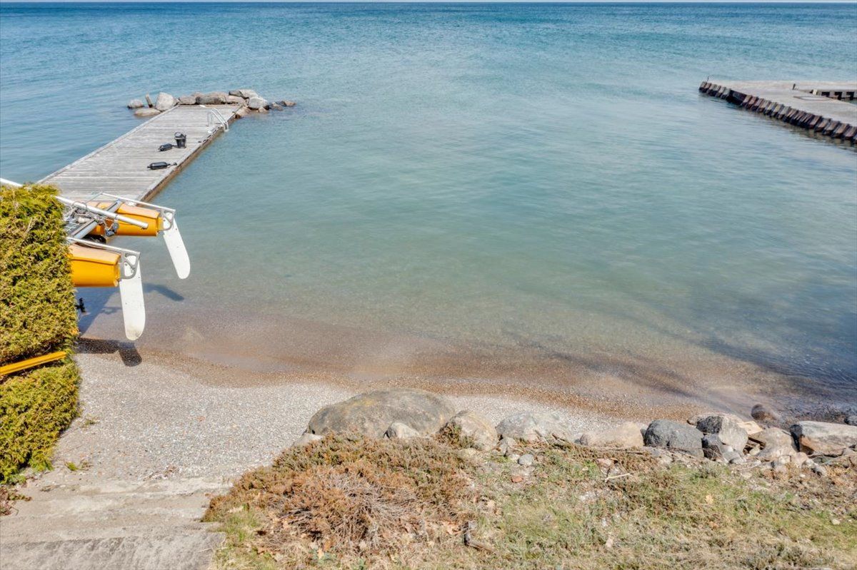 This beautiful four-bedroom, two-bath lakeside home is nestled on a private, hedged lot in one of the area's most desirable lakefront communities. A standout feature of this property is the shared ownership of 42 westwind circle, an expansive direct lakefront property showcasing panoramic views of lake simcoe, a sandy beach, spacious green space, an elevated deck, and a permanent dock, truly capturing the very best of lakeside living. Offering over 2,000 sq. Ft. Of thoughtfully designed living space, this residence blends timeless character with modern comfort and boasts a renovated family size kitchen with granite countertops and an oversized island perfect for entertaining. The generous living room includes a stunning stone fireplace that flows seamlessly into a bright spacious sunroom. The separate dining area offers multiple walk-outs to two covered porches, including a fully screened-in space ideal for enjoying peaceful, bug-free evenings. The layout is well-suited for families or guests, with one bedroom on the main floor and three additional bedrooms upstairs. Conveniently located just minutes from franklin beach, de la salle beaches, sutton, and jackson's point, this property offers the perfect balance of privacy and accessibility. Whether you're seeking a year-round home or a charming cottage retreat, this is a rare opportunity to experience the best of lake simcoe living.