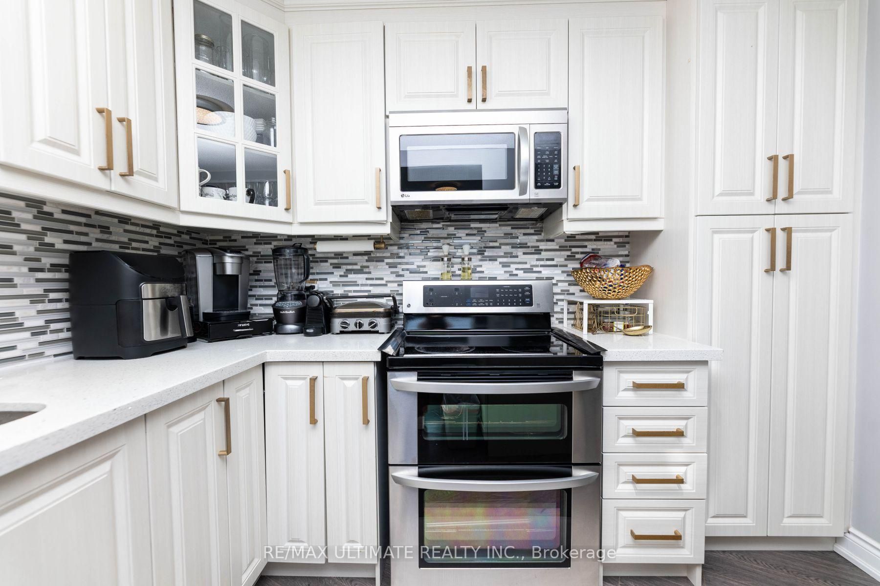 • Modern kitchen equipped with stainless steel appliances and quartz countertops.