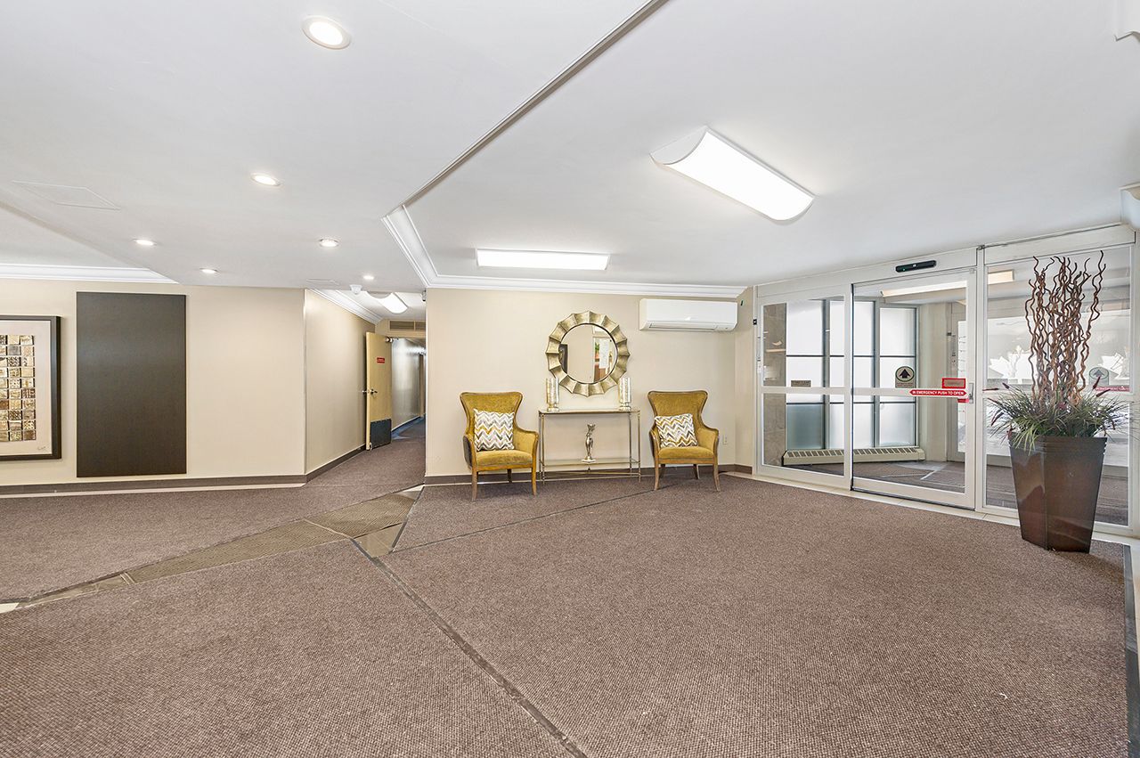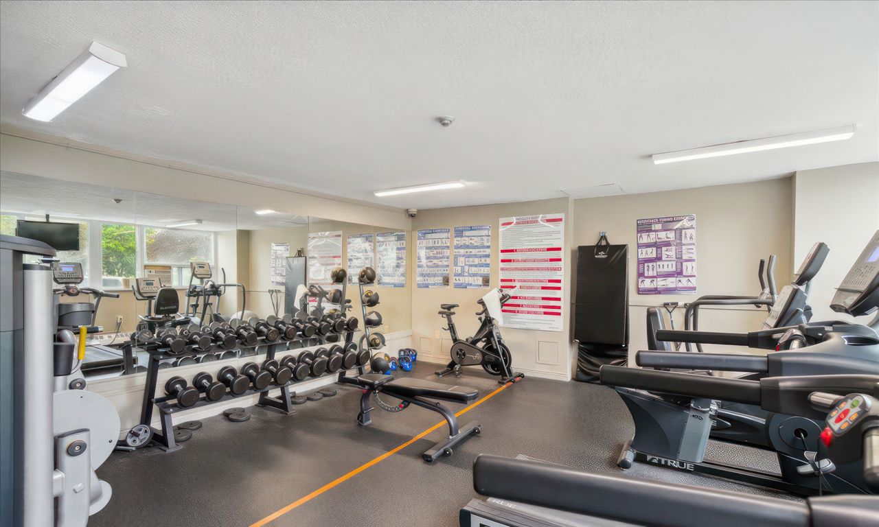 • Building amenities include an indoor pool, gym, sauna, and games room.
