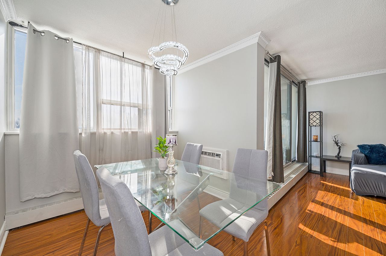 Large renovated three bedroom condo offering the largest floor plan in the building. Bright and spacious layout with a practical split bedroom design and excellent natural light throughout. Modern kitchen with stainless steel appliances and a stylish backsplash. Separate dining room ideal for everyday living and entertaining. Updated four piece bathroom and a generous ensuite storage room. Walkout to a private balcony with unobstructed south views and beautiful sunrises and sunsets. Well maintained building with recent improvements including new windows in 2023, new exterior stucco in 2023 and new balconies in 2024. Amenities include an indoor pool, gym, sauna and games room. Two parking spots included, one owned and one rental. Located in a desirable mississauga valleys neighbourhood directly across from cedarbrae park, offering green space, walking trails and recreational facilities. Close to schools, parks, transit, shopping and everyday amenities, with square one shopping centre nearby and easy access to major highways including the 403 and qew. **all utilities included in the maintenance fees and cable tv** building amenities include: indoor pool, party room, and gym.