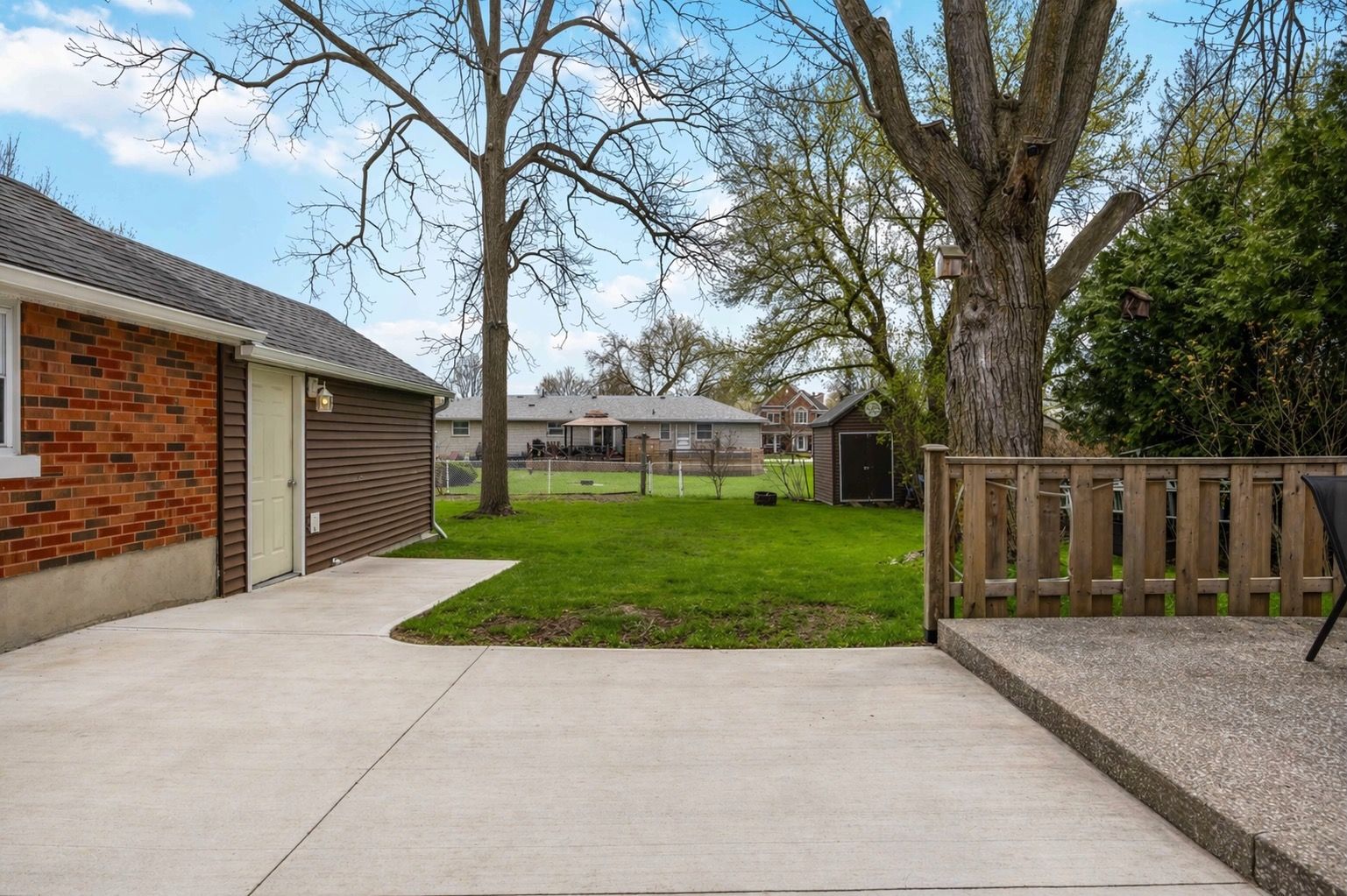 • Private back patio overlooking a yard, great for entertaining or quiet evenings.