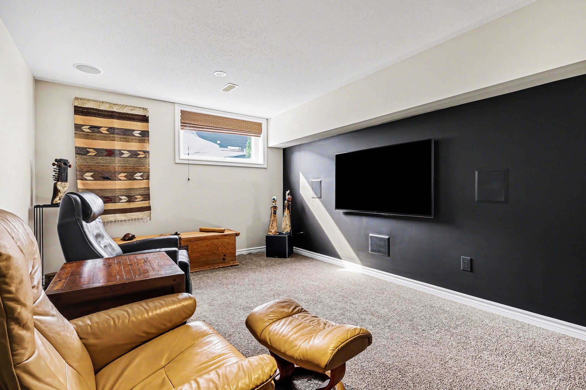 • Finished basement family room with recent carpeting and electric fireplace.
