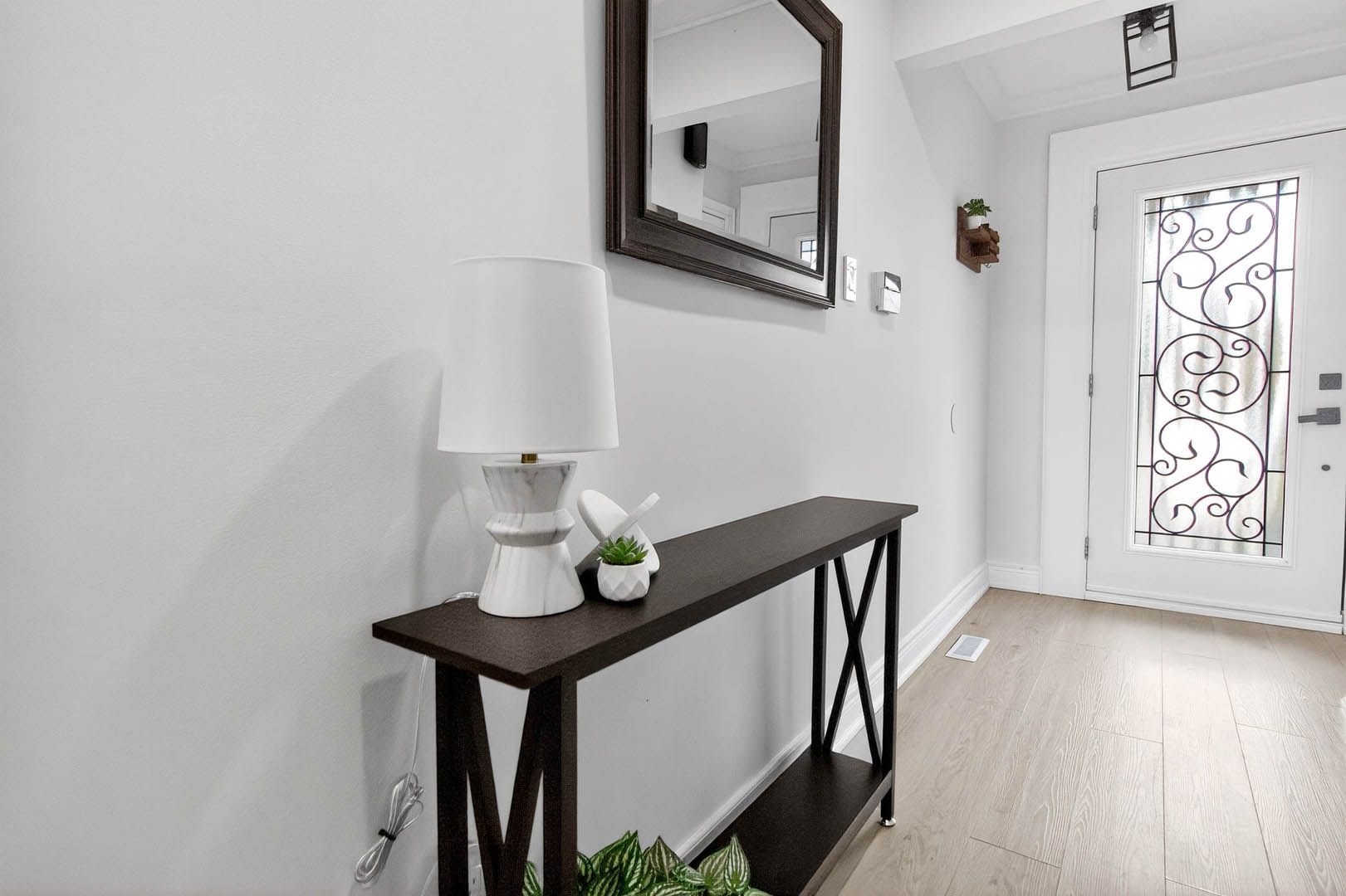 Absolutely stunning 3-bedroom detached home in a prime southeast burlington location! This bright and spacious home features an open-concept living and dining room with beautiful flooring throughout, smooth ceilings, a cozy fireplace, and pot lights. The fully renovated eat-in kitchen is a highlight, boasting quartz countertops, a stylish backsplash, a massive centre island that comfortably seats five, ample counter space, and newer cabinets. From the kitchen, you can walk out to your own private backyard oasis complete with a gazebo and an exposed concrete patio - perfect for entertaining. Up the elegant oak stairs with wainscoting, you'll find a spacious primary bedroom with a walk-in closet, crown moulding, and a beautifully renovated 4-piece ensuite bath. Two additional generous bedrooms also feature crown moulding, while the renovated 5-piece main bath offers his-and-her sinks. The finished lower level includes a large recreation room with pot lights and laminate flooring, plus an updated 2-piece bathroom, providing endless possibilities for a home office, gym, or entertaining space. Additional features include front and backyard irrigation systems, outdoor pot lights, and a gorgeous front driveway. With too many upgrades to list, this move-in-ready home is ideal for entertaining and family living in a fantastic neighbourhood. You're close to everything important - shopping, schools, transit, appleby go station, the qew, and just steps from a beautiful park at the end of the street. Just move in and enjoy!