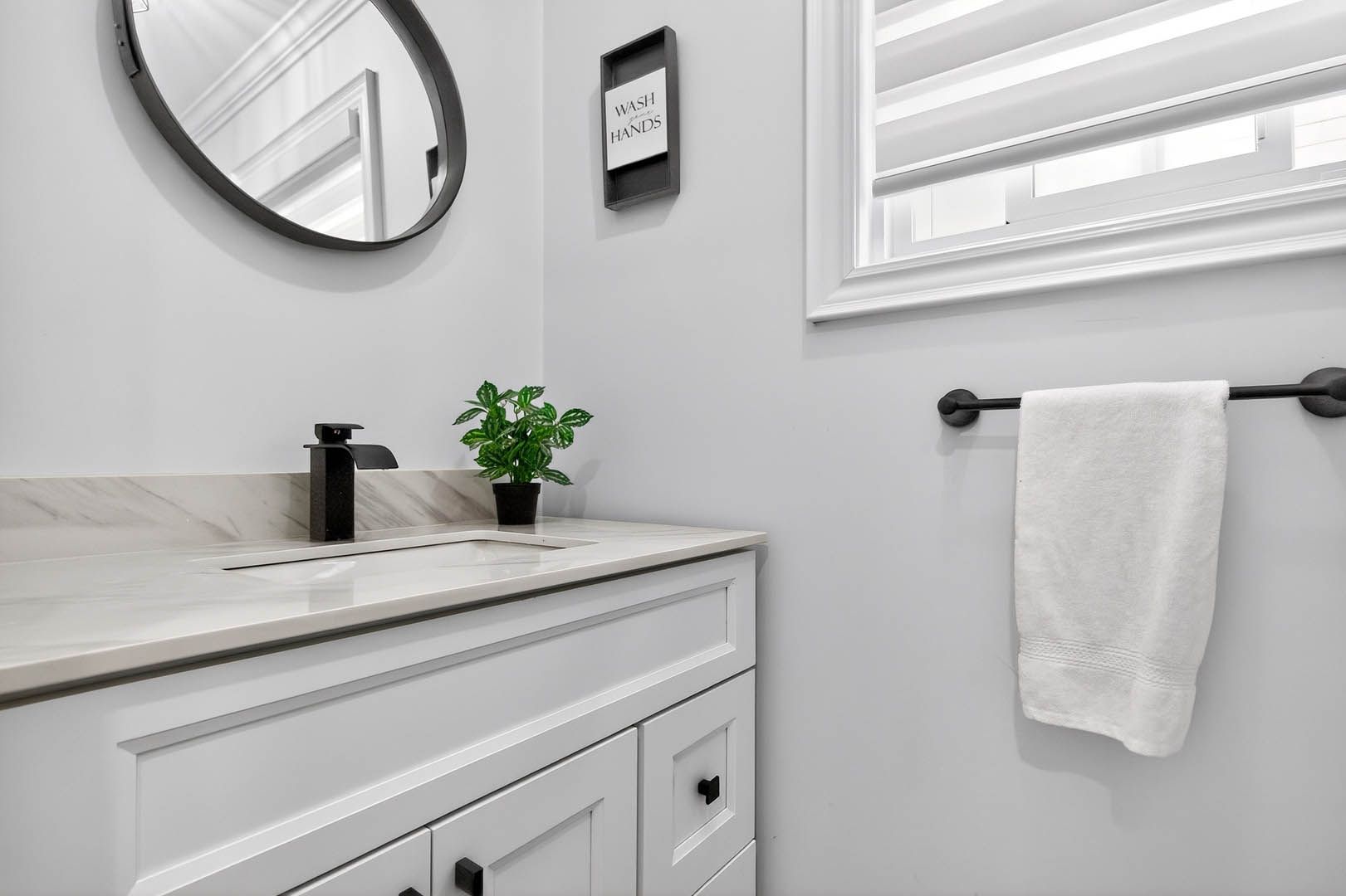 • Fully renovated kitchen with quartz countertops and a large centre island.