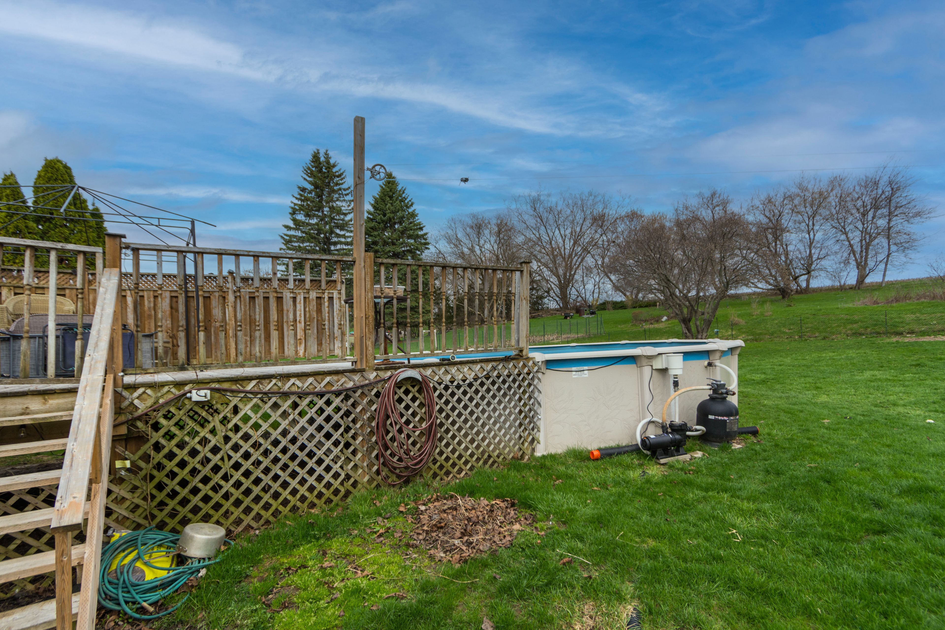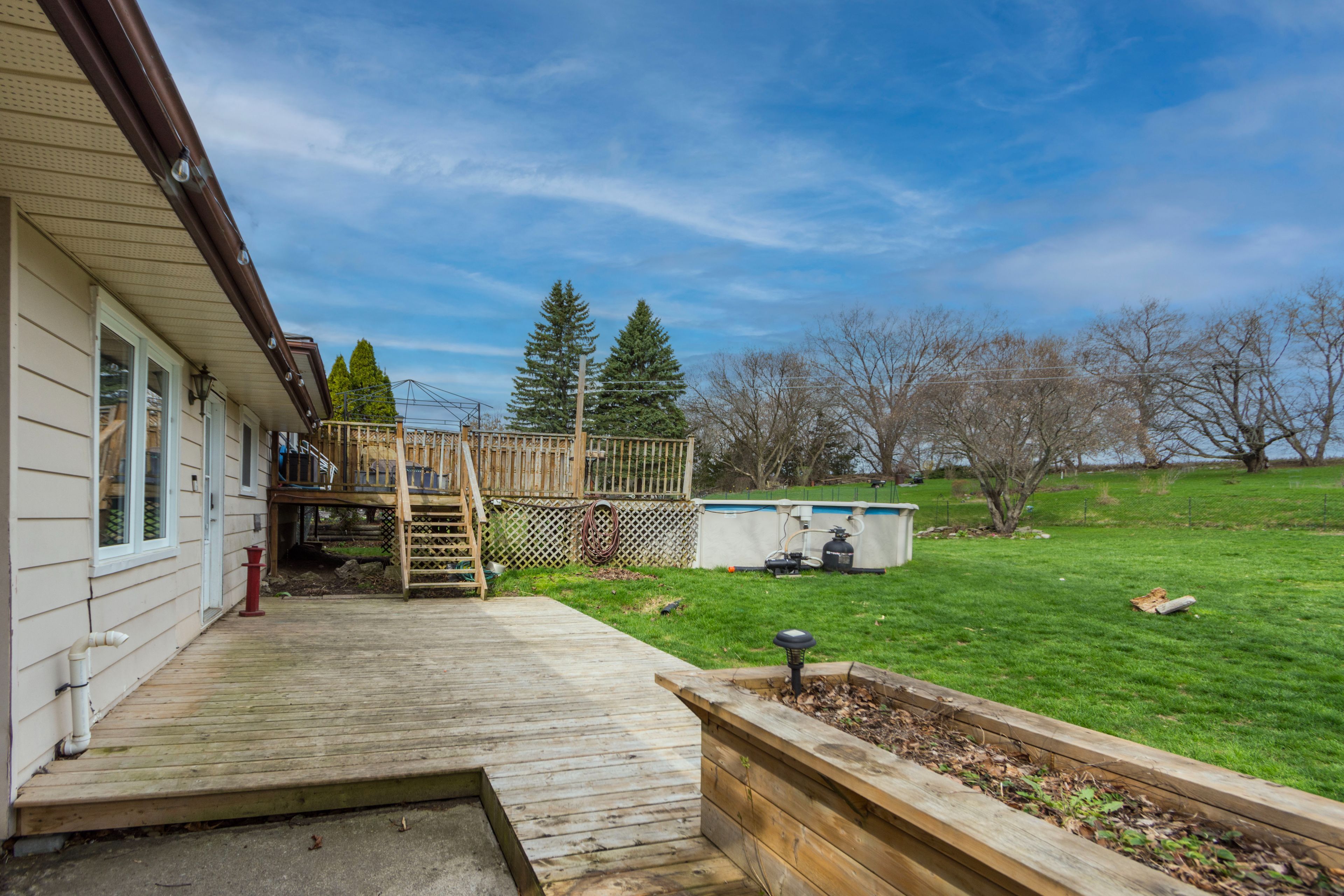 • Fully fenced backyard with a small above-ground pool for summer fun.