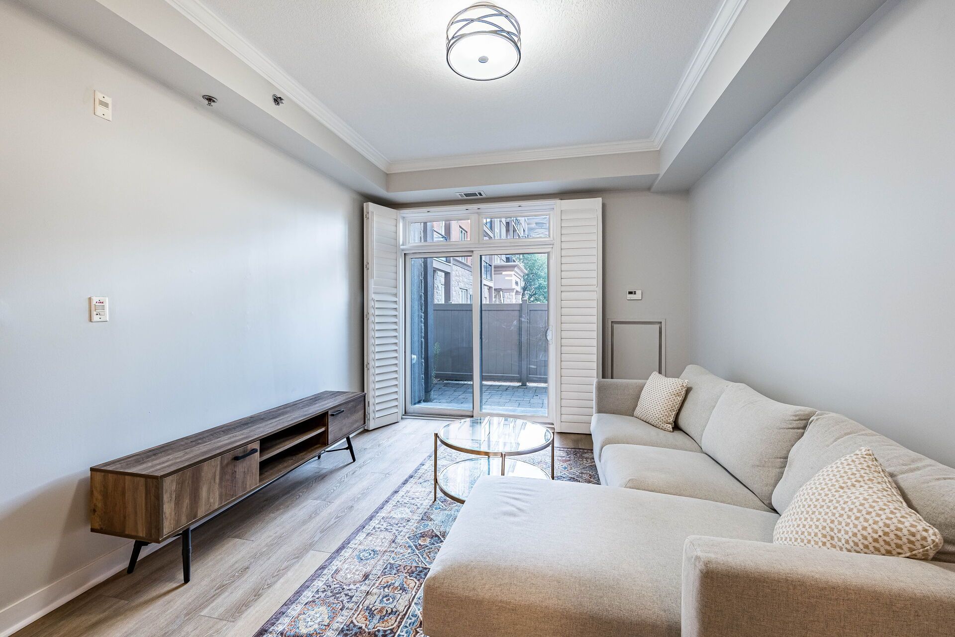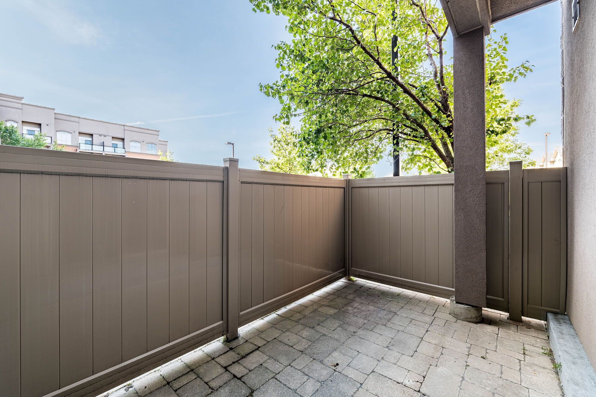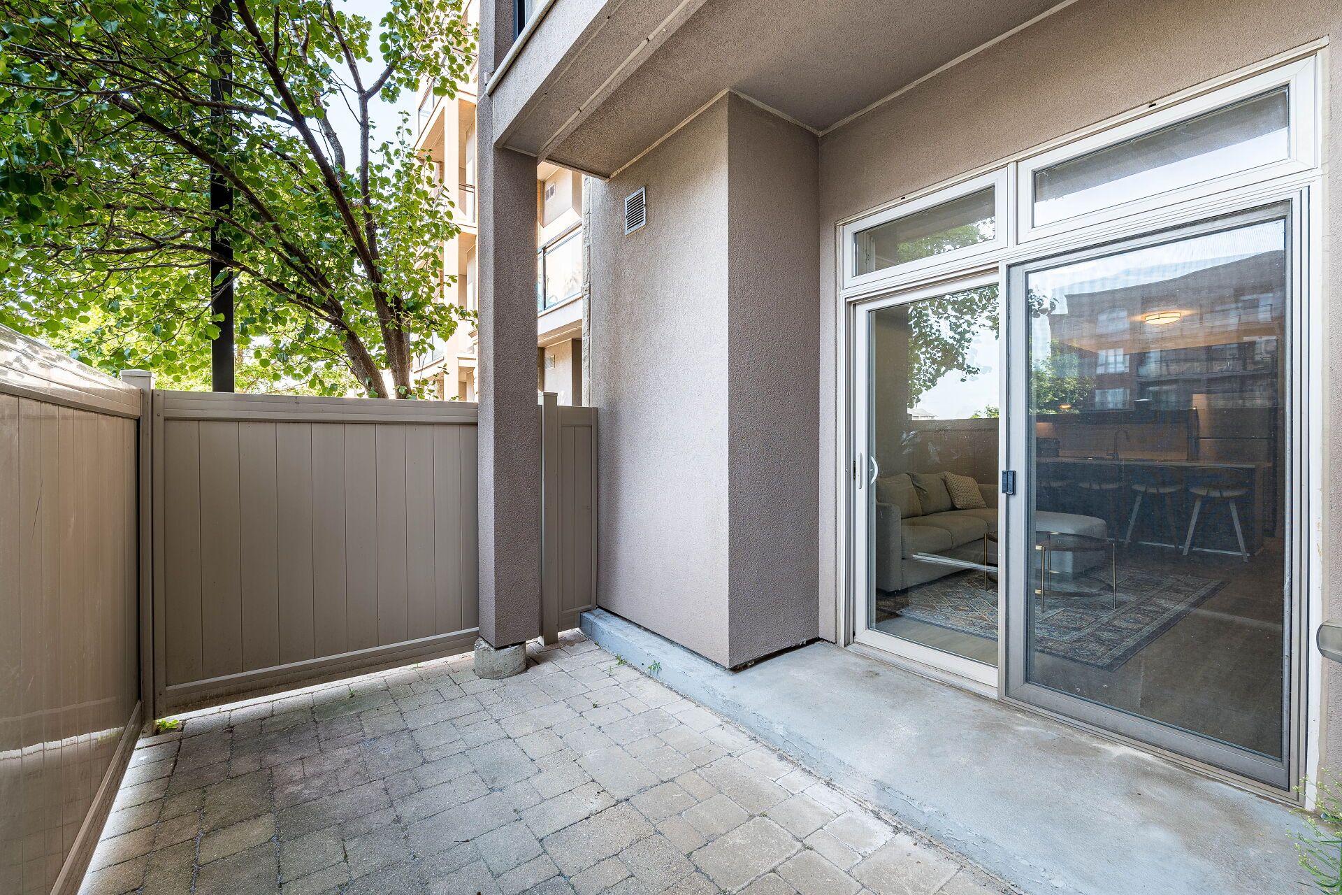 • Ground-floor condo with a private patio and 9-foot ceilings.