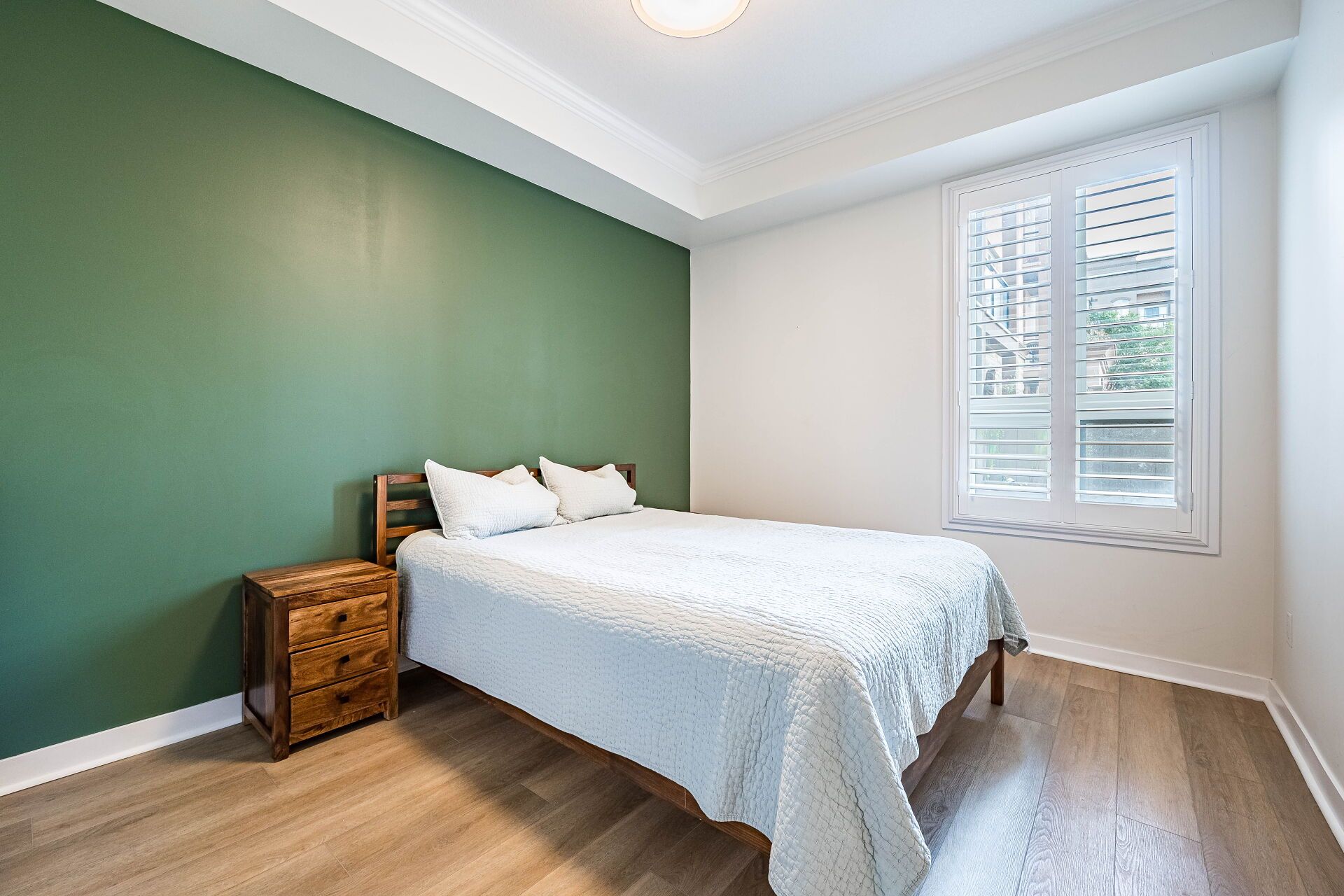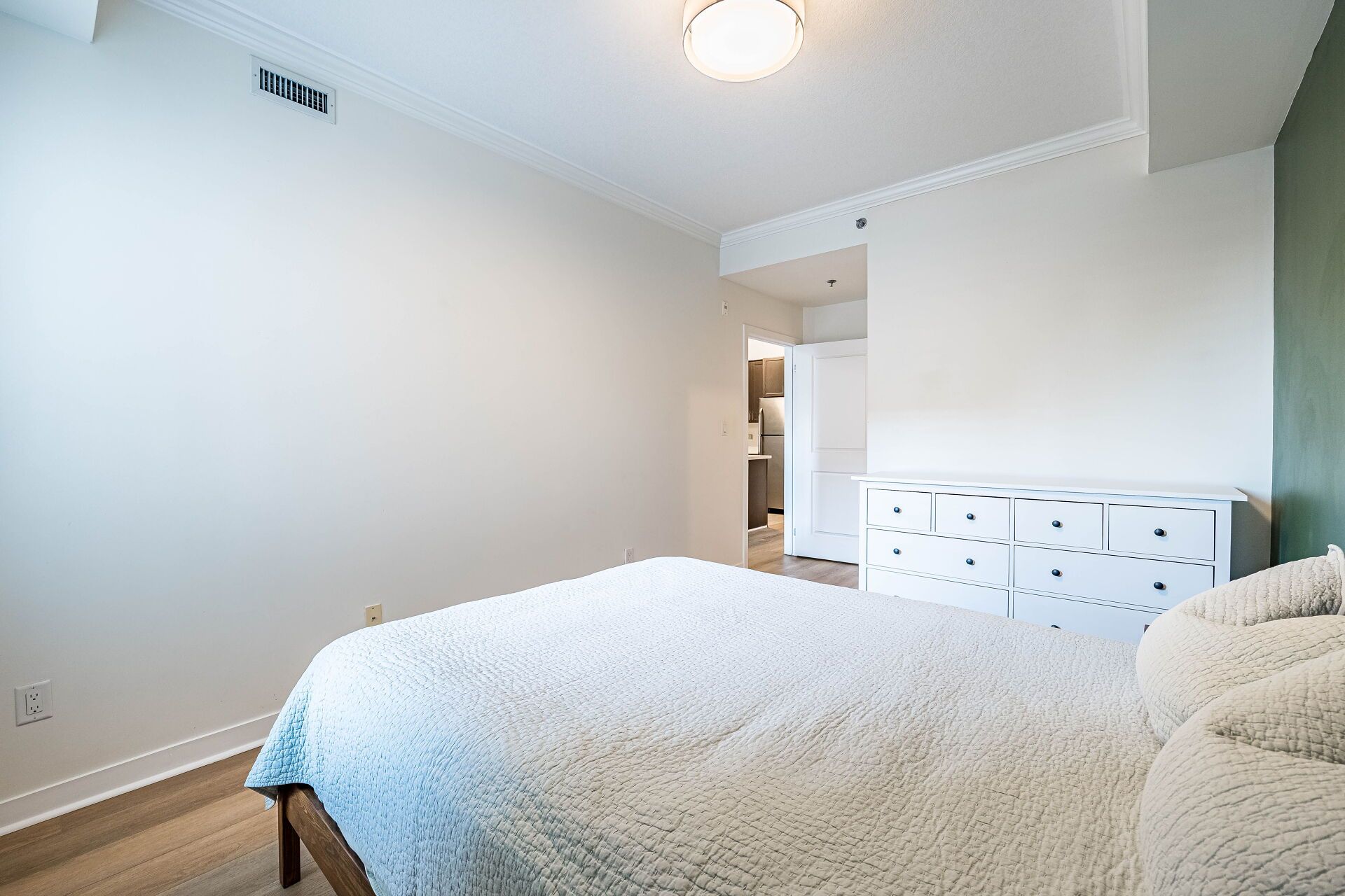 • Spacious bedroom features a convenient walk-in closet for storage.