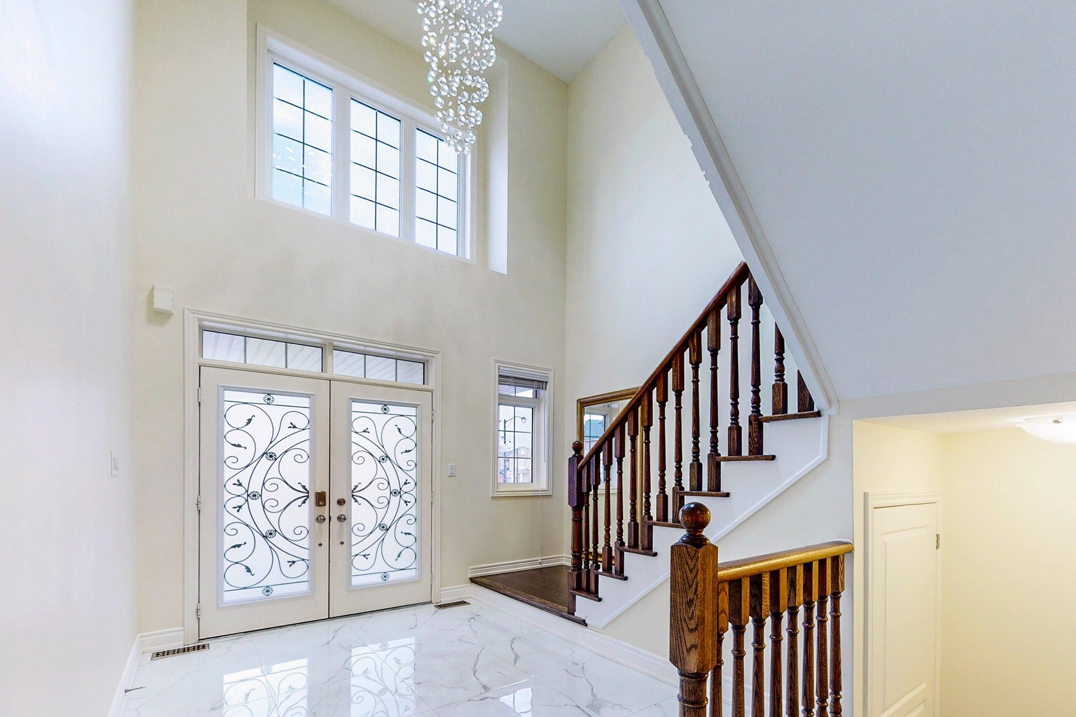 • Large windows and entry doors create a bright and inviting atmosphere.