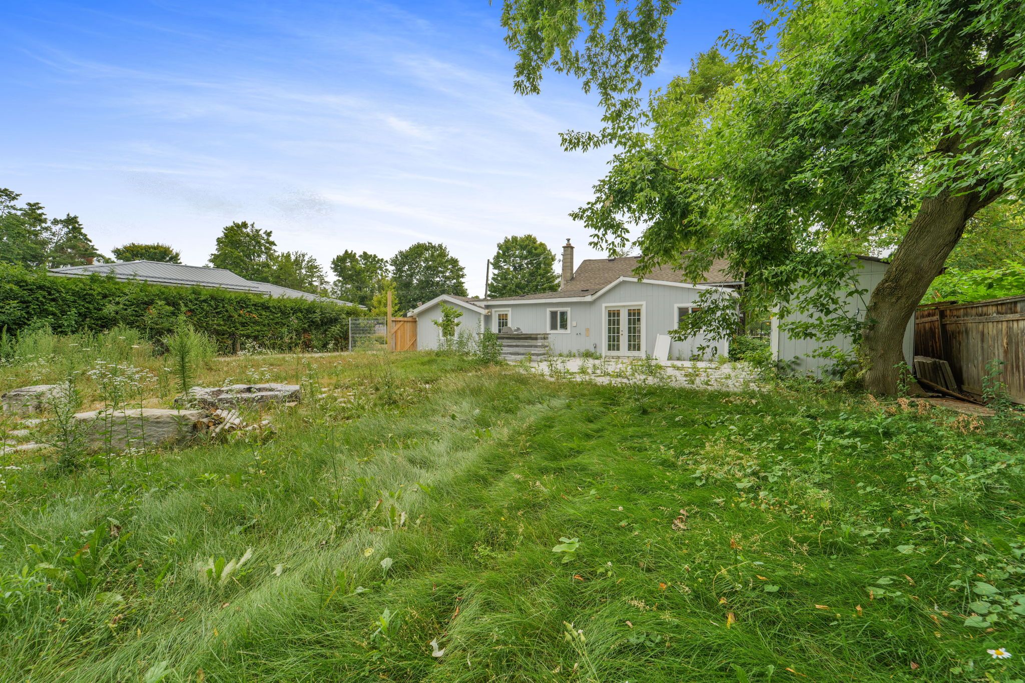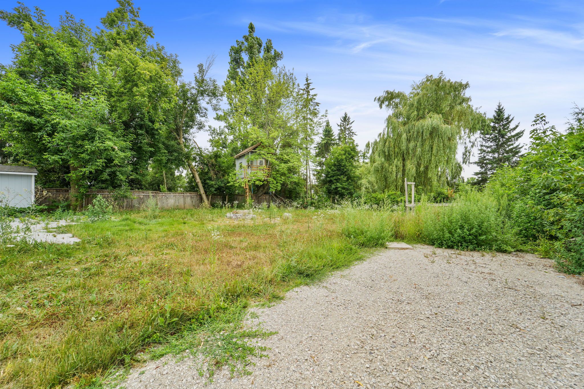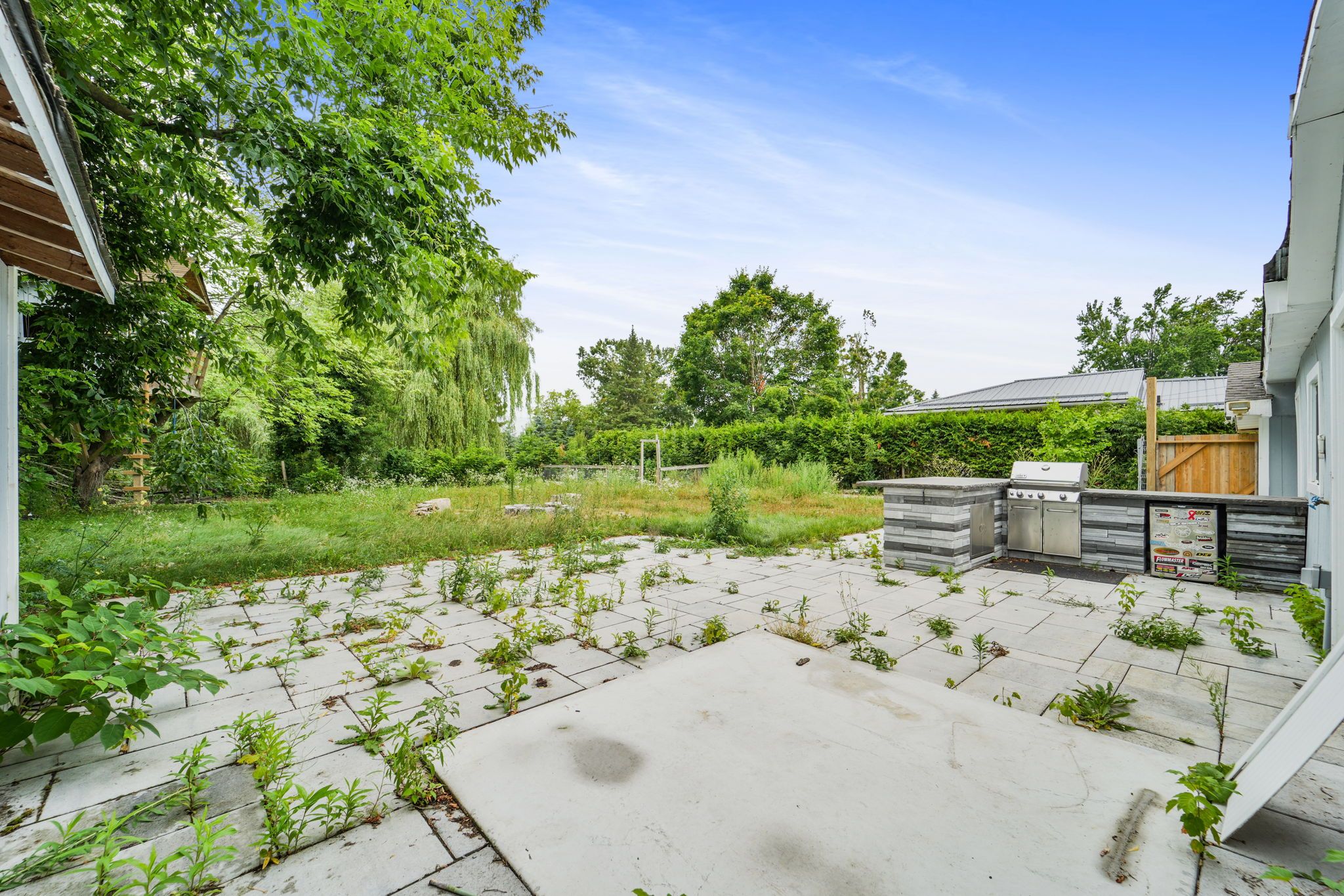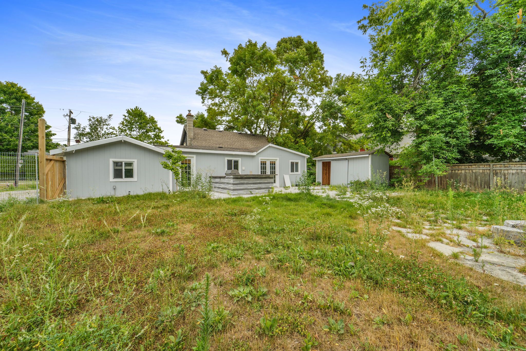 • Large backyard with storage room, perfect for relaxation.
