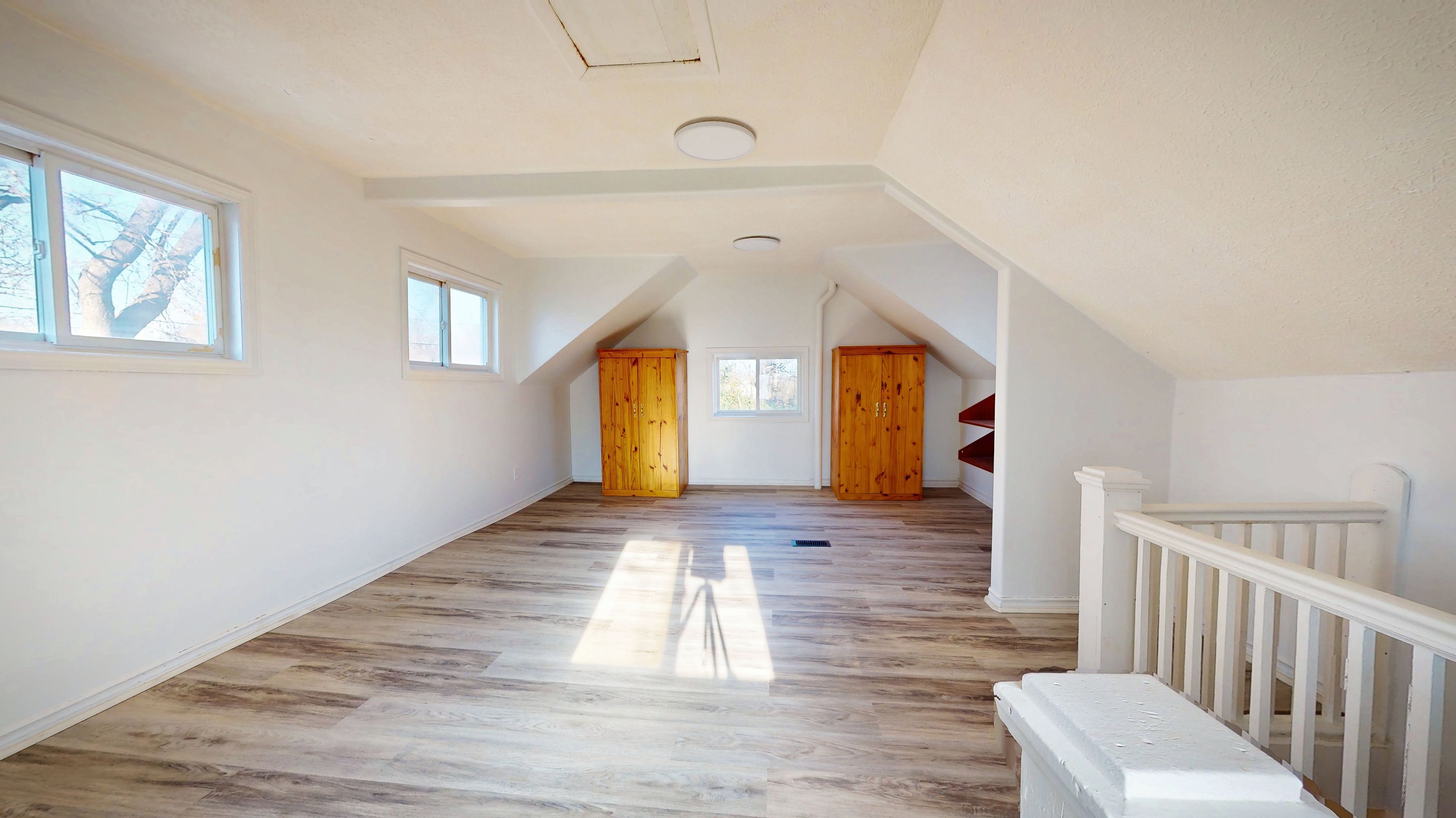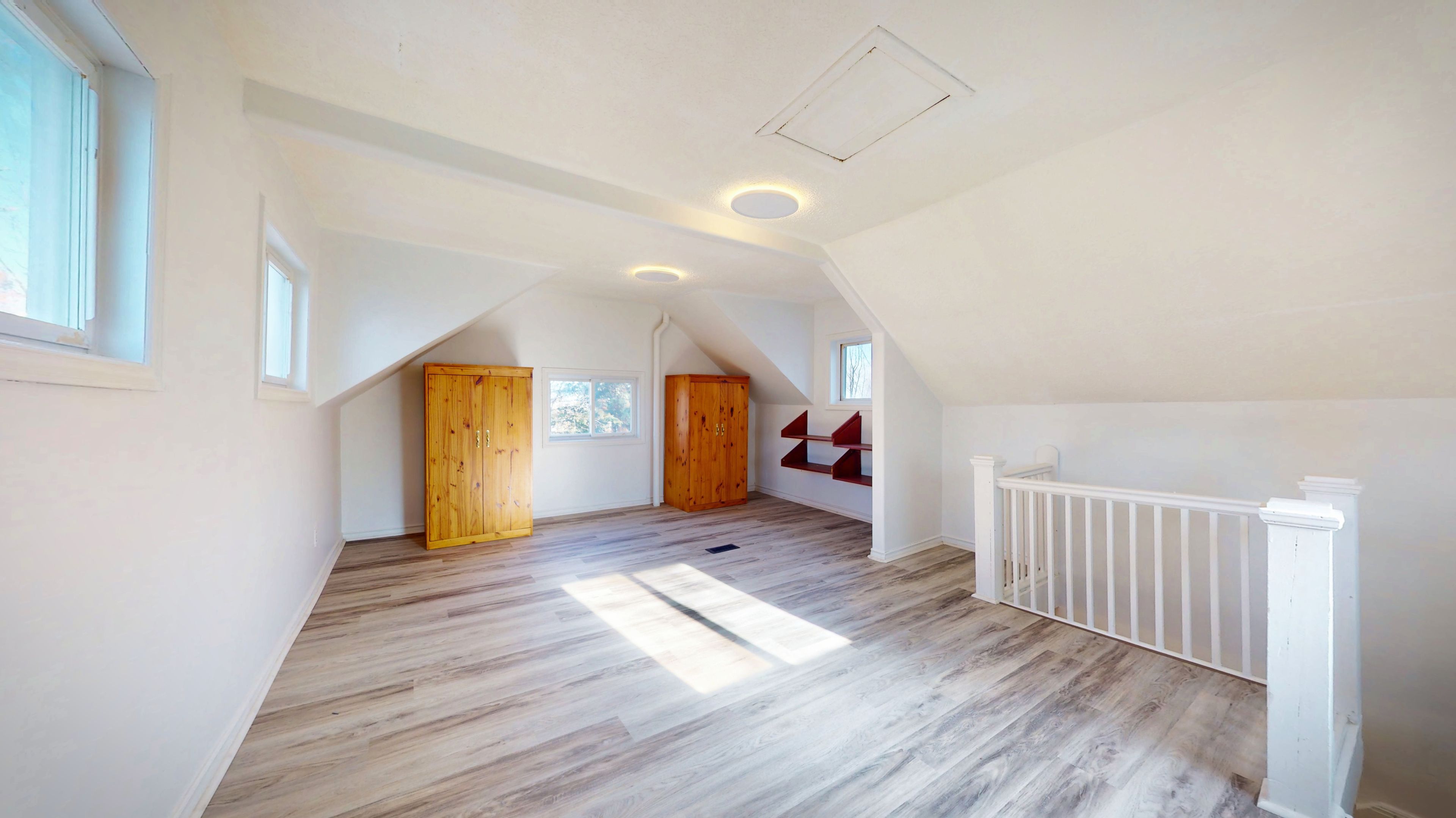 Discover a truly exceptional offering in orillia's prime north ward. This charming 1,154 sq. Ft. Home provides the perfect balance of ready-to-enjoy living and incredible future potential, all set on a massive lot! Here are some compelling reasons you will want this property. 1. Massive land & future potential: secure a rare, half-acre property in the city, providing unparalleled space and significant future investment opportunity in a rapidly growing area. 2. Turn-key main floor living: this home is ready to move in, featuring updated flooring throughout the main level, essential main floor laundry, and a bright, functional layout. 3. Hobbyist's dream package: the property includes a sought-after detached workshop and a functional greenhouse, plus a large outdoor deck perfect for entertaining and enjoying your expansive yard. 4. Prime commuter location: located in the desirable north ward, you are just moments from local shopping, trails, and, crucially, you have direct, quick access to highway 11 for an easy commute. 5. Unique 2-bedroom setup: enjoy the convenience of main floor living complemented by a great second bedroom located in a private loft area, offering flexible space for guests, family, or a home office. 6. This property is more than a home; it's a rare chance to secure a large, well-located parcel of land with fantastic existing amenities.