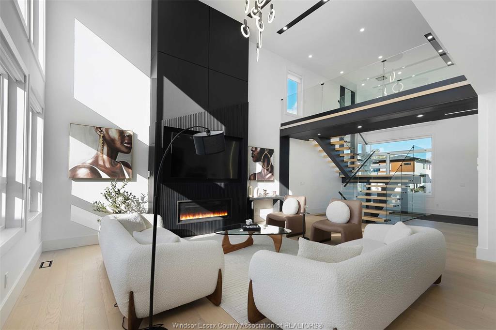 Step into modern luxury at 532 mountbatten. This architectural gem, located steps from riverside drive, the city marina and scenic walking trails offers style and sophistication at every turn. Soaring 18' ceilings greet you, with floating stairs and glass railings adding to the contemporary allure. The living room boasts a sleek napoleon gas fireplace, while the chef’s kitchen, accompanied by a hidden spice kitchen, is designed for culinary excellence. The upper level features four bedrooms, including two en-suites, a versatile loft area with balcony access. The master suite exudes opulence with a custom walk-in closet, electric fireplace and led-lit ceiling. Led illuminated stairs lead to a finished basement with surround sound and rough-in bar or kitchen adds versatility. Outside, a landscaped yard, 4-car garage, and wi-fi-controlled sprinklers enhance convenience and elegance. This home is the epitome of refined living.