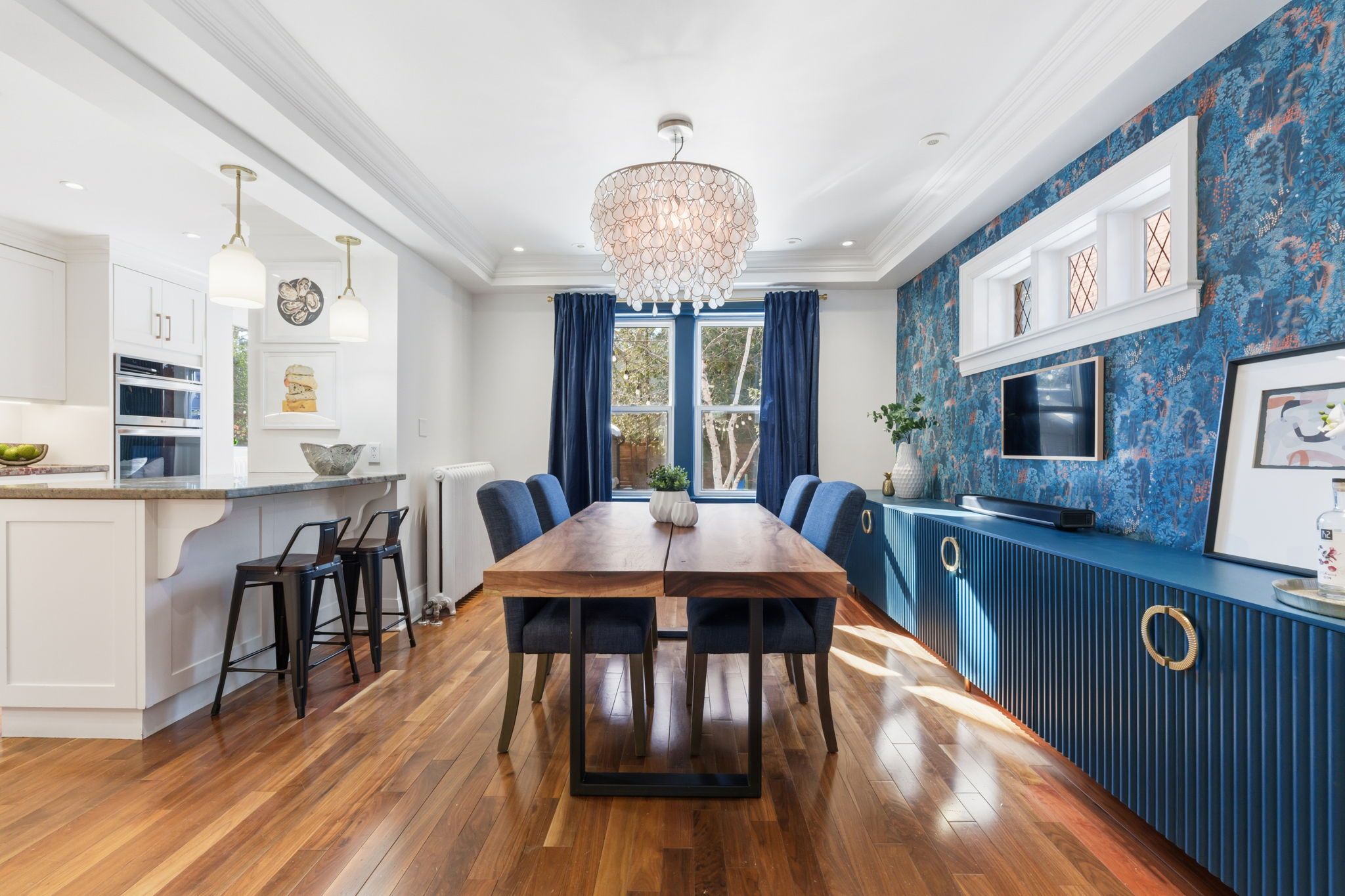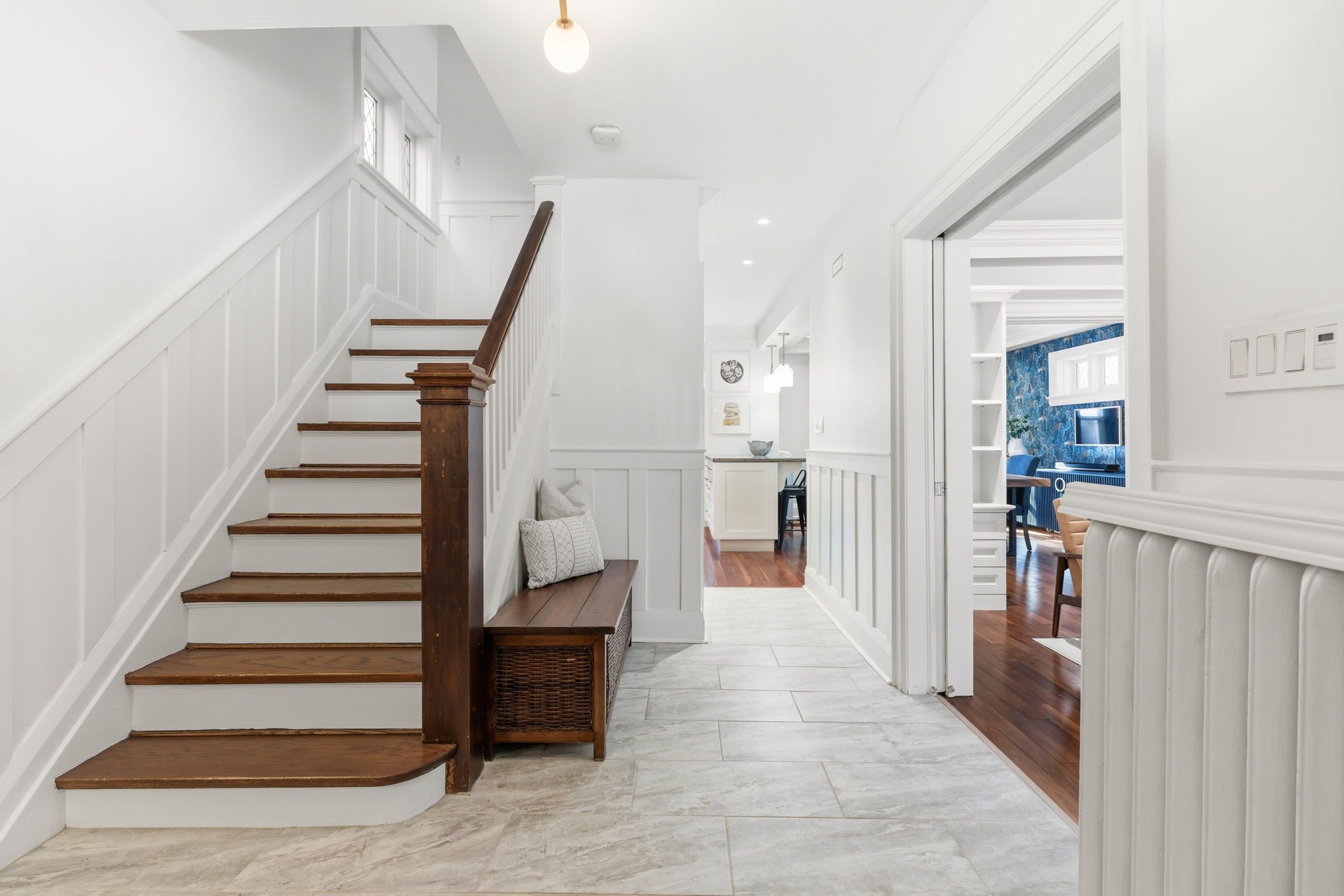 A wonderful opportunity to own a beautifully renovated, detached family home on a wide 29 ft lot in the heart of bloor west village! This 4 bedroom, 2 bathroom home offers 2,350 sq. Ft. Of well-finished and functional living space across three levels - perfect for family living and effortless entertaining. The main floor features generous principal rooms with rich wood floors, custom built-ins and designer lighting. The spacious living room offers a wood burning fireplace, bay windows and leaded glass, while the gracious dining room with crown moulding overlooks the backyard and connects seamlessly with the updated chef's kitchen with new stainless steel appliances, custom cabinetry and a large breakfast bar. A mudroom provides practical everyday access to the yard. The second level offers four well proportioned bedrooms including a versatile office with custom built-ins and a murphy bed. The renovated family bath features updated fixtures. Monarch plank flooring, new subflooring, and pot lights complete the level. The fully finished lower level thoughtfully extends the home's living space, offering a spacious recreation and media area anchored by a gas fireplace, custom built-ins, and acoustic paneling. A second full bathroom, dedicated laundry area, and a cleverly integrated murphy bed provide exceptional flexibility for guests or extended family. Major upgrades include a high velocity central a/c system, natural gas boiler, and tankless hot water heater. Enjoy a professionally landscaped west facing backyard with new fencing, high end turf, and patio space designed for low maintenance living. Parking for two including a garage, plus an unofficial third spot on the existing pad. Short stroll to the shops and restaurants of bloor west village, top-rated runnymede p. S. And humberside c. I., the subway and nearby parks. This is turnkey living in one of toronto's most desirable west end neighbourhoods!