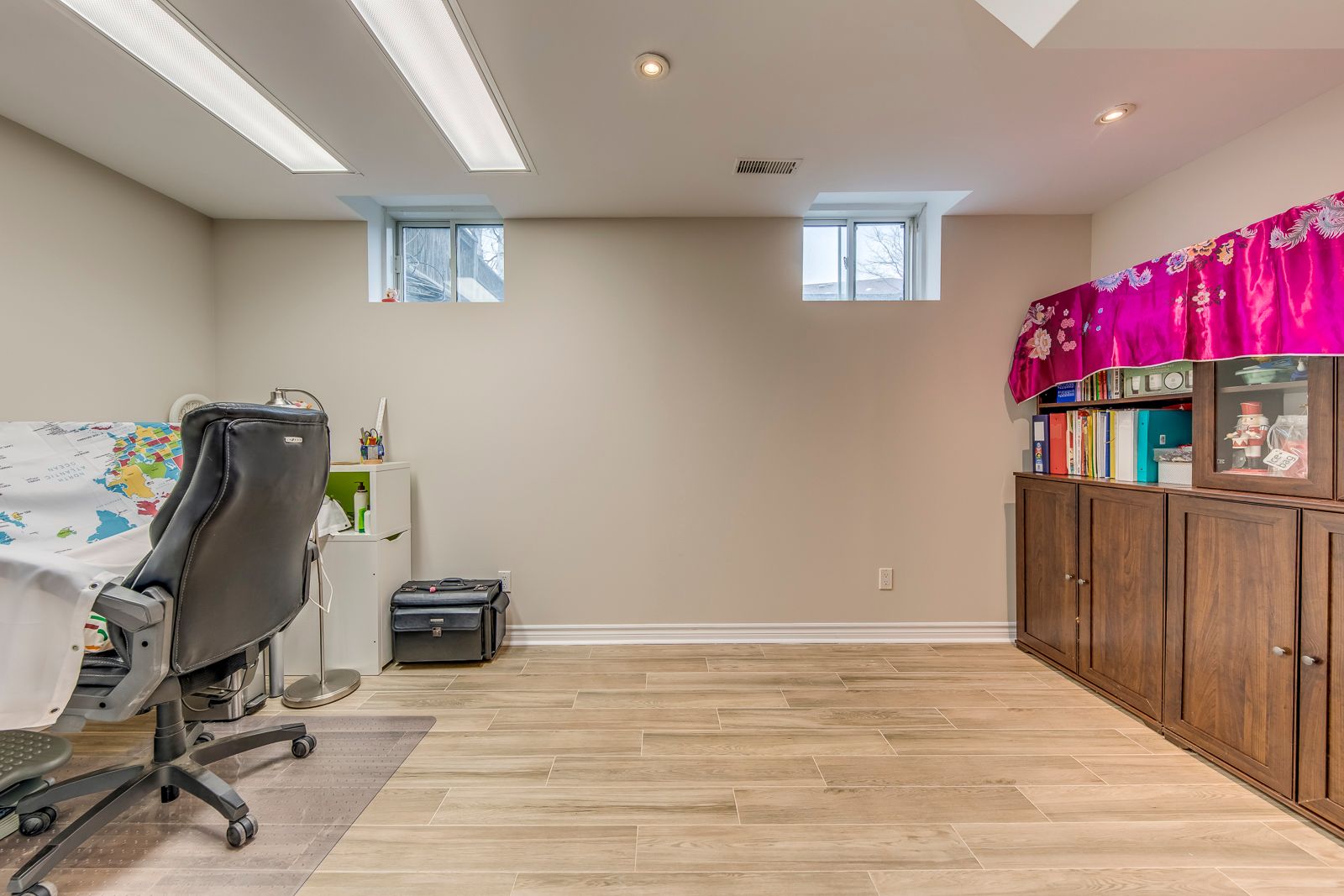 • Finished basement offers additional living space and office area.