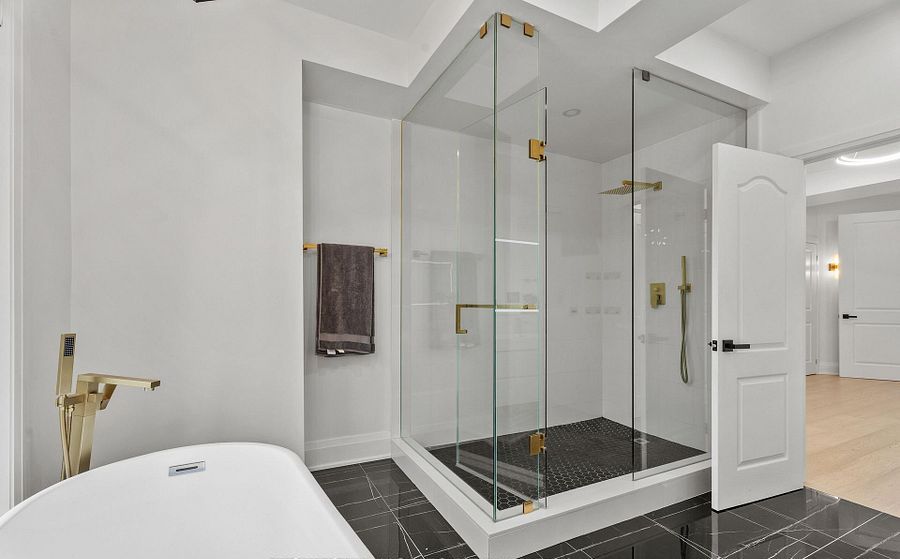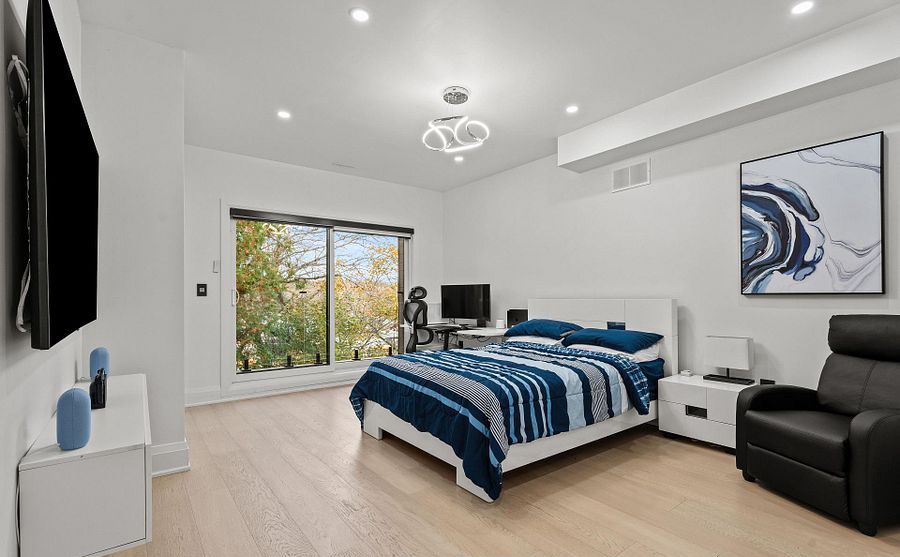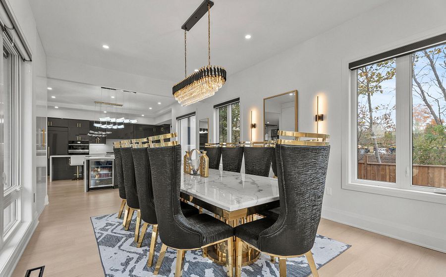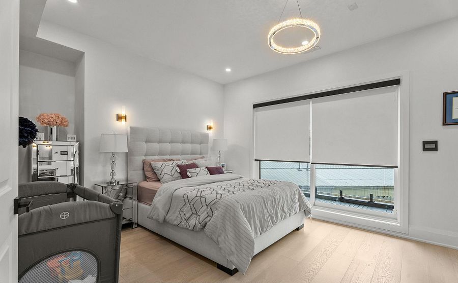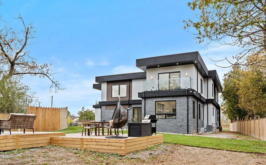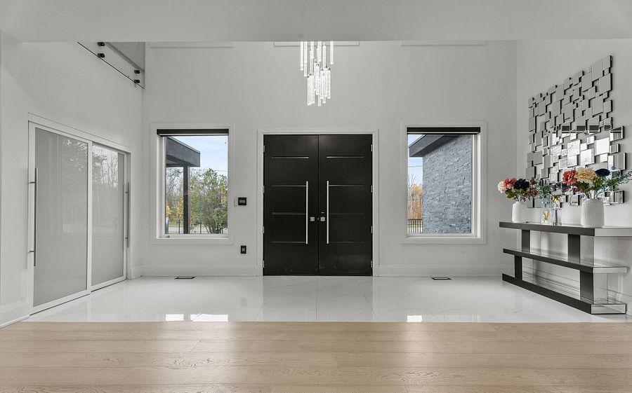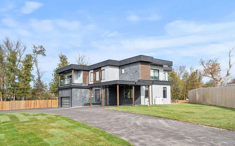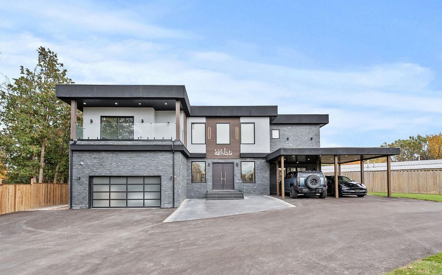 Two-year new custom-built, gated estate offering 8,700+ sq. Ft. Of finished living space at the durham-york border: just 7 minutes to hwy 407. Electronic gates open to a fully fenced property (approx. 150 ft metal front + 600 ft wood), double garage + double carport, ev charger, and parking for 40+ vehicles. Inside: 20-ft foyer ceilings, statement chandelier, and a full-height glass staircase; double-sided fireplace; open-to-above family room; whole-home automation with built-in speakers and 40+ motorized blinds. Chef's kitchen with dual islands, jenn-air appliances, 48" cooktop, and twin pantries. Four upper bedrooms each with private balcony, spa ensuite, and custom walk-in; second-floor laundry. Finished lower level with theatre, gym, rec room, and guest suite. Comfort upgrades include two brand-new, efficient cold-climate heat pumps. Resort-style backyard with zen garden, 3 decks, 1,000-sq.-ft. Patio, basketball court, and playground.