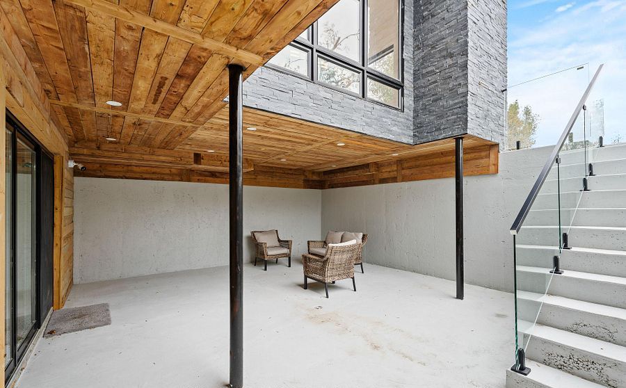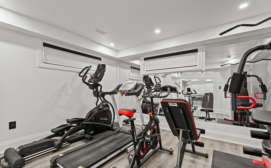 • Finished lower level includes a theater, gym, and guest suite.