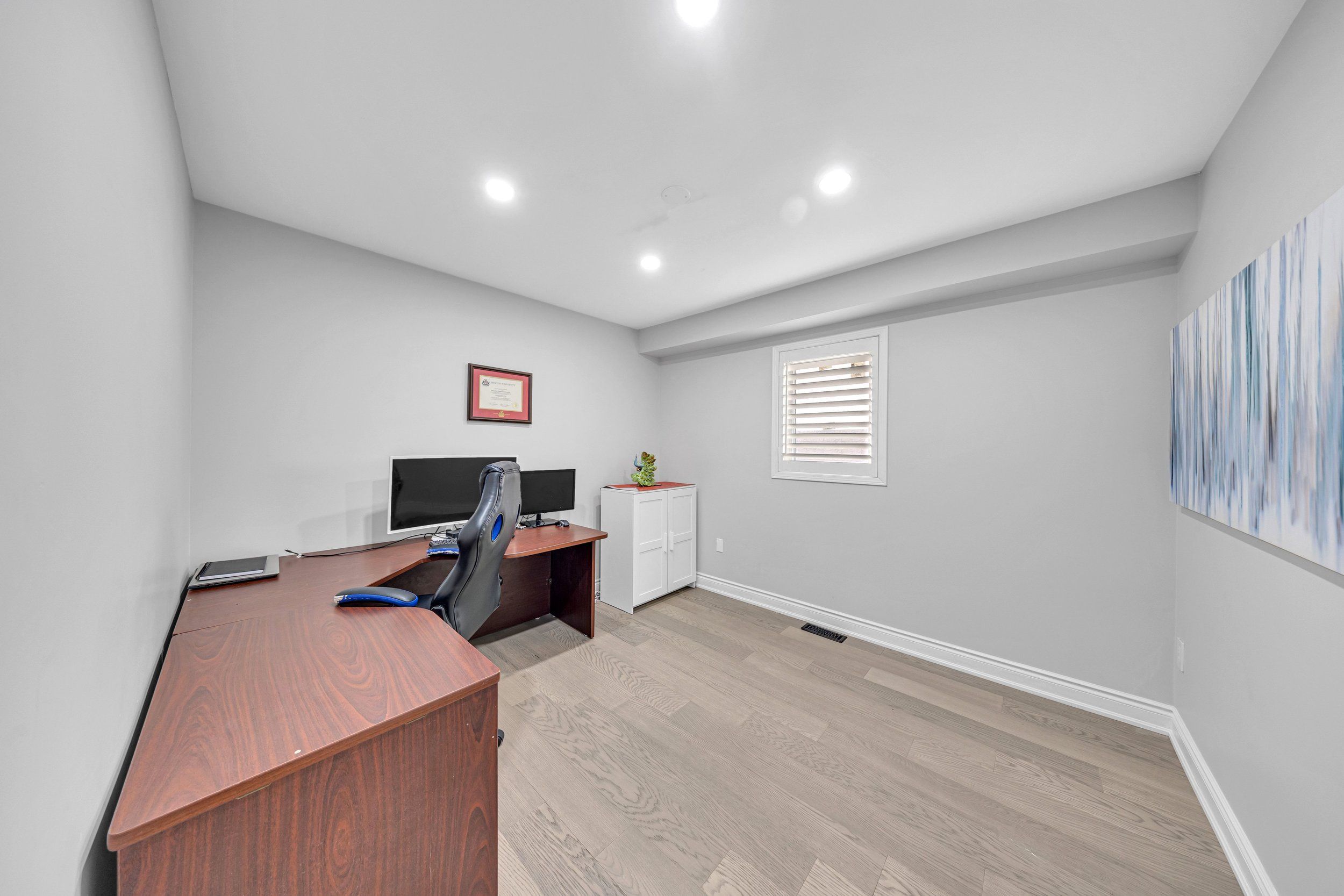 • Fully finished basement with recreation room, extra bedrooms, and gym space.
