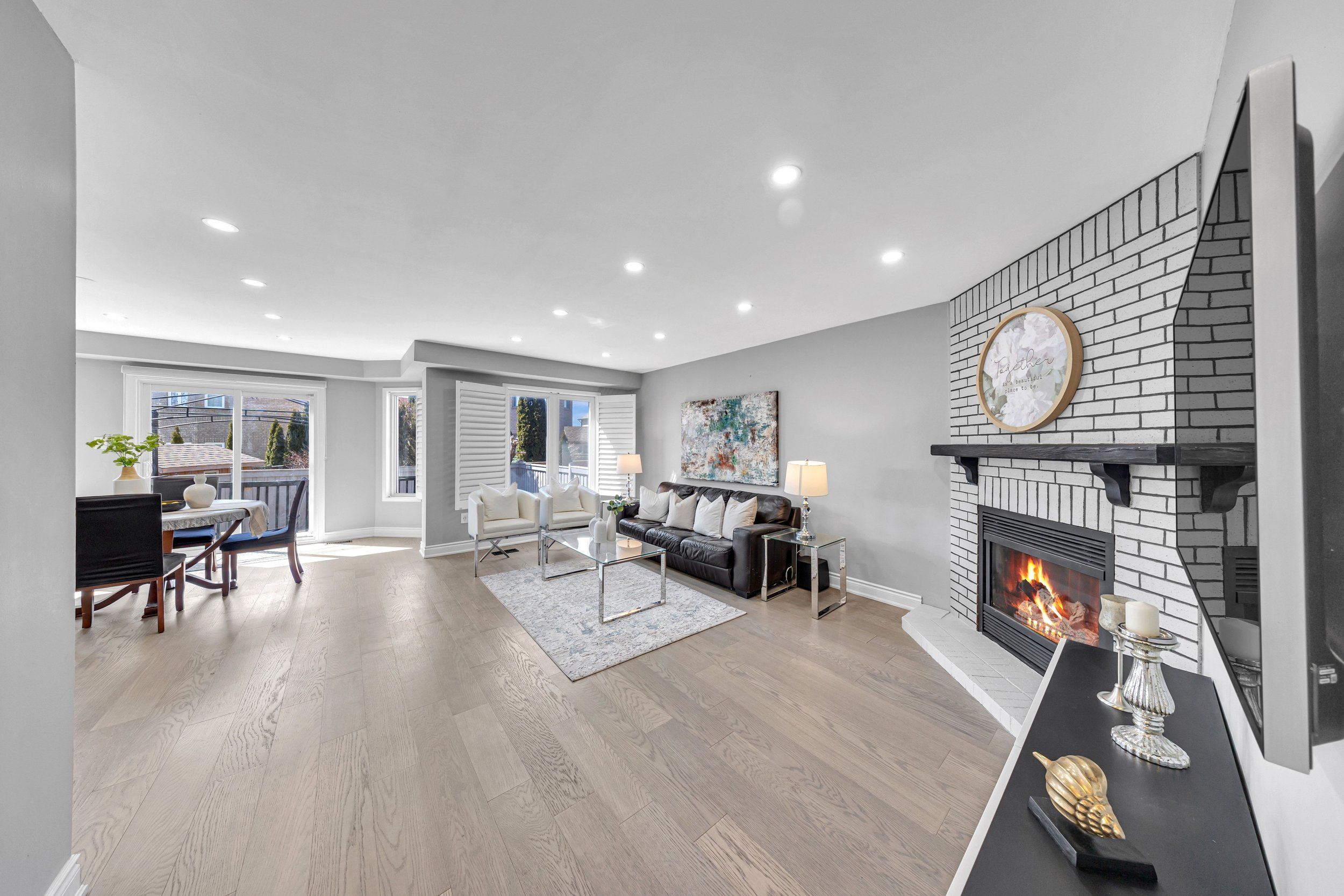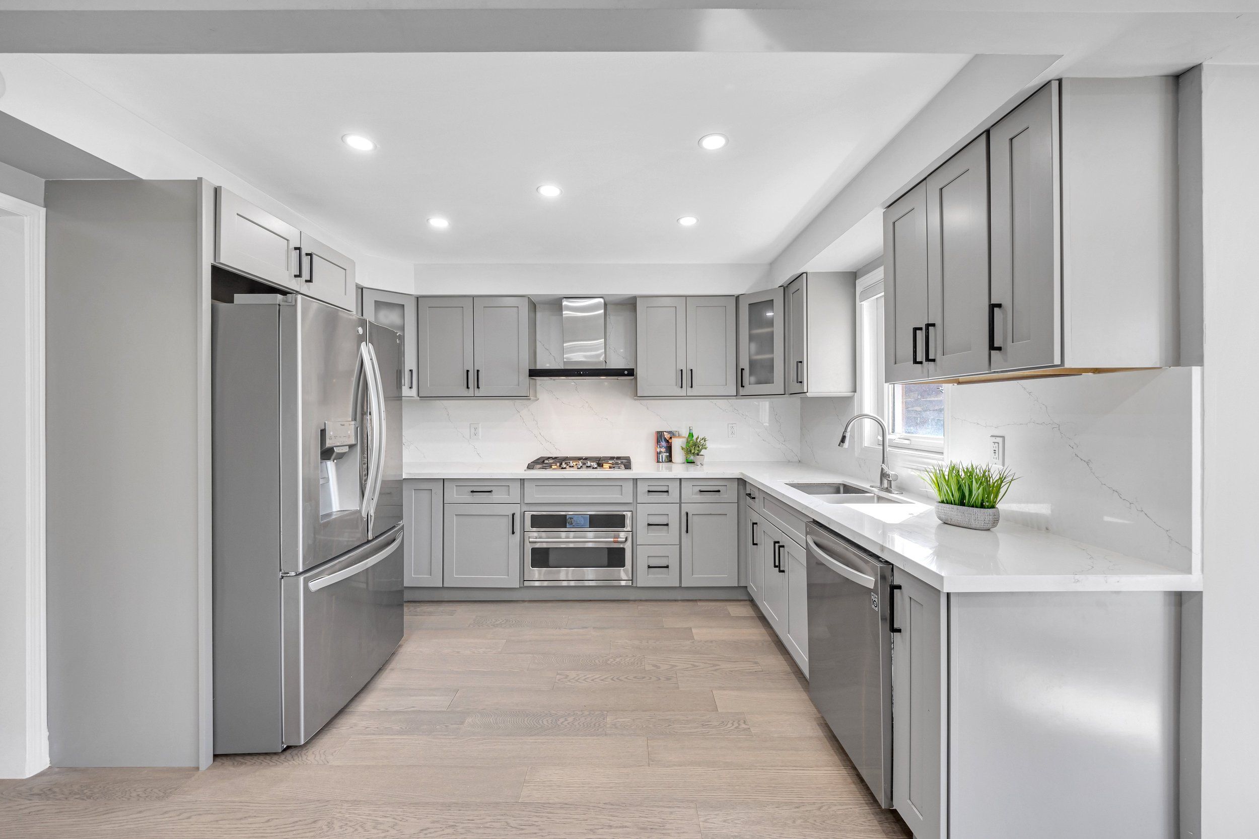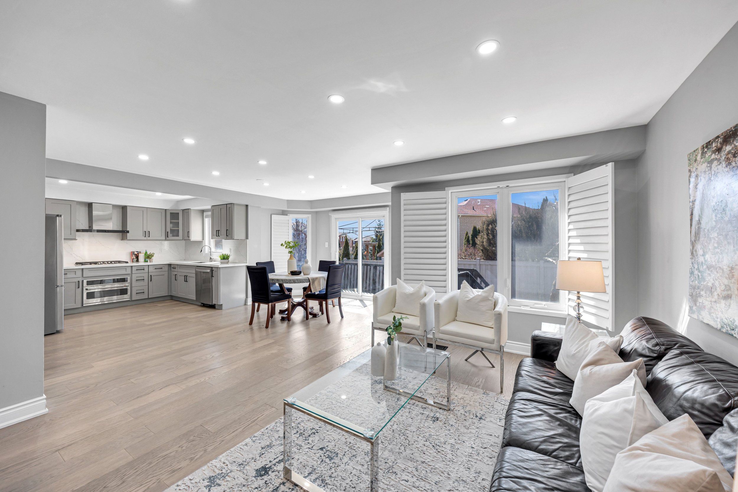 • Modern kitchen with a bright breakfast area and backyard access.